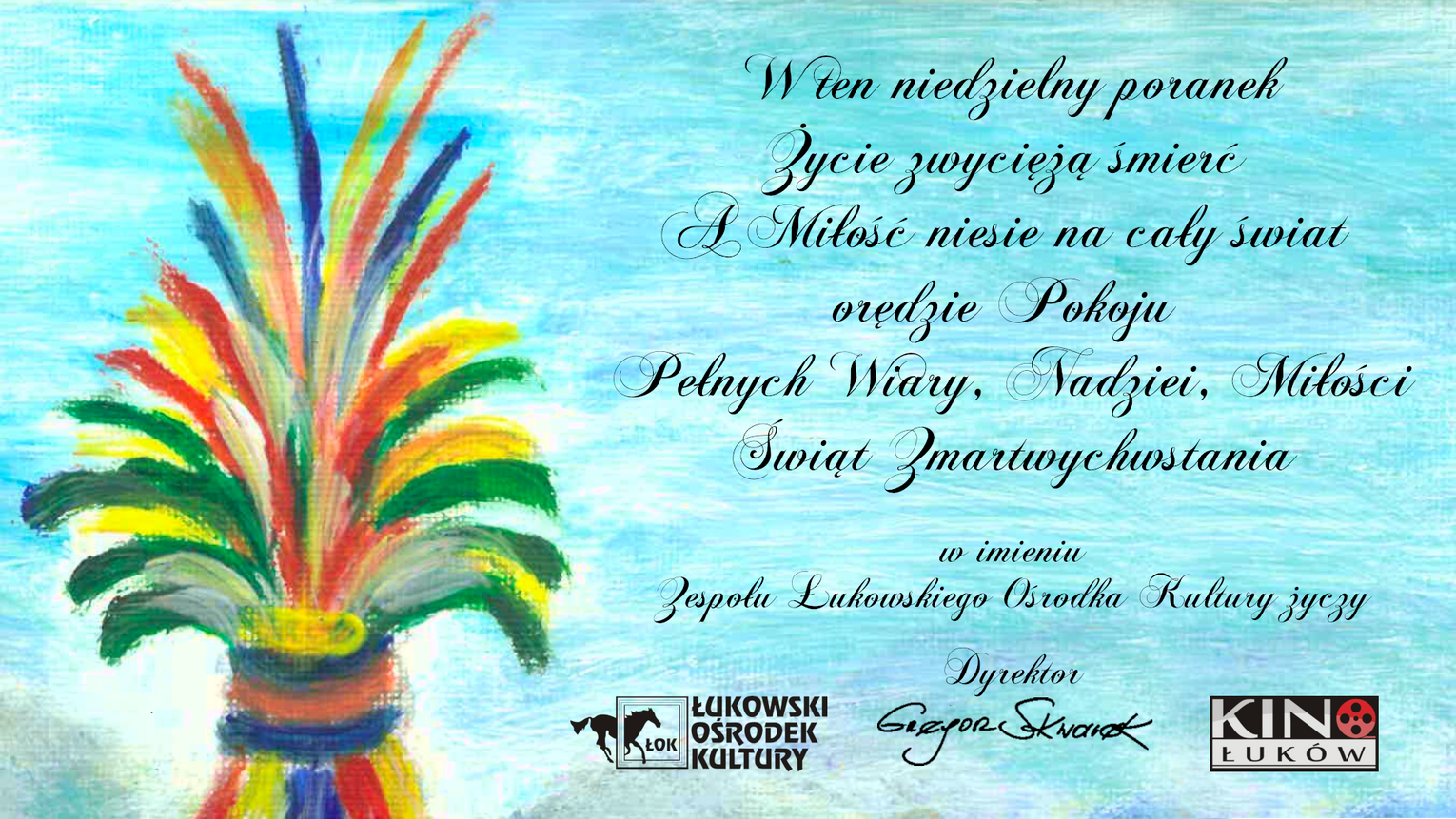 Dyrektor Łukowskiego Ośrodka Kultury Grzegorz Skwarek w imieniu zespołu przekazuje wszystkim najserdeczniejsze życzenia.