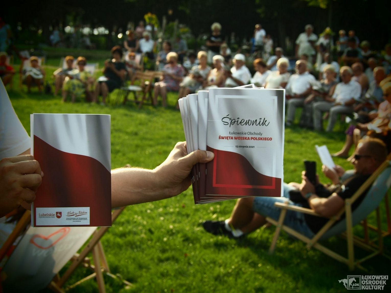 Wydarzenie to odbyło się w ramach łukowskich obchodów Święta Wojska Polskiego oraz 101. rocznicy Bitwy Warszawskiej. Akompaniament zapewnił na akordeonie Adam Bochaj z zespołu Forum. Każdy kto przybył tego dnia do parku na wspólne śpiewanie otrzymał śpiewnik patriotyczny oraz mógł upiec i zjeść kiełbaskę.