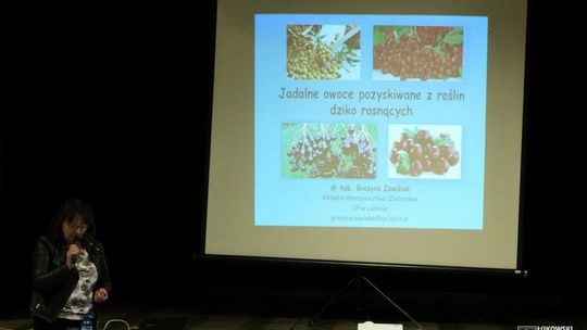 Wykład "Jadalne owoce pozyskiwane z roślin dziko rosnących" nawiązywał do owoców, zbieranych z roślin dziko rosnących, które są źródłem m.in. witamin, składników mineralnych, antocyjanów, flawonoidów.