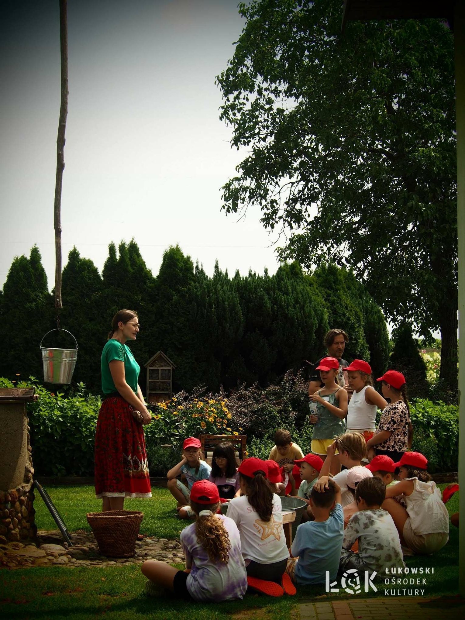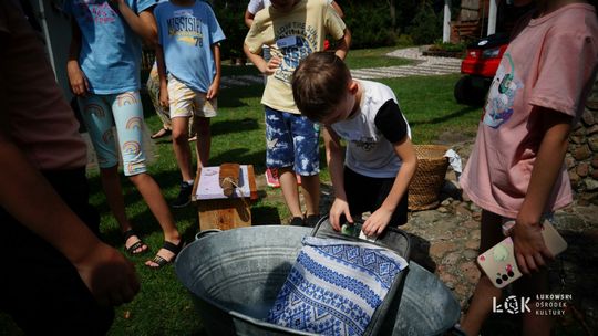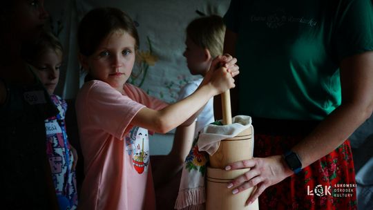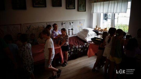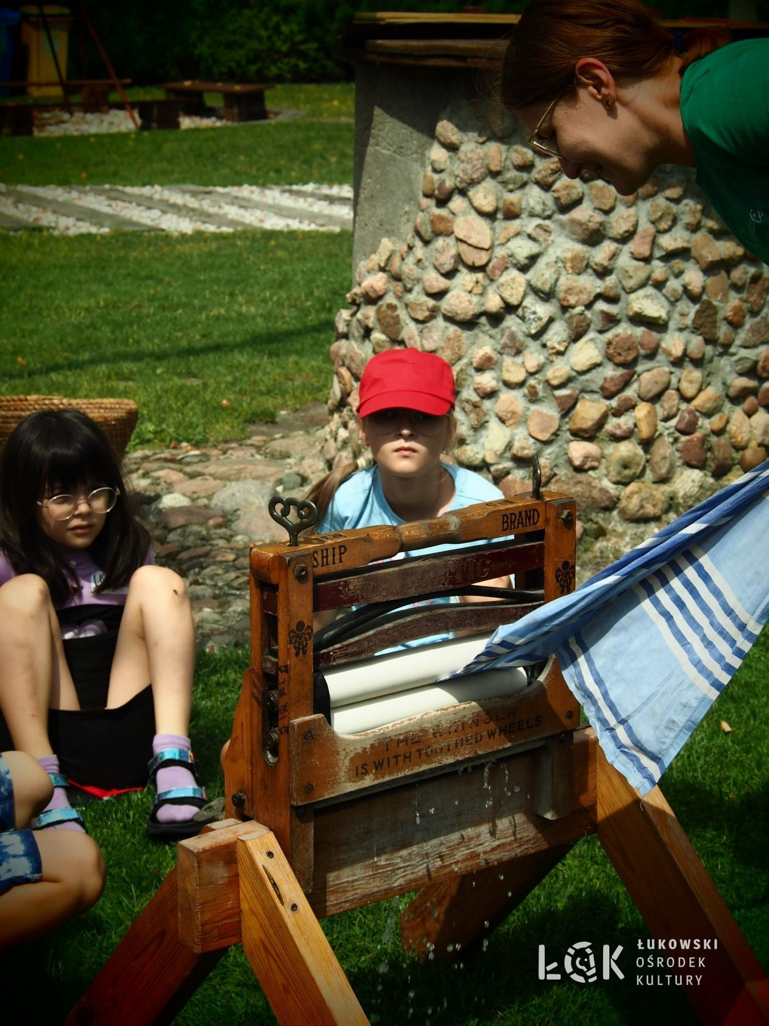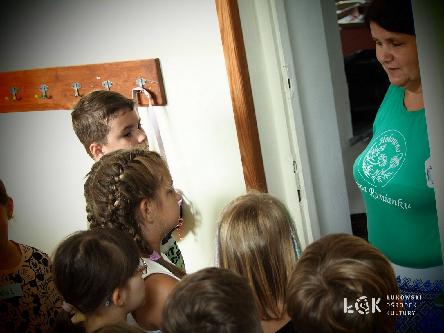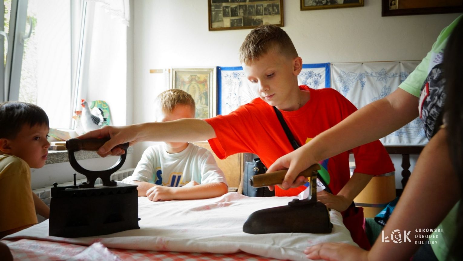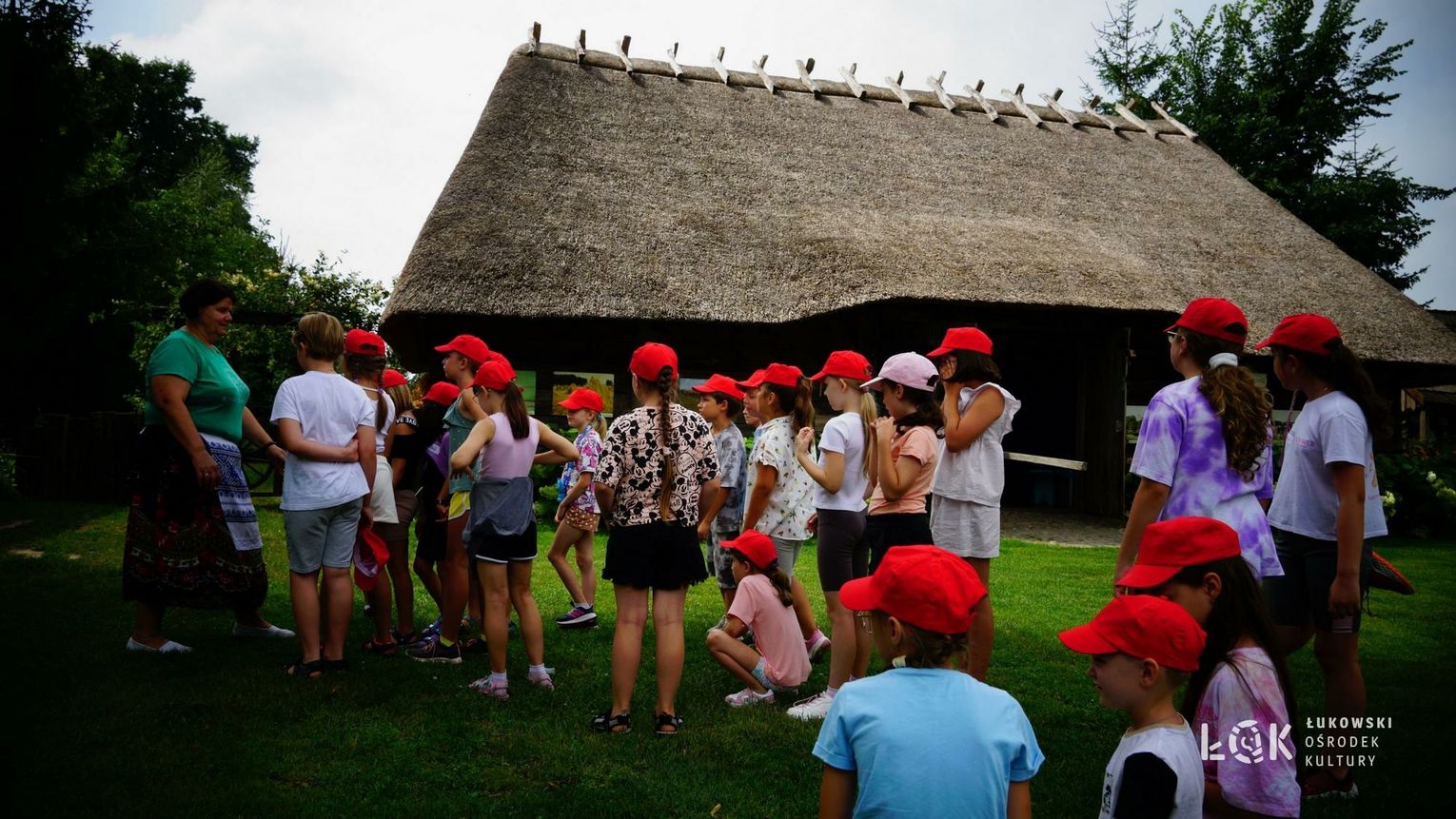 Kraina Rumianku to wioska tematyczna, w której dzieci, młodzież oraz dorośli mogą doświadczyć, jak żyli, pracowali i odpoczywali nasi przodkowie. Wszystko to dzieje się w scenerii polskiej wsi, gdzie dawne obyczaje są wciąż żywe i praktykowane. Dzieci z Łukowskiego Ośrodka Kultury wzięły udział w warsztatach „Od ziarna do chleba”, podczas których poznali tradycyjne sposoby uprawy zboża i jego przechowywania, nauczyły się młócenia cepem, czyszczenia ziarna, mielenia zboża w kamiennych żarnach. Miały także okazję przygotowywać ciasto i upiec w piecu chlebowym słodkie rogaliki, które potem mogły zjeść ze smakiem. Następnie uczestnicy zajęć w ŁOK wzięli udział w warsztatach „Dawne zajęcia domowe”, w trakcie których miały okazję m.in. wyprasować i wymaglować bieliznę, własnoręcznie upraną wcześniej w balii, zobaczyć, jak wyglądała dawna wiejska izba i co się w niej działo do świtu do zmierzchu, ubić masło w maselnicy i zjeść je ze smakiem z chlebem oraz nauczyć się prasowania żelazkiem na węgiel i z duszą. Uczestnicy warsztatów oprócz walorów edukacyjnych i integracyjnych, spędzili twórczo czas. Dodatkowo mogli czerpali radość z poznawania dziedzictwa kulturowego i przyrodniczego naszego regionu.