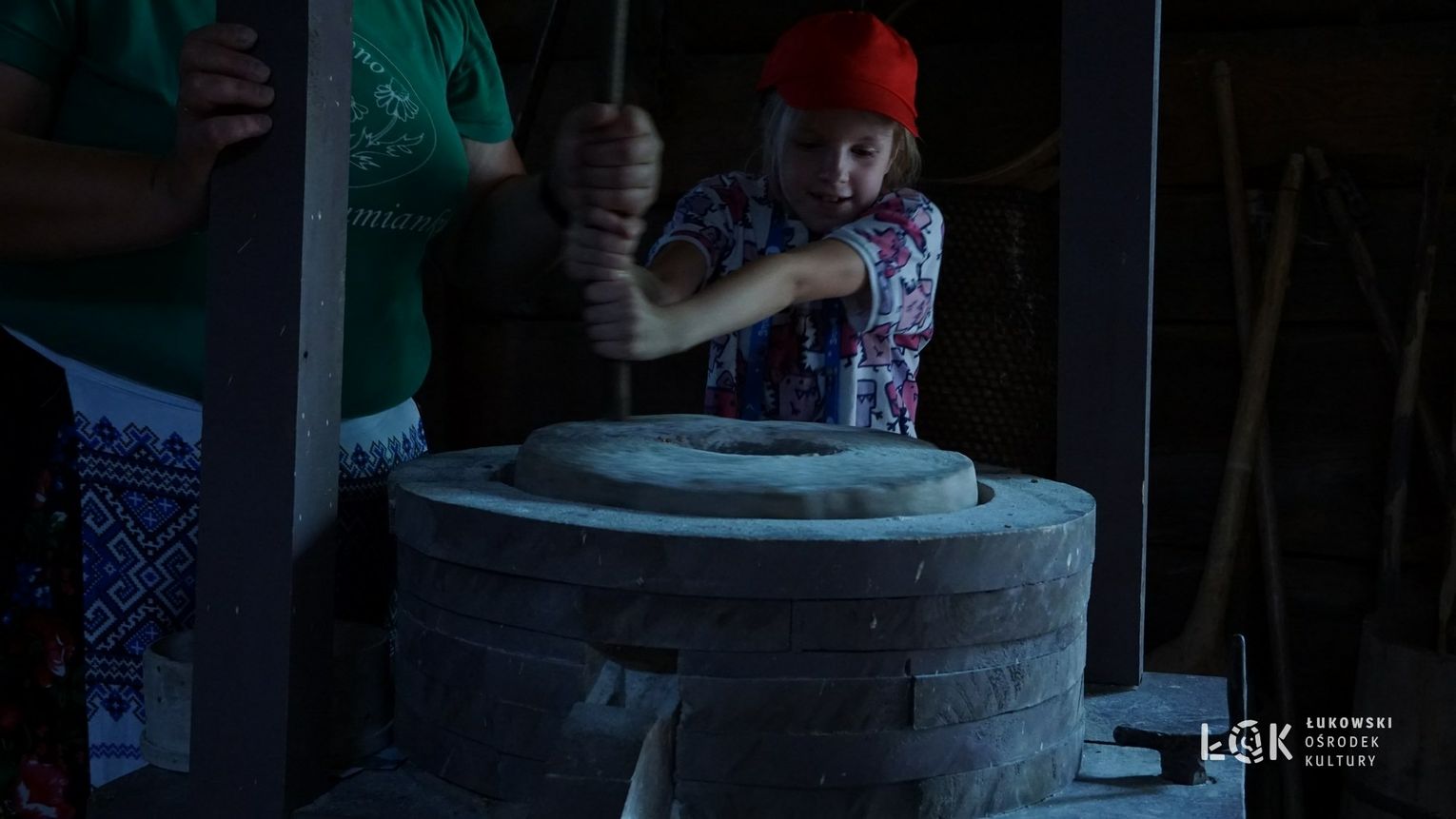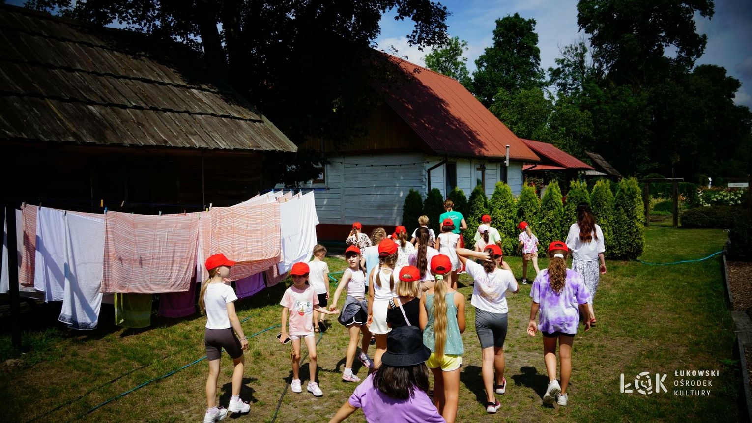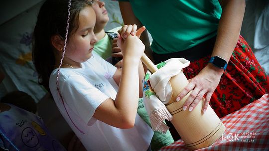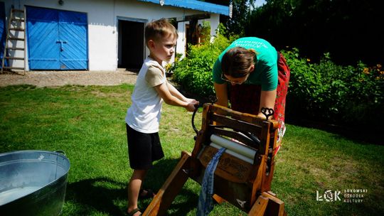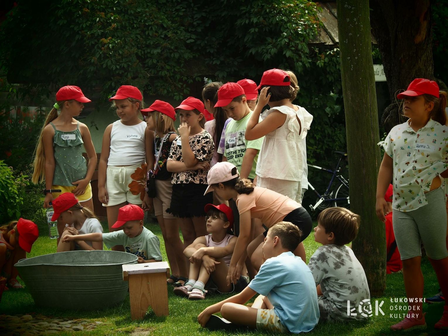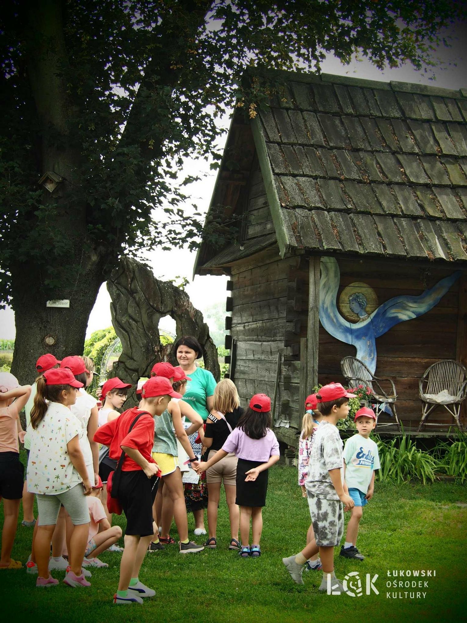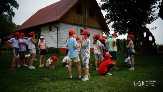 Kraina Rumianku to wioska tematyczna, w której dzieci, młodzież oraz dorośli mogą doświadczyć, jak żyli, pracowali i odpoczywali nasi przodkowie. Wszystko to dzieje się w scenerii polskiej wsi, gdzie dawne obyczaje są wciąż żywe i praktykowane. Dzieci z Łukowskiego Ośrodka Kultury wzięły udział w warsztatach „Od ziarna do chleba”, podczas których poznali tradycyjne sposoby uprawy zboża i jego przechowywania, nauczyły się młócenia cepem, czyszczenia ziarna, mielenia zboża w kamiennych żarnach. Miały także okazję przygotowywać ciasto i upiec w piecu chlebowym słodkie rogaliki, które potem mogły zjeść ze smakiem. Następnie uczestnicy zajęć w ŁOK wzięli udział w warsztatach „Dawne zajęcia domowe”, w trakcie których miały okazję m.in. wyprasować i wymaglować bieliznę, własnoręcznie upraną wcześniej w balii, zobaczyć, jak wyglądała dawna wiejska izba i co się w niej działo do świtu do zmierzchu, ubić masło w maselnicy i zjeść je ze smakiem z chlebem oraz nauczyć się prasowania żelazkiem na węgiel i z duszą. Uczestnicy warsztatów oprócz walorów edukacyjnych i integracyjnych, spędzili twórczo czas. Dodatkowo mogli czerpali radość z poznawania dziedzictwa kulturowego i przyrodniczego naszego regionu.