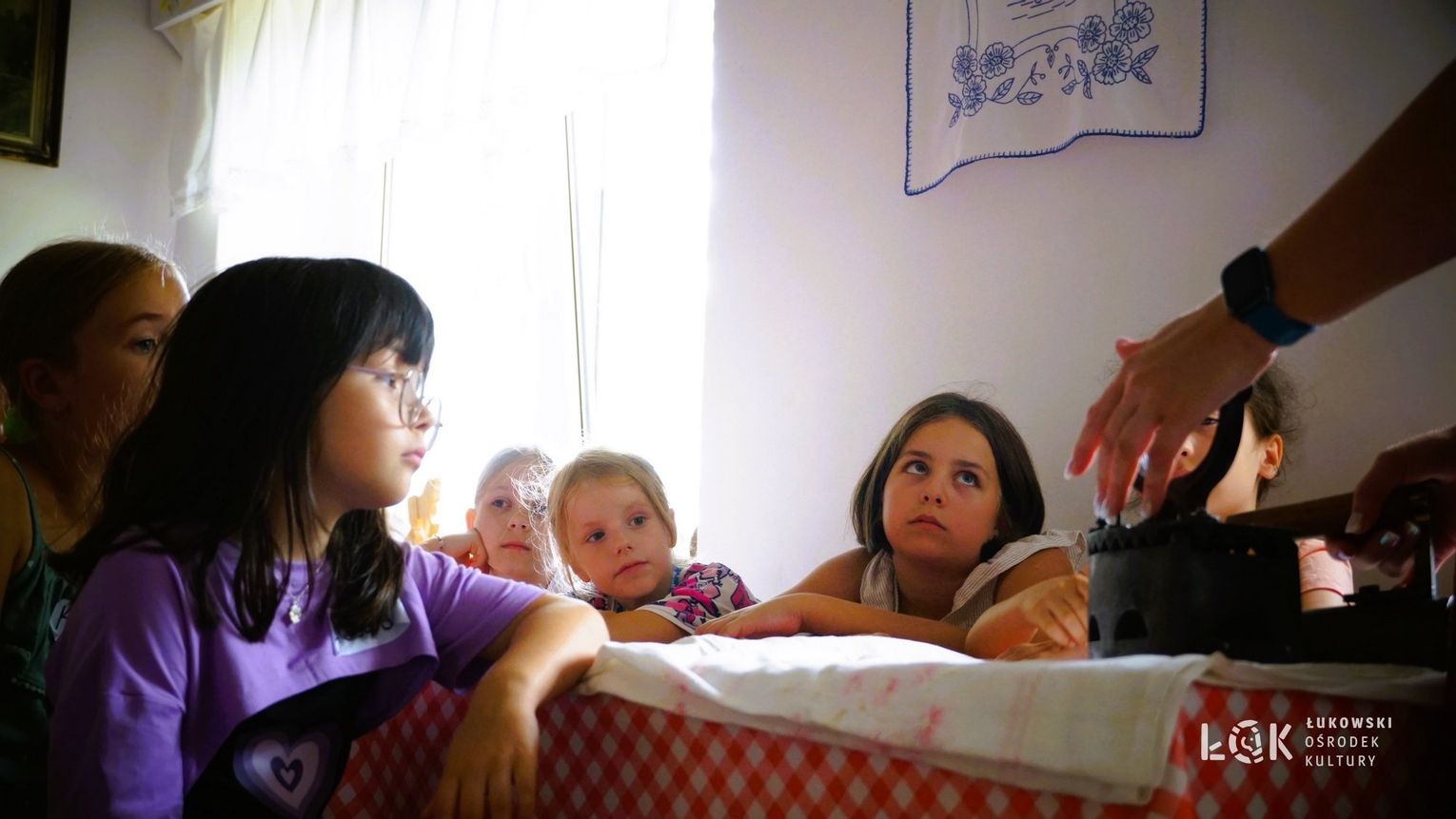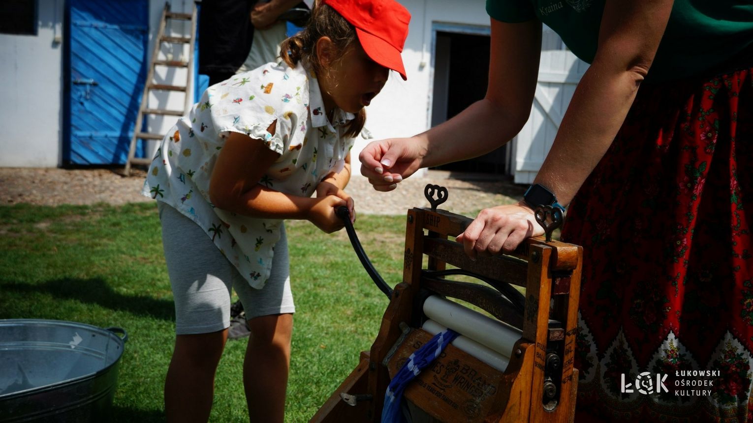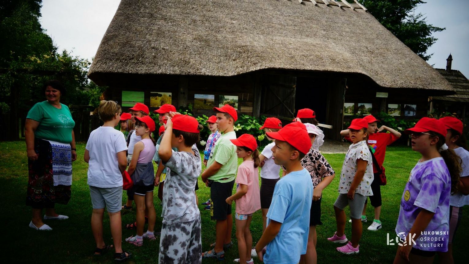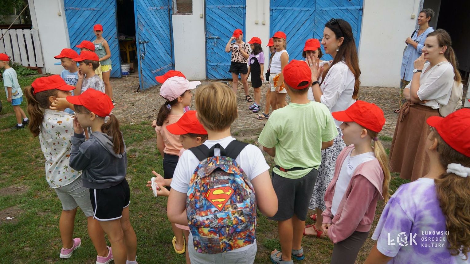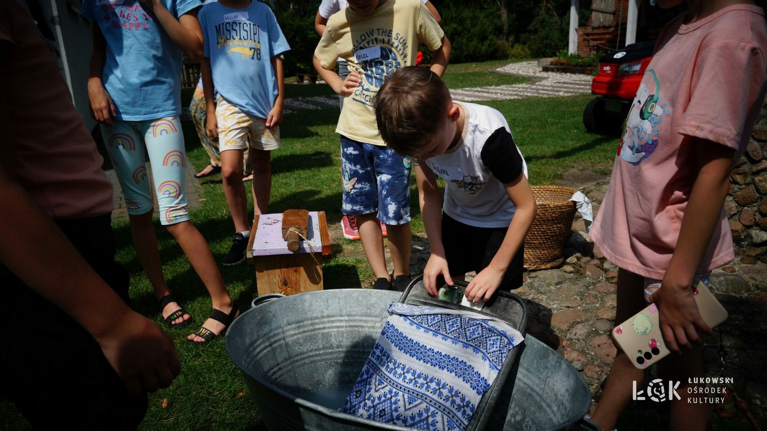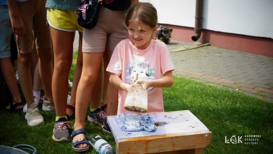Kraina Rumianku to wioska tematyczna, w której dzieci, młodzież oraz dorośli mogą doświadczyć, jak żyli, pracowali i odpoczywali nasi przodkowie. Wszystko to dzieje się w scenerii polskiej wsi, gdzie dawne obyczaje są wciąż żywe i praktykowane. Dzieci z Łukowskiego Ośrodka Kultury wzięły udział w warsztatach „Od ziarna do chleba”, podczas których poznali tradycyjne sposoby uprawy zboża i jego przechowywania, nauczyły się młócenia cepem, czyszczenia ziarna, mielenia zboża w kamiennych żarnach. Miały także okazję przygotowywać ciasto i upiec w piecu chlebowym słodkie rogaliki, które potem mogły zjeść ze smakiem. Następnie uczestnicy zajęć w ŁOK wzięli udział w warsztatach „Dawne zajęcia domowe”, w trakcie których miały okazję m.in. wyprasować i wymaglować bieliznę, własnoręcznie upraną wcześniej w balii, zobaczyć, jak wyglądała dawna wiejska izba i co się w niej działo do świtu do zmierzchu, ubić masło w maselnicy i zjeść je ze smakiem z chlebem oraz nauczyć się prasowania żelazkiem na węgiel i z duszą. Uczestnicy warsztatów oprócz walorów edukacyjnych i integracyjnych, spędzili twórczo czas. Dodatkowo mogli czerpali radość z poznawania dziedzictwa kulturowego i przyrodniczego naszego regionu.
