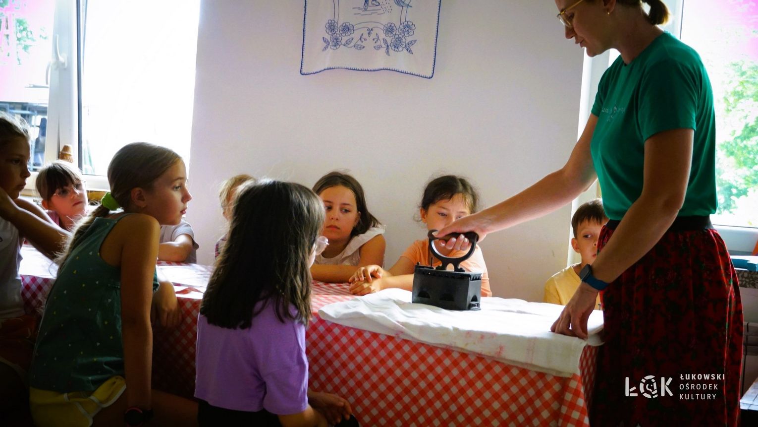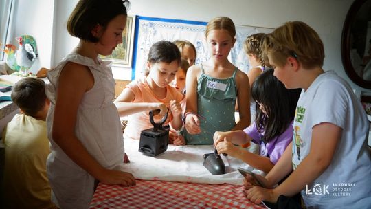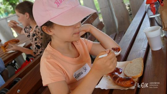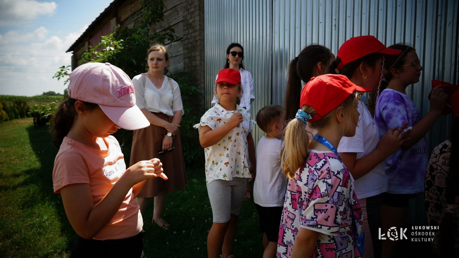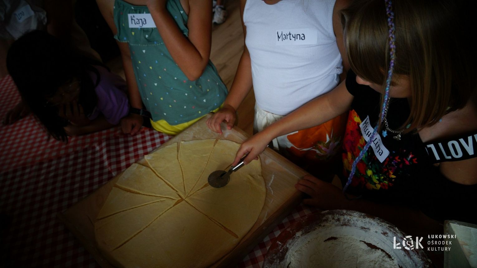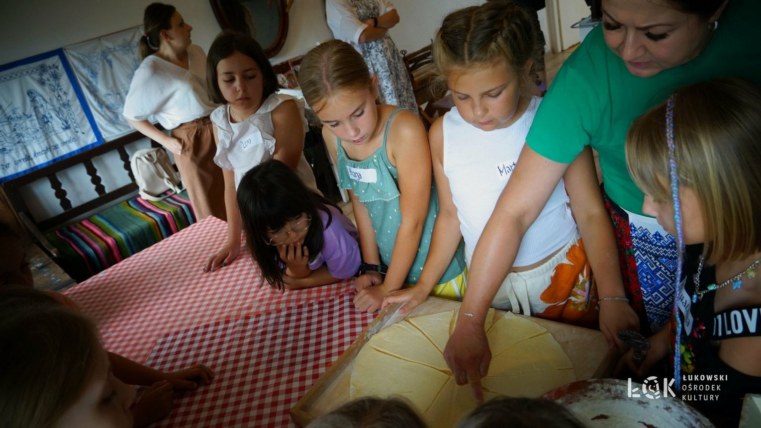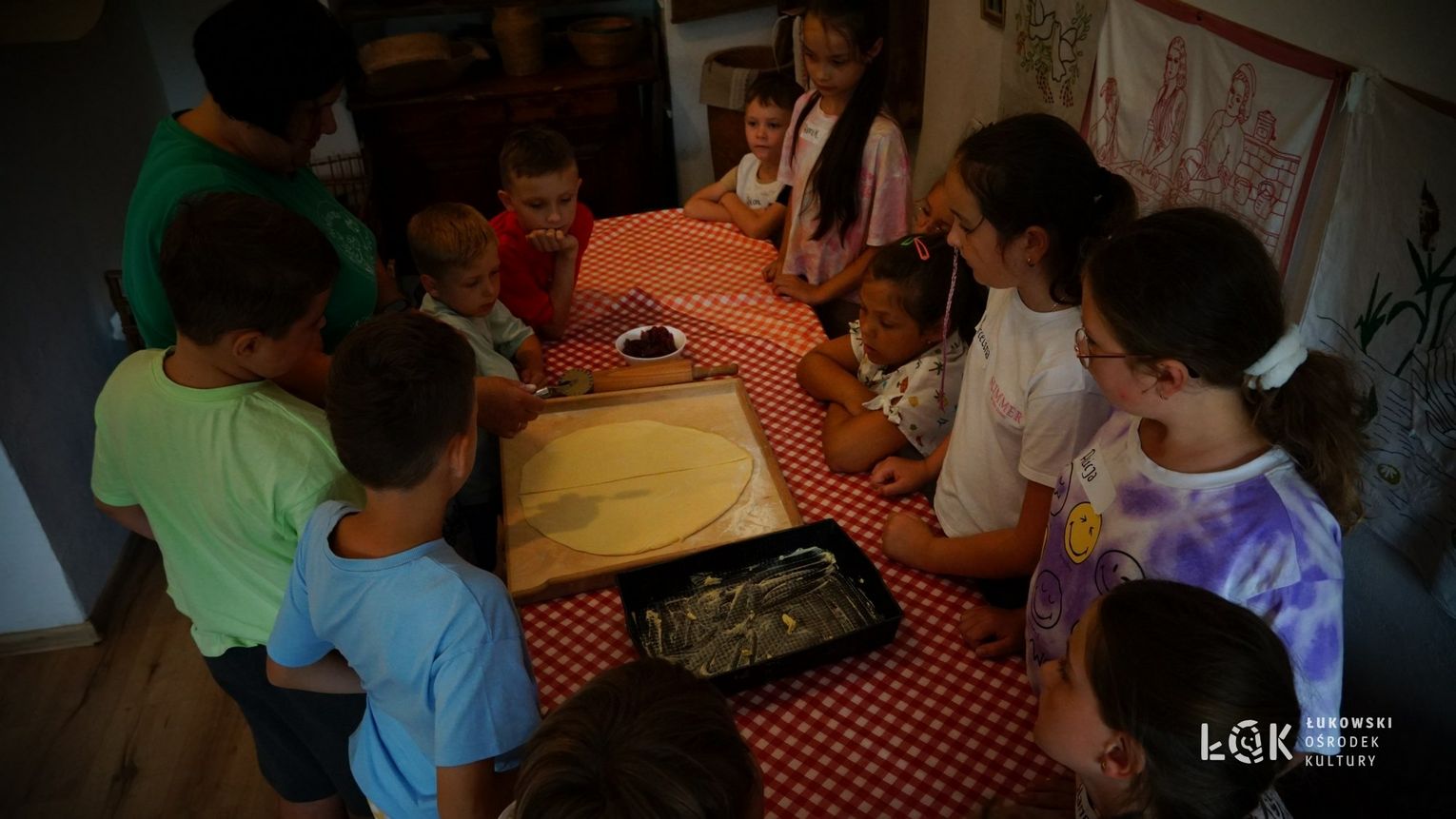 Kraina Rumianku to wioska tematyczna, w której dzieci, młodzież oraz dorośli mogą doświadczyć, jak żyli, pracowali i odpoczywali nasi przodkowie. Wszystko to dzieje się w scenerii polskiej wsi, gdzie dawne obyczaje są wciąż żywe i praktykowane. Dzieci z Łukowskiego Ośrodka Kultury wzięły udział w warsztatach „Od ziarna do chleba”, podczas których poznali tradycyjne sposoby uprawy zboża i jego przechowywania, nauczyły się młócenia cepem, czyszczenia ziarna, mielenia zboża w kamiennych żarnach. Miały także okazję przygotowywać ciasto i upiec w piecu chlebowym słodkie rogaliki, które potem mogły zjeść ze smakiem. Następnie uczestnicy zajęć w ŁOK wzięli udział w warsztatach „Dawne zajęcia domowe”, w trakcie których miały okazję m.in. wyprasować i wymaglować bieliznę, własnoręcznie upraną wcześniej w balii, zobaczyć, jak wyglądała dawna wiejska izba i co się w niej działo do świtu do zmierzchu, ubić masło w maselnicy i zjeść je ze smakiem z chlebem oraz nauczyć się prasowania żelazkiem na węgiel i z duszą. Uczestnicy warsztatów oprócz walorów edukacyjnych i integracyjnych, spędzili twórczo czas. Dodatkowo mogli czerpali radość z poznawania dziedzictwa kulturowego i przyrodniczego naszego regionu.