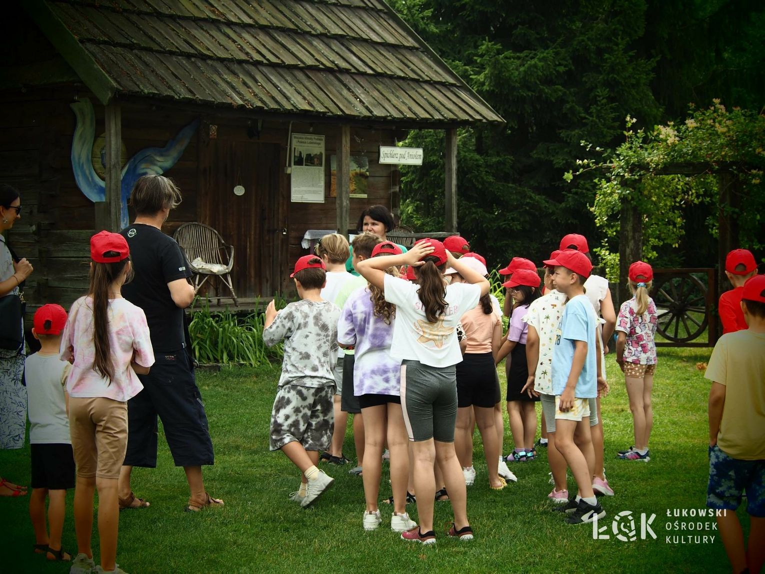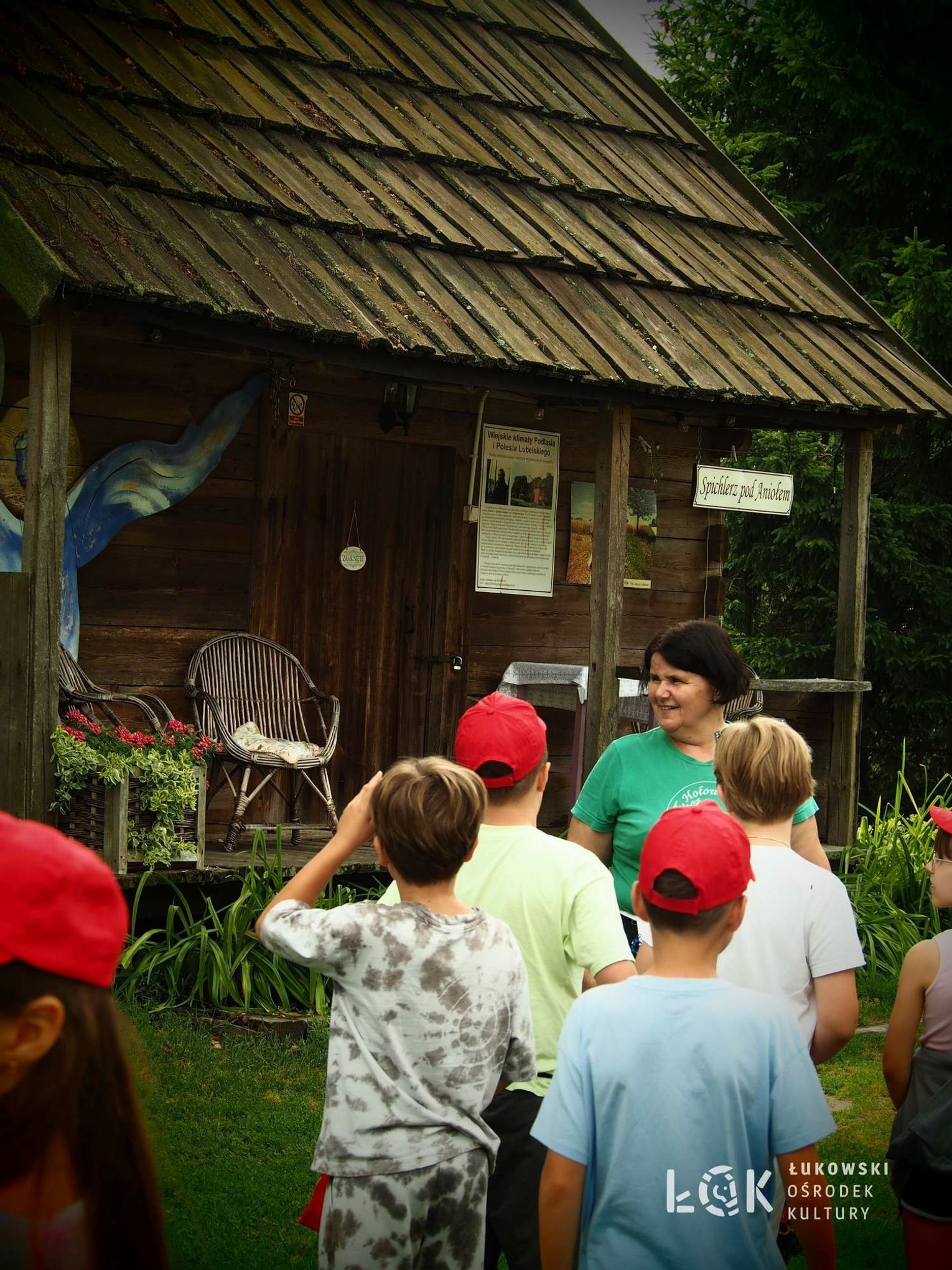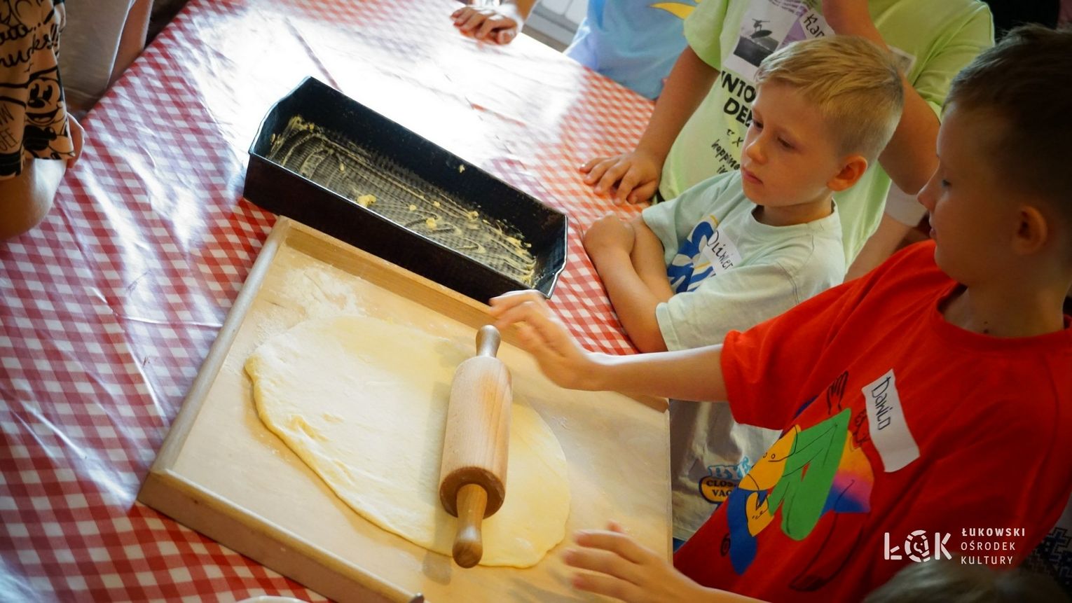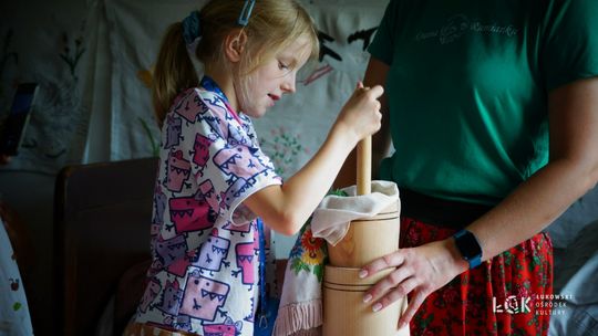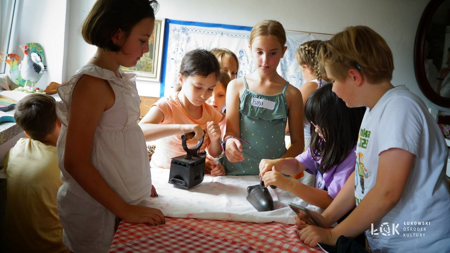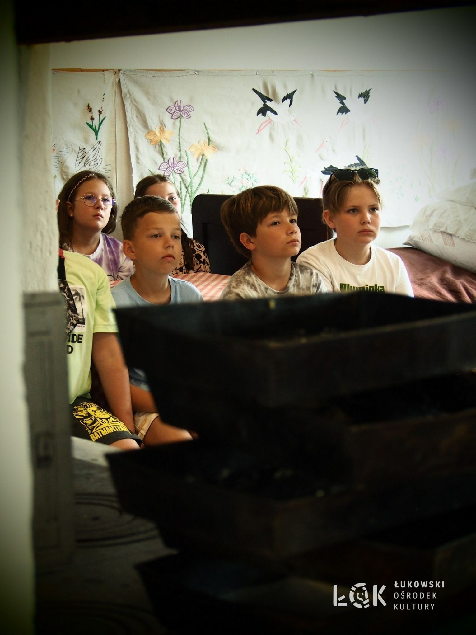 Kraina Rumianku to wioska tematyczna, w której dzieci, młodzież oraz dorośli mogą doświadczyć, jak żyli, pracowali i odpoczywali nasi przodkowie. Wszystko to dzieje się w scenerii polskiej wsi, gdzie dawne obyczaje są wciąż żywe i praktykowane. Dzieci z Łukowskiego Ośrodka Kultury wzięły udział w warsztatach „Od ziarna do chleba”, podczas których poznali tradycyjne sposoby uprawy zboża i jego przechowywania, nauczyły się młócenia cepem, czyszczenia ziarna, mielenia zboża w kamiennych żarnach. Miały także okazję przygotowywać ciasto i upiec w piecu chlebowym słodkie rogaliki, które potem mogły zjeść ze smakiem. Następnie uczestnicy zajęć w ŁOK wzięli udział w warsztatach „Dawne zajęcia domowe”, w trakcie których miały okazję m.in. wyprasować i wymaglować bieliznę, własnoręcznie upraną wcześniej w balii, zobaczyć, jak wyglądała dawna wiejska izba i co się w niej działo do świtu do zmierzchu, ubić masło w maselnicy i zjeść je ze smakiem z chlebem oraz nauczyć się prasowania żelazkiem na węgiel i z duszą. Uczestnicy warsztatów oprócz walorów edukacyjnych i integracyjnych, spędzili twórczo czas. Dodatkowo mogli czerpali radość z poznawania dziedzictwa kulturowego i przyrodniczego naszego regionu.