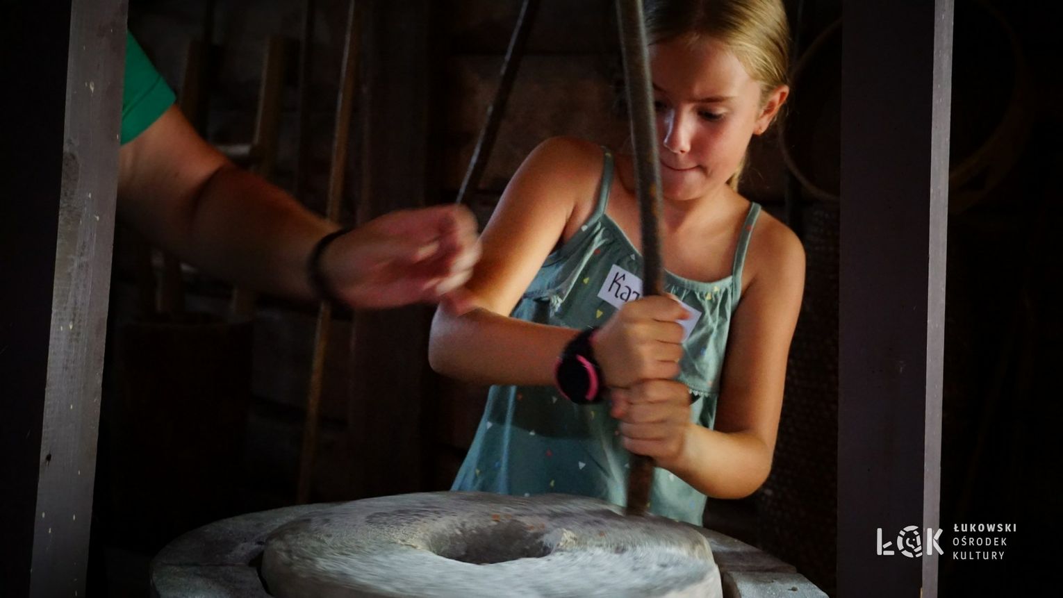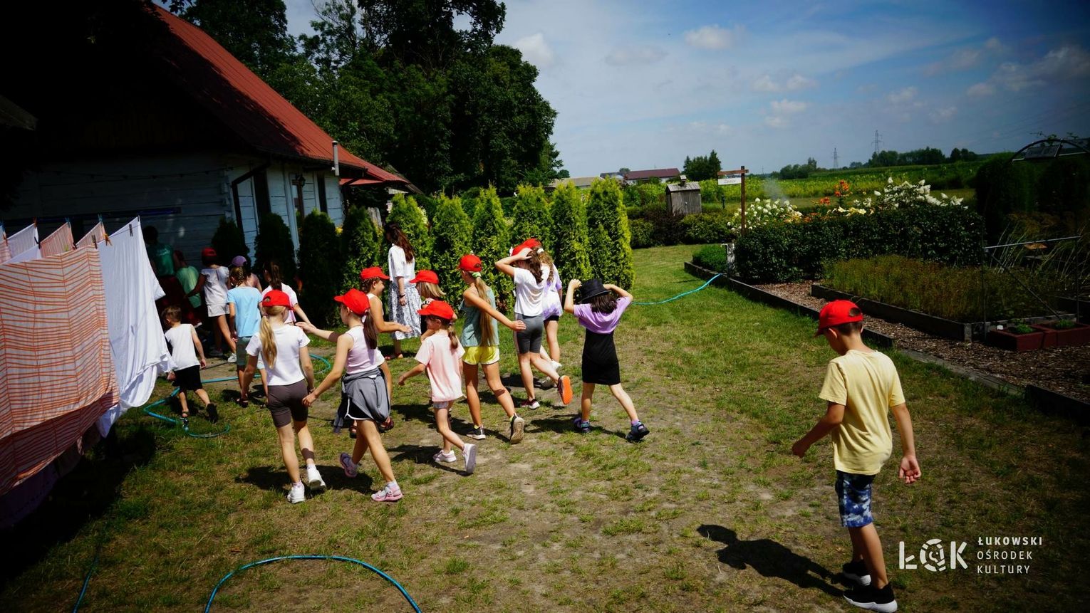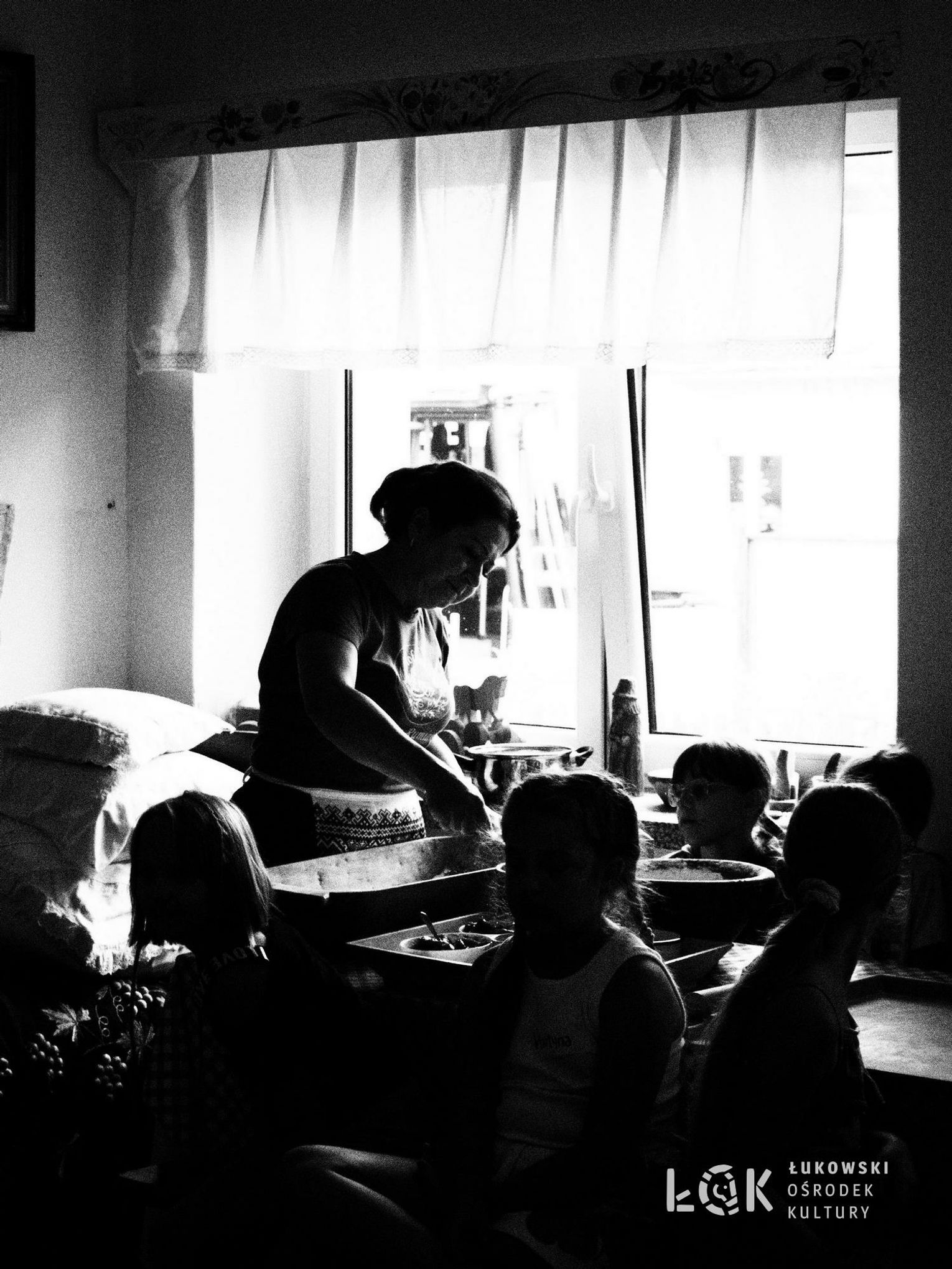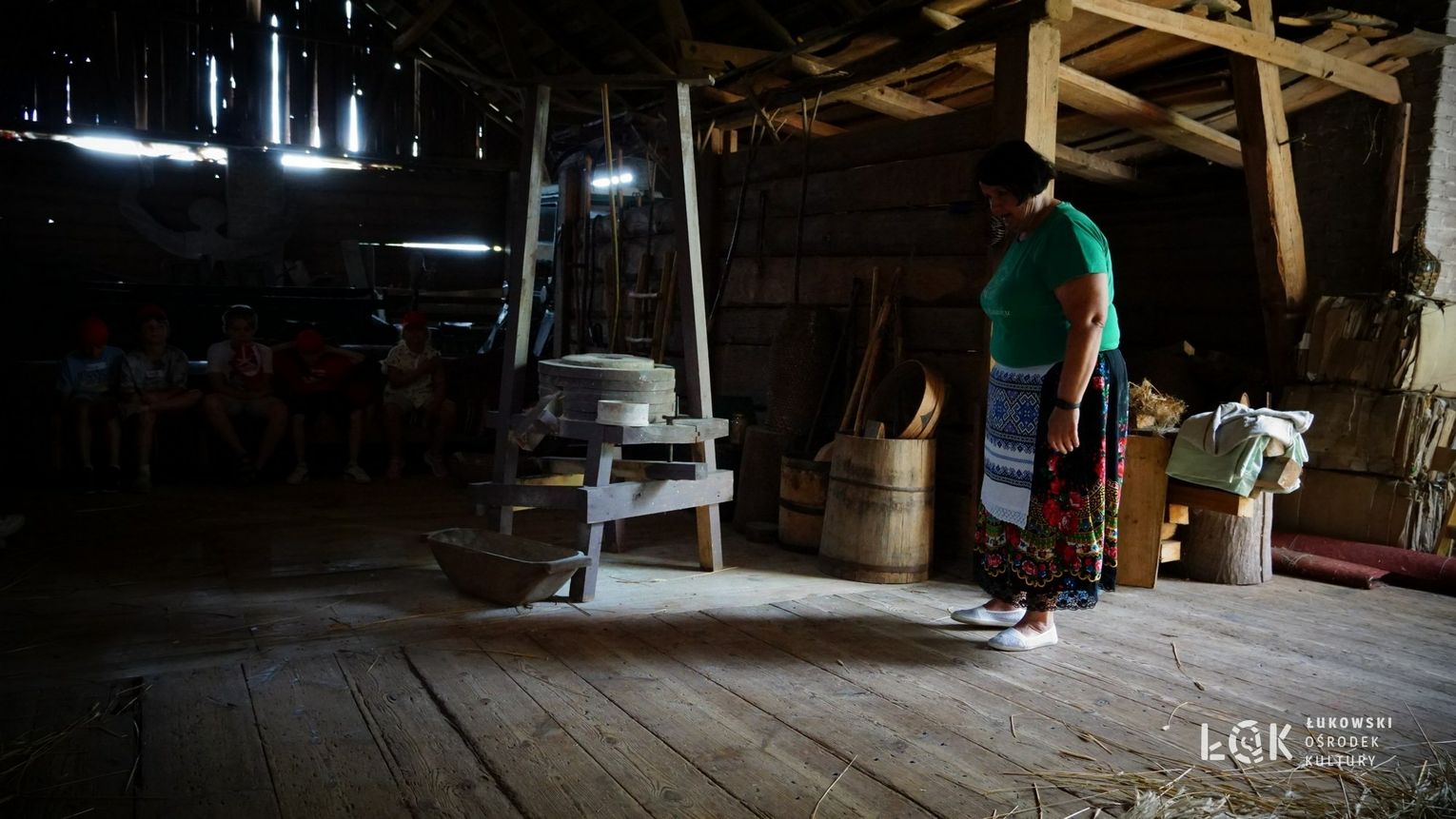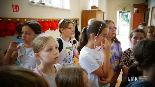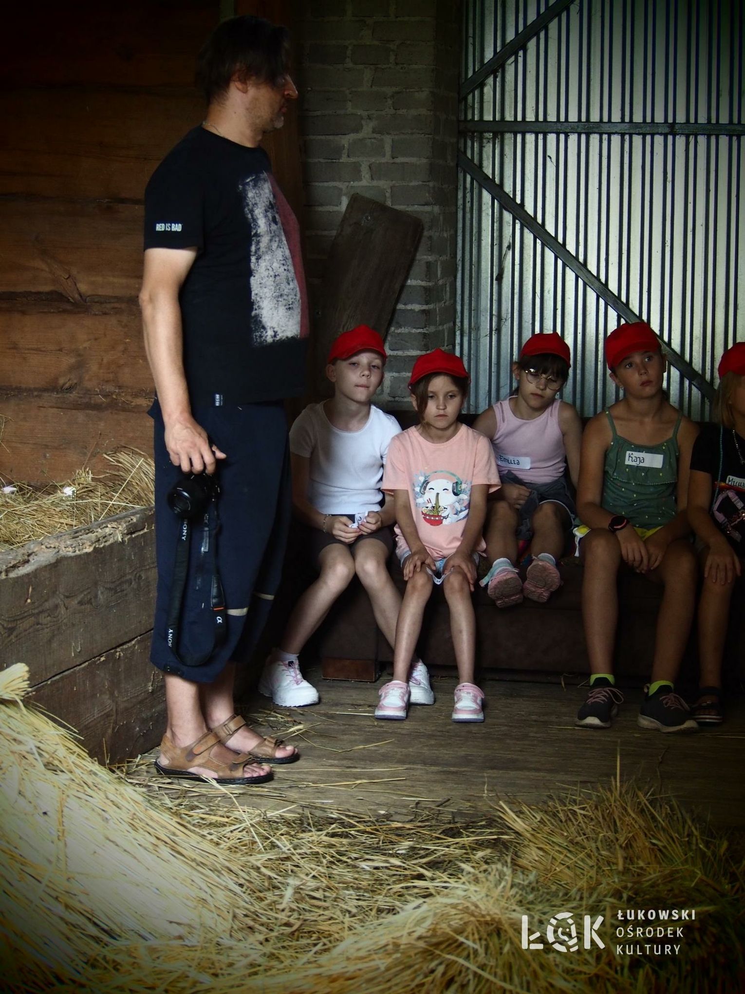 Kraina Rumianku to wioska tematyczna, w której dzieci, młodzież oraz dorośli mogą doświadczyć, jak żyli, pracowali i odpoczywali nasi przodkowie. Wszystko to dzieje się w scenerii polskiej wsi, gdzie dawne obyczaje są wciąż żywe i praktykowane. Dzieci z Łukowskiego Ośrodka Kultury wzięły udział w warsztatach „Od ziarna do chleba”, podczas których poznali tradycyjne sposoby uprawy zboża i jego przechowywania, nauczyły się młócenia cepem, czyszczenia ziarna, mielenia zboża w kamiennych żarnach. Miały także okazję przygotowywać ciasto i upiec w piecu chlebowym słodkie rogaliki, które potem mogły zjeść ze smakiem. Następnie uczestnicy zajęć w ŁOK wzięli udział w warsztatach „Dawne zajęcia domowe”, w trakcie których miały okazję m.in. wyprasować i wymaglować bieliznę, własnoręcznie upraną wcześniej w balii, zobaczyć, jak wyglądała dawna wiejska izba i co się w niej działo do świtu do zmierzchu, ubić masło w maselnicy i zjeść je ze smakiem z chlebem oraz nauczyć się prasowania żelazkiem na węgiel i z duszą. Uczestnicy warsztatów oprócz walorów edukacyjnych i integracyjnych, spędzili twórczo czas. Dodatkowo mogli czerpali radość z poznawania dziedzictwa kulturowego i przyrodniczego naszego regionu.