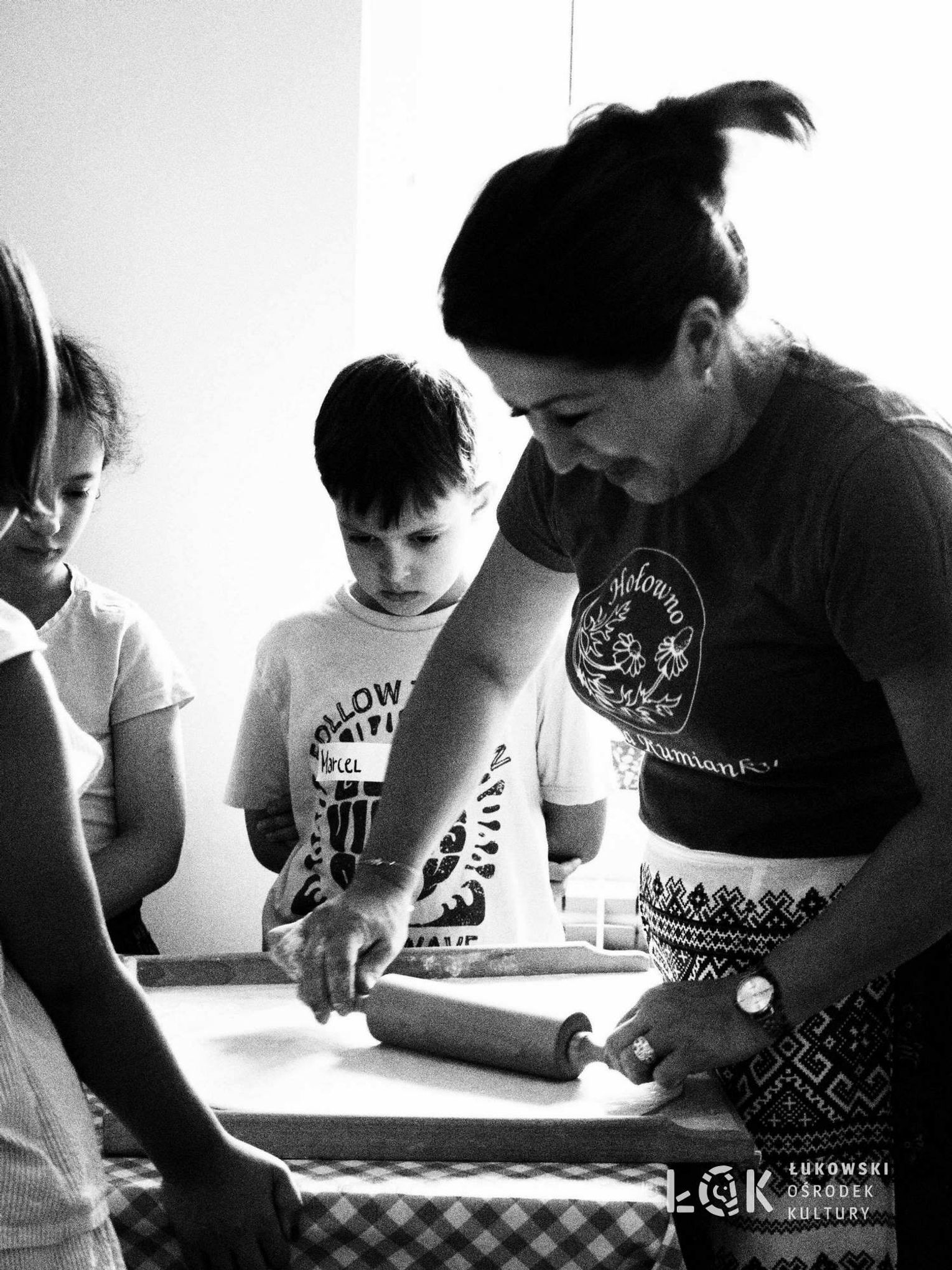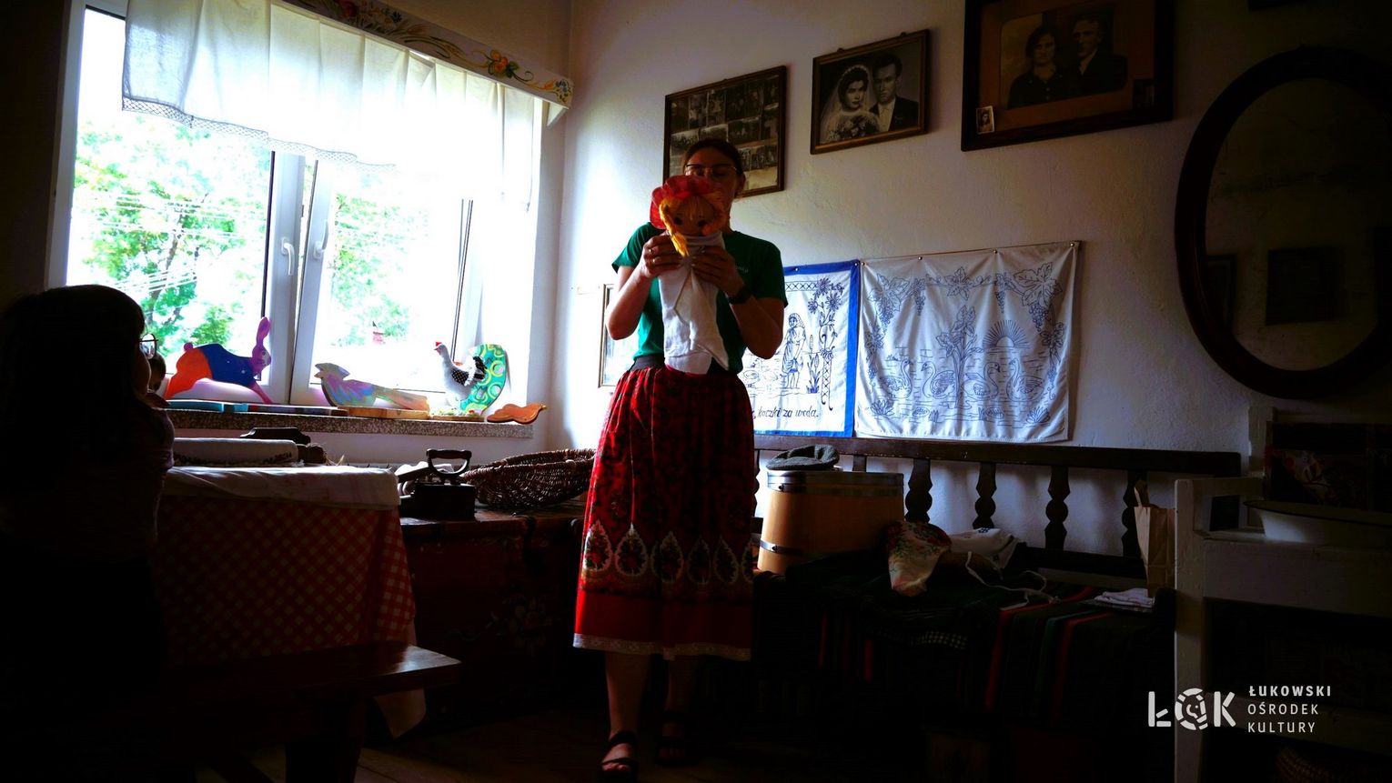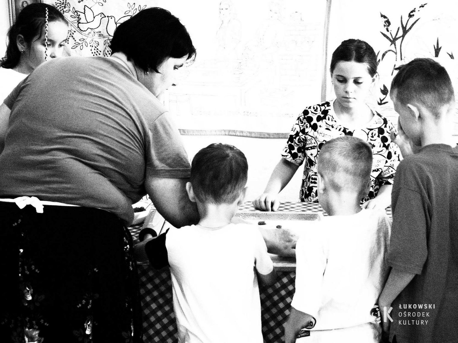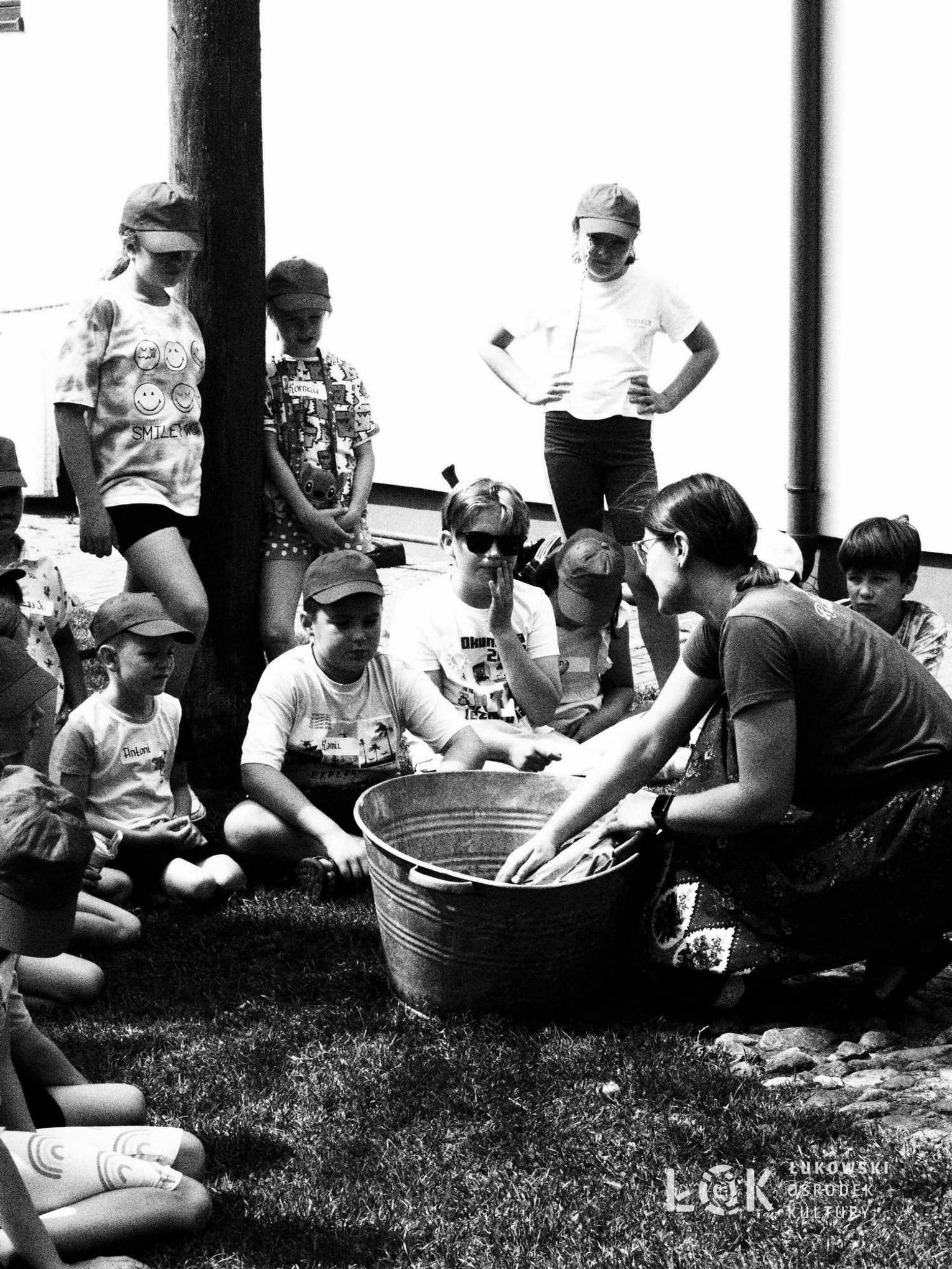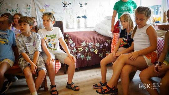 Kraina Rumianku to wioska tematyczna, w której dzieci, młodzież oraz dorośli mogą doświadczyć, jak żyli, pracowali i odpoczywali nasi przodkowie. Wszystko to dzieje się w scenerii polskiej wsi, gdzie dawne obyczaje są wciąż żywe i praktykowane. Dzieci z Łukowskiego Ośrodka Kultury wzięły udział w warsztatach „Od ziarna do chleba”, podczas których poznali tradycyjne sposoby uprawy zboża i jego przechowywania, nauczyły się młócenia cepem, czyszczenia ziarna, mielenia zboża w kamiennych żarnach. Miały także okazję przygotowywać ciasto i upiec w piecu chlebowym słodkie rogaliki, które potem mogły zjeść ze smakiem. Następnie uczestnicy zajęć w ŁOK wzięli udział w warsztatach „Dawne zajęcia domowe”, w trakcie których miały okazję m.in. wyprasować i wymaglować bieliznę, własnoręcznie upraną wcześniej w balii, zobaczyć, jak wyglądała dawna wiejska izba i co się w niej działo do świtu do zmierzchu, ubić masło w maselnicy i zjeść je ze smakiem z chlebem oraz nauczyć się prasowania żelazkiem na węgiel i z duszą. Uczestnicy warsztatów oprócz walorów edukacyjnych i integracyjnych, spędzili twórczo czas. Dodatkowo mogli czerpali radość z poznawania dziedzictwa kulturowego i przyrodniczego naszego regionu.