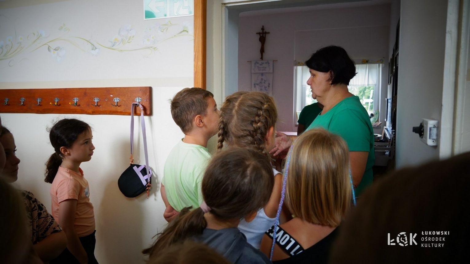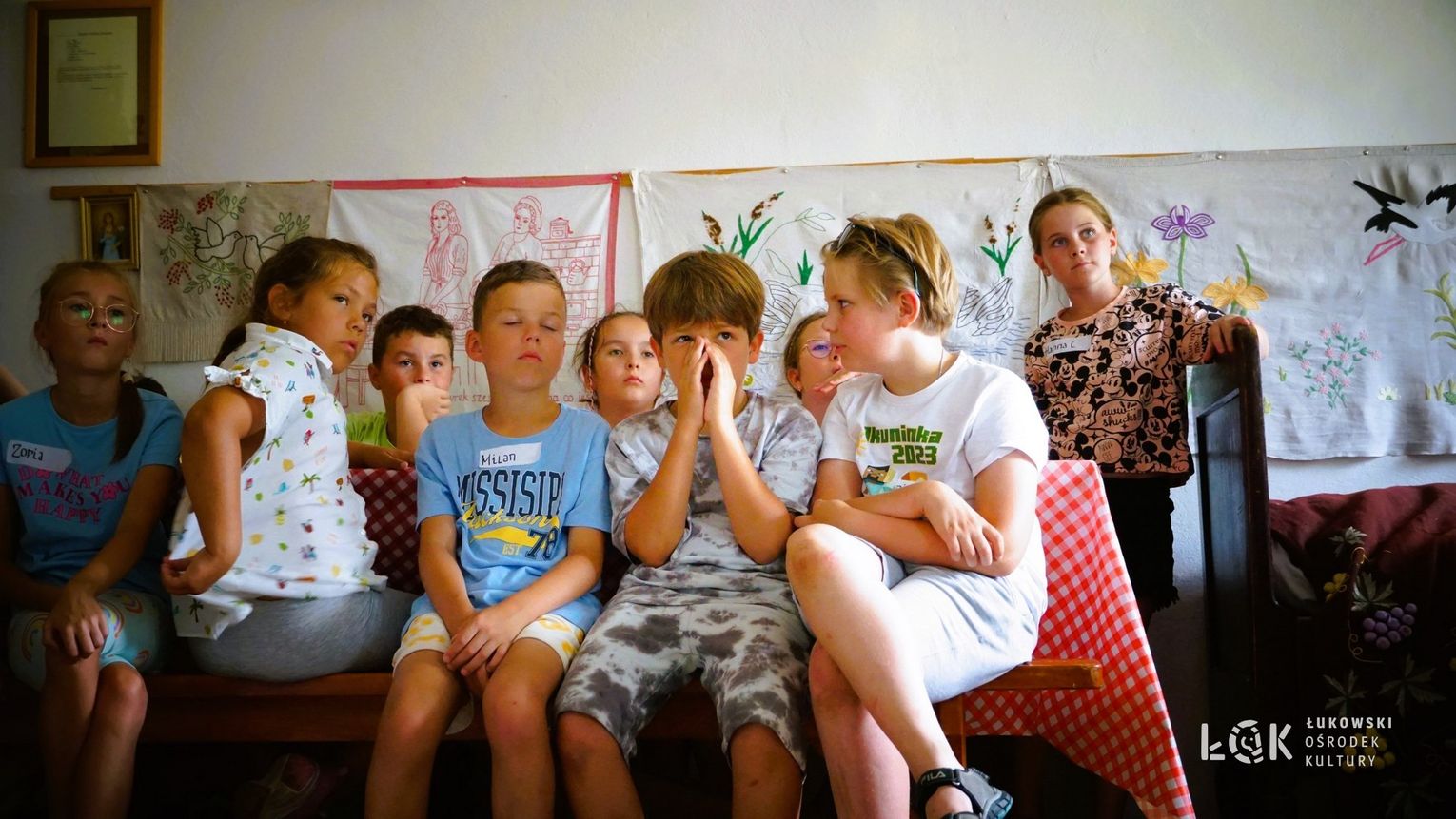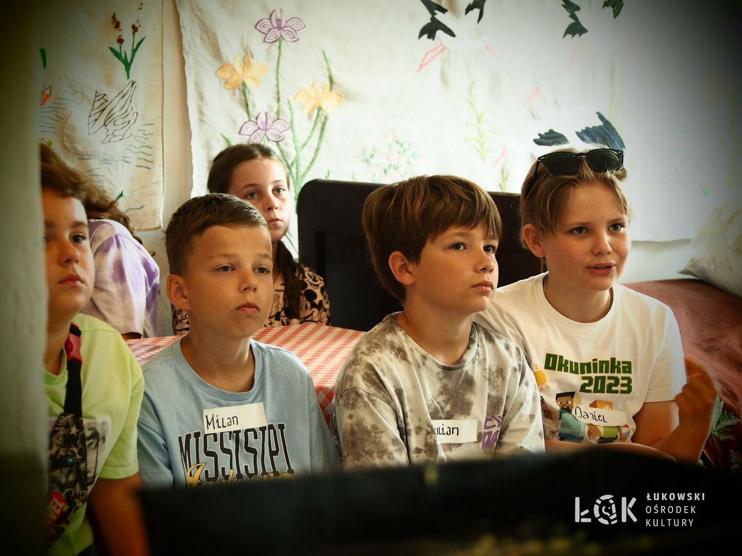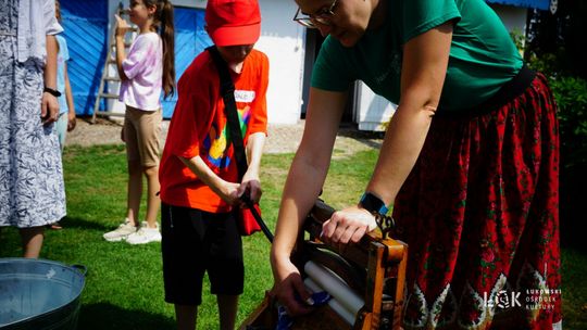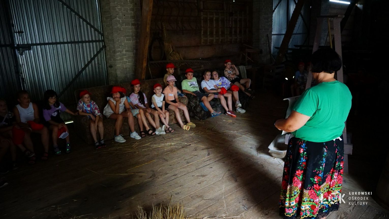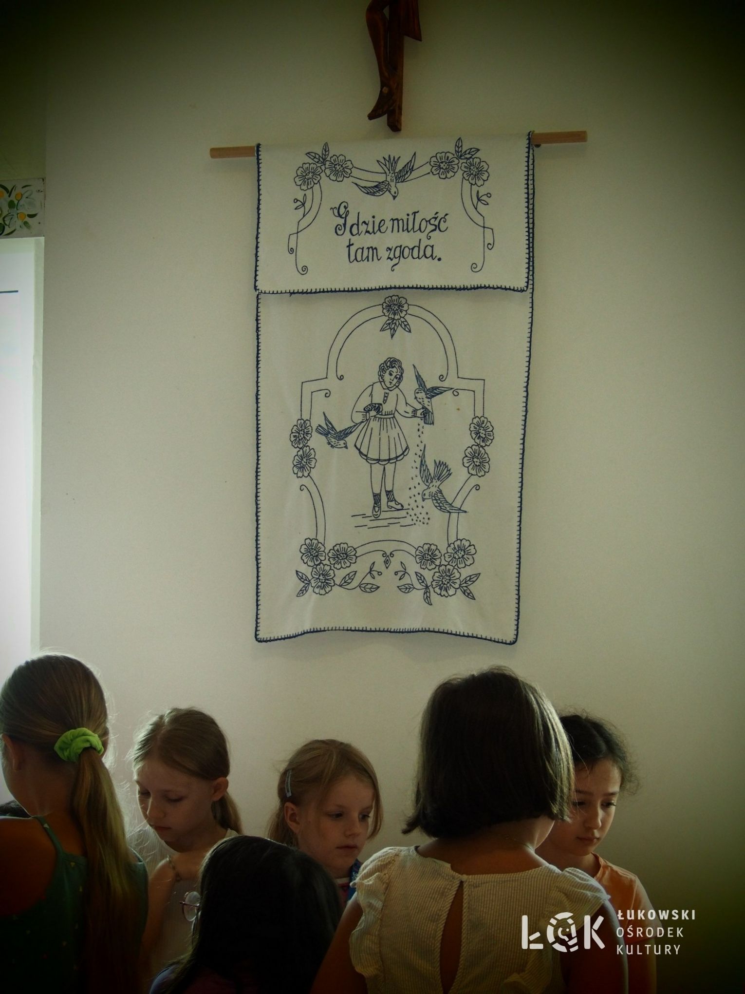 Kraina Rumianku to wioska tematyczna, w której dzieci, młodzież oraz dorośli mogą doświadczyć, jak żyli, pracowali i odpoczywali nasi przodkowie. Wszystko to dzieje się w scenerii polskiej wsi, gdzie dawne obyczaje są wciąż żywe i praktykowane. Dzieci z Łukowskiego Ośrodka Kultury wzięły udział w warsztatach „Od ziarna do chleba”, podczas których poznali tradycyjne sposoby uprawy zboża i jego przechowywania, nauczyły się młócenia cepem, czyszczenia ziarna, mielenia zboża w kamiennych żarnach. Miały także okazję przygotowywać ciasto i upiec w piecu chlebowym słodkie rogaliki, które potem mogły zjeść ze smakiem. Następnie uczestnicy zajęć w ŁOK wzięli udział w warsztatach „Dawne zajęcia domowe”, w trakcie których miały okazję m.in. wyprasować i wymaglować bieliznę, własnoręcznie upraną wcześniej w balii, zobaczyć, jak wyglądała dawna wiejska izba i co się w niej działo do świtu do zmierzchu, ubić masło w maselnicy i zjeść je ze smakiem z chlebem oraz nauczyć się prasowania żelazkiem na węgiel i z duszą. Uczestnicy warsztatów oprócz walorów edukacyjnych i integracyjnych, spędzili twórczo czas. Dodatkowo mogli czerpali radość z poznawania dziedzictwa kulturowego i przyrodniczego naszego regionu.