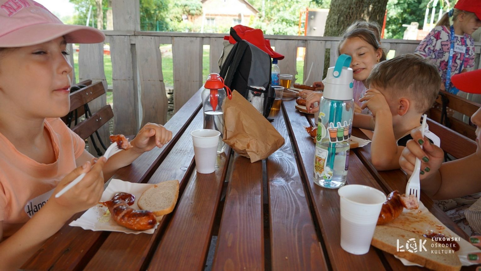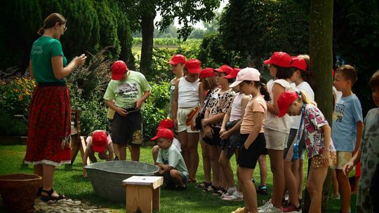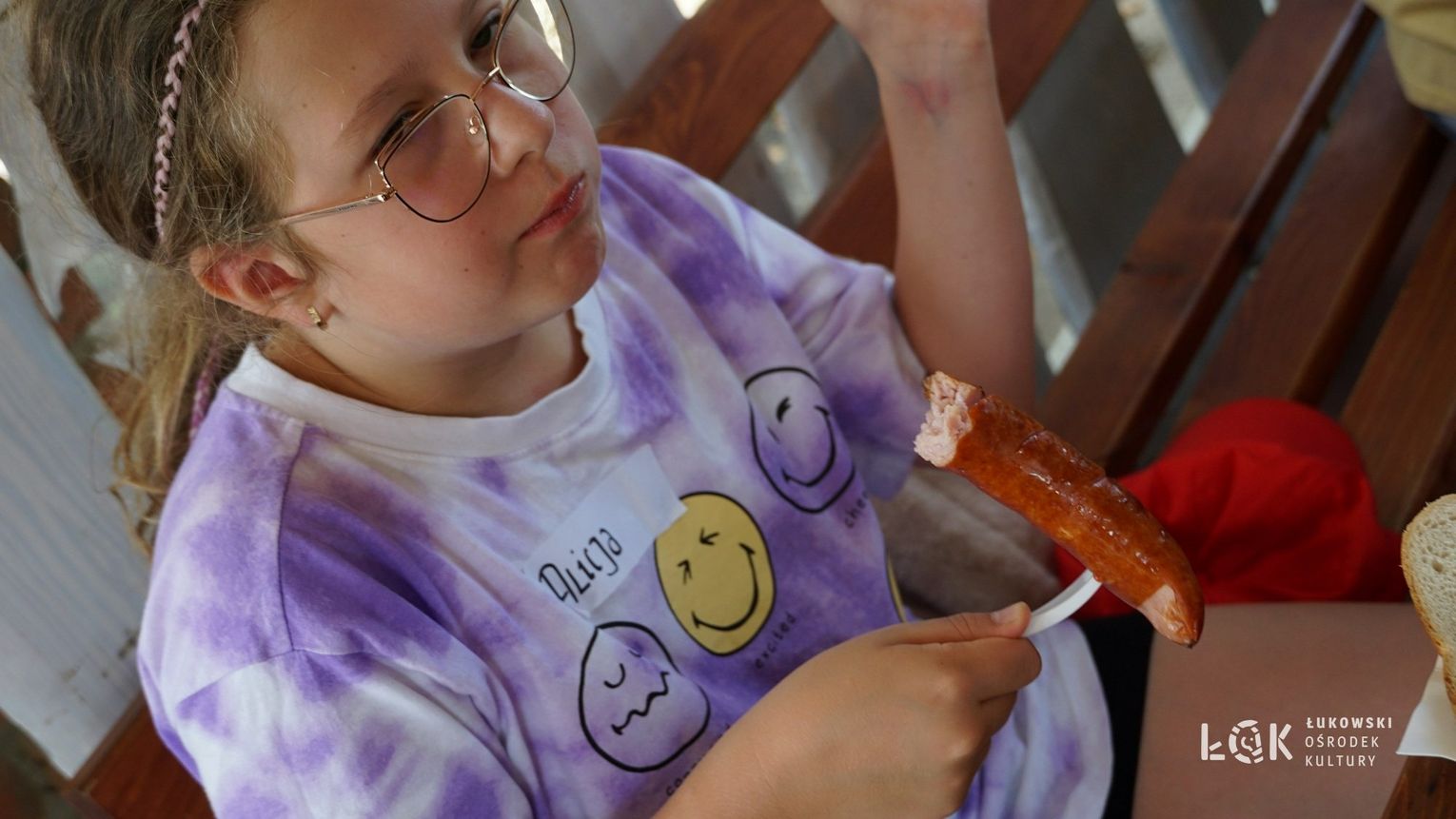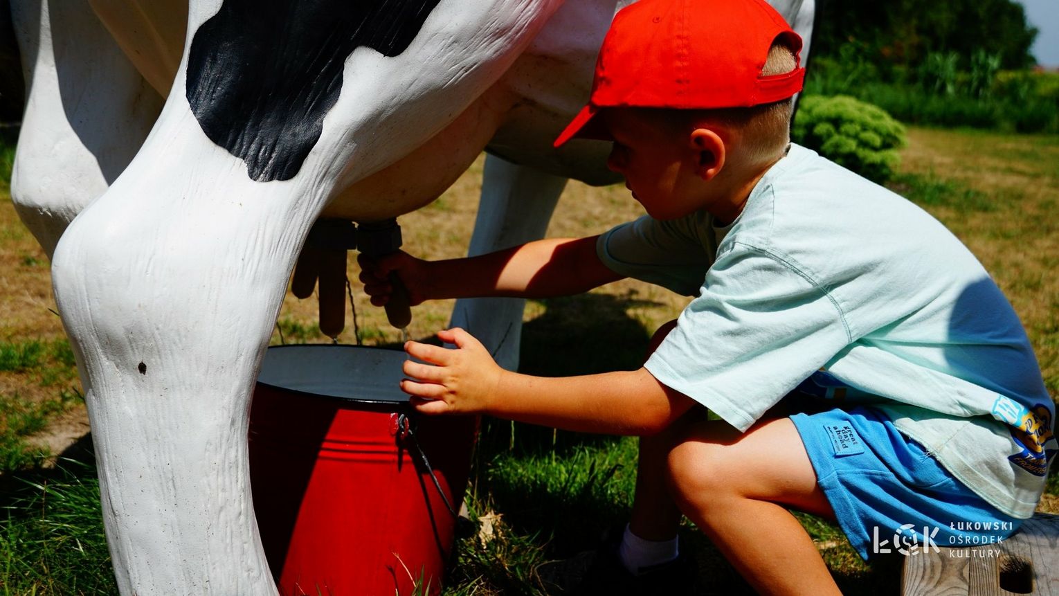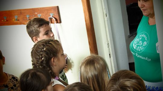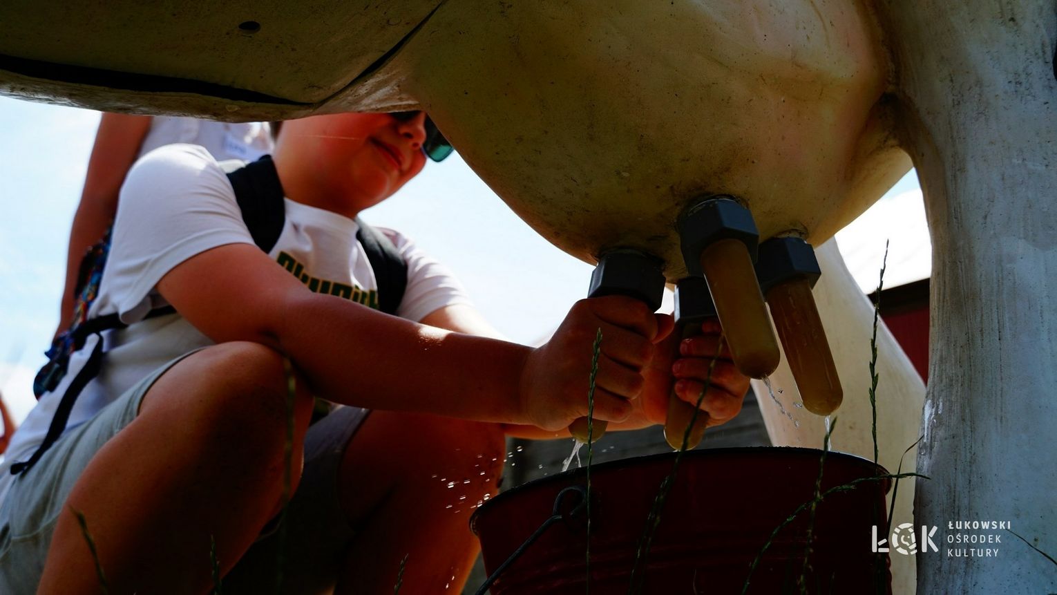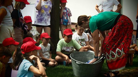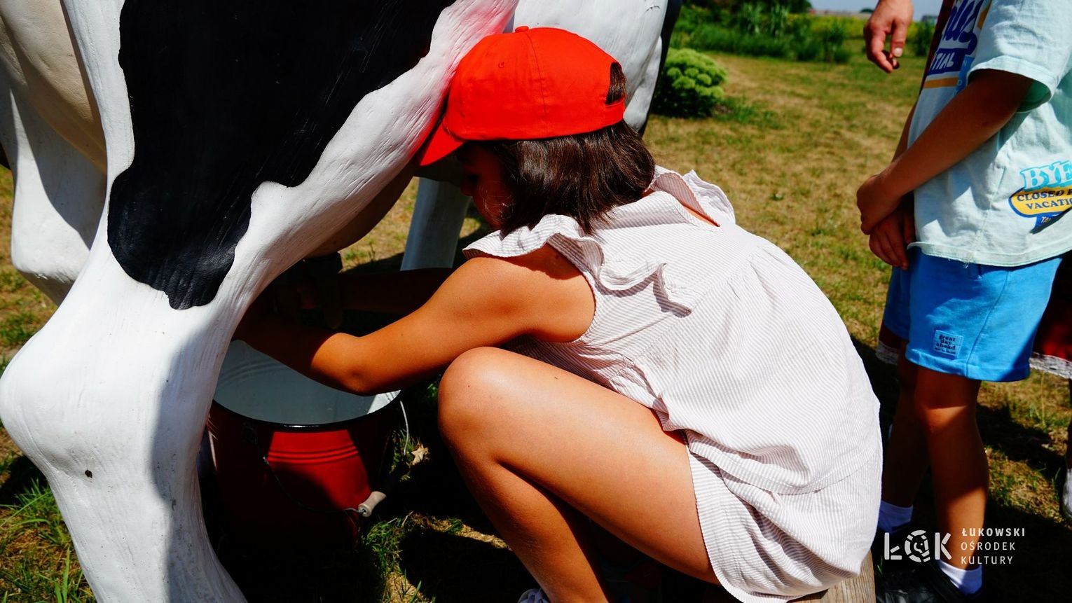 Kraina Rumianku to wioska tematyczna, w której dzieci, młodzież oraz dorośli mogą doświadczyć, jak żyli, pracowali i odpoczywali nasi przodkowie. Wszystko to dzieje się w scenerii polskiej wsi, gdzie dawne obyczaje są wciąż żywe i praktykowane. Dzieci z Łukowskiego Ośrodka Kultury wzięły udział w warsztatach „Od ziarna do chleba”, podczas których poznali tradycyjne sposoby uprawy zboża i jego przechowywania, nauczyły się młócenia cepem, czyszczenia ziarna, mielenia zboża w kamiennych żarnach. Miały także okazję przygotowywać ciasto i upiec w piecu chlebowym słodkie rogaliki, które potem mogły zjeść ze smakiem. Następnie uczestnicy zajęć w ŁOK wzięli udział w warsztatach „Dawne zajęcia domowe”, w trakcie których miały okazję m.in. wyprasować i wymaglować bieliznę, własnoręcznie upraną wcześniej w balii, zobaczyć, jak wyglądała dawna wiejska izba i co się w niej działo do świtu do zmierzchu, ubić masło w maselnicy i zjeść je ze smakiem z chlebem oraz nauczyć się prasowania żelazkiem na węgiel i z duszą. Uczestnicy warsztatów oprócz walorów edukacyjnych i integracyjnych, spędzili twórczo czas. Dodatkowo mogli czerpali radość z poznawania dziedzictwa kulturowego i przyrodniczego naszego regionu.
