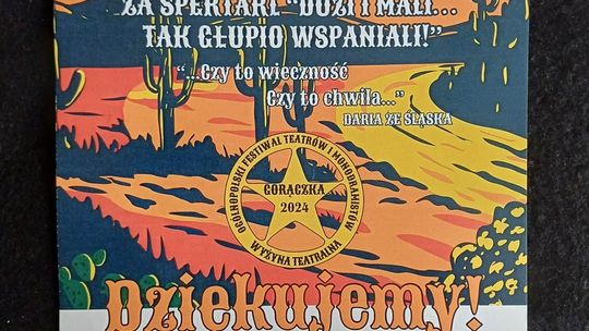 My wychwalamy kreatywność, profesjonalizm organizacyjny i ogromną „gorączkę” Organizatorów, która objawiała się serdecznością, gościnnością a także profesjonalną pomocą techniczną podczas realizacji spektakli. Zapewniliście nam wypoczynek ze sztuką teatru, najmłodszym aktywizującą zabawę w „poszukiwaczy złota” a wszystkim edukację warsztatową… odbyły się trzy warsztaty prowadzone przez Caryl Swift, Marcina Pławskiego i Dominika Bąka… a o poranną tężyznę fizyczną uczestników zadbał Damian Grzywna prowadząc warsztaty samoobrony! Dziękujemy „szeryfowi” Marcinowi Woszczewskiemu kierującemu Gminnym Ośrodkiem Kultury w Rudzie-Hucie i Teatrem „OKO”, obchodzącym osiemnastą rocznicę swojej pierwszej premiery. Na jego ręce składamy podziękowania dla pracowników GOK i młodzieży z pełnoletniego „OKA”… za bezgraniczne poświęcenie się idei 17. Wyżyny Teatralnej!