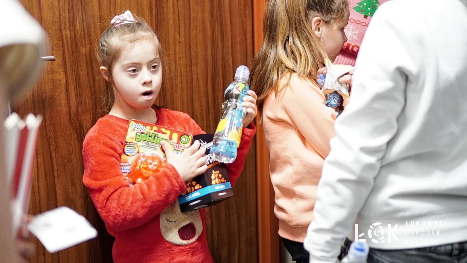 Przychodząc na dzisiejsze seanse w Kinie Łuków, wszystkie dzieci otrzymały wspaniałe upominki. Oczywiście nie nie od nas. Te, zanim święty udał się pod miejską choinkę, zostawił przed naszym kinem. Popatrzcie na te wesołe uśmiechy obdarowanych milusińskich.