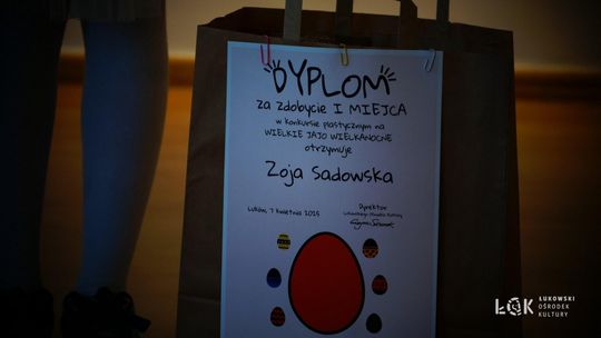 Dziękujemy jeszcze raz wszystkim uczestnikom za udział w plastycznych konkursach wielkanocnych. Gratulujemy wszystkim kreatywności i zaangażowania. Jednocześnie zapraszamy na mini wystawę prac pokonkursowych do Łukowskiego Ośrodka Kultury w dniach 8-16 kwietnia 2025 roku. Informujemy, że prace konkursowe „Wielkie Jajo Wielkanocne 2025" będzie można odebrać w dniach 23-25 kwietnia 2025 roku.