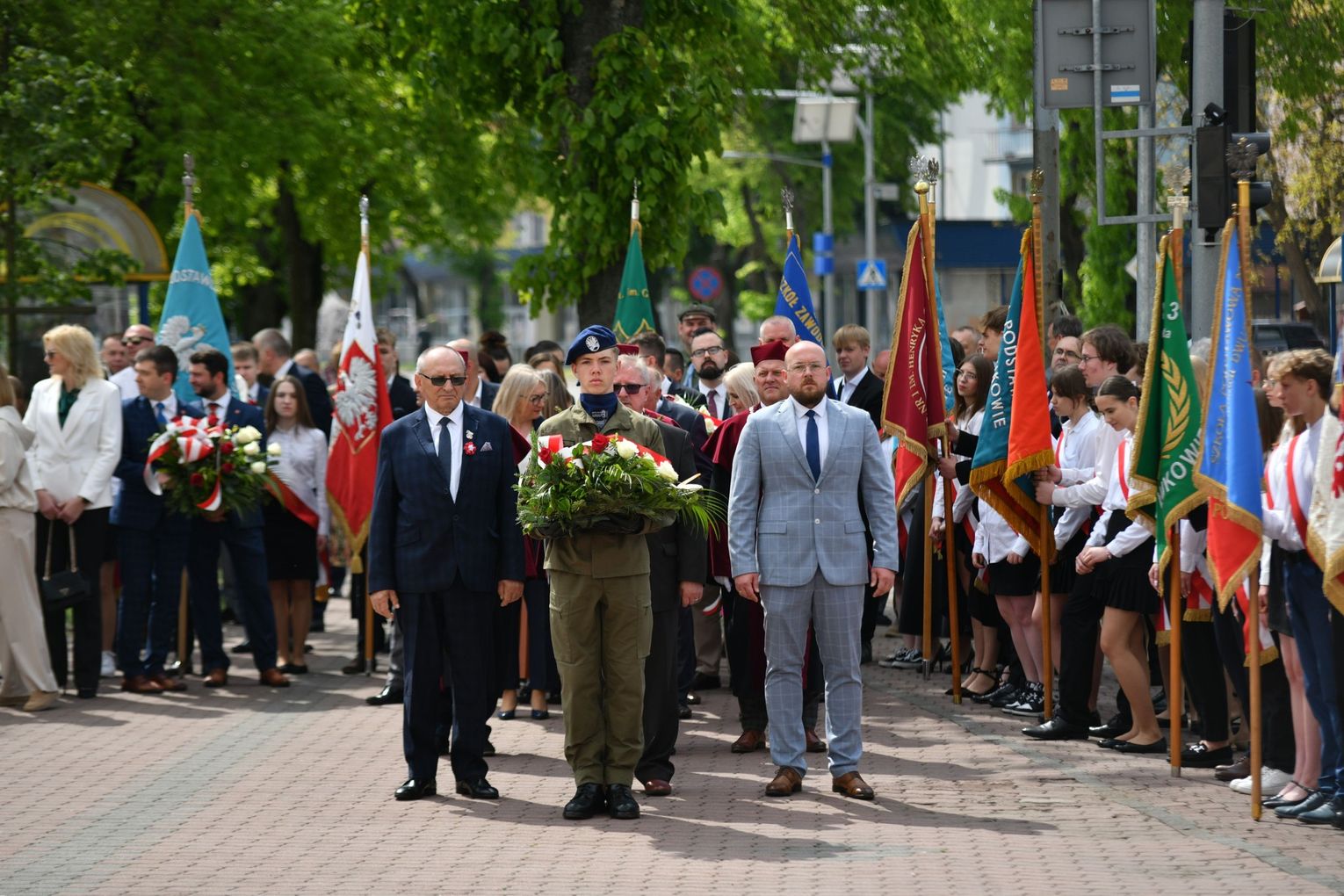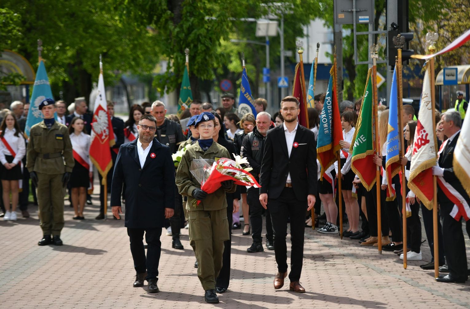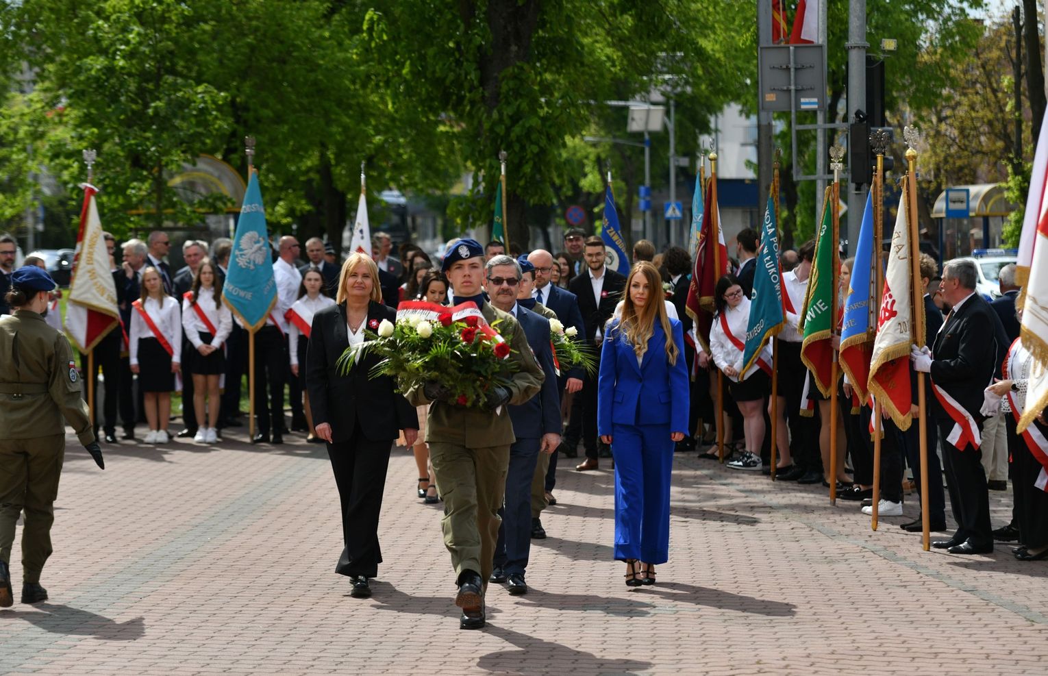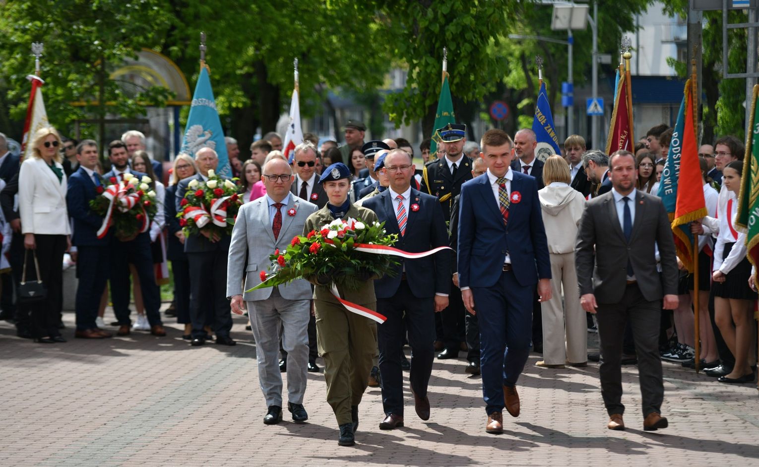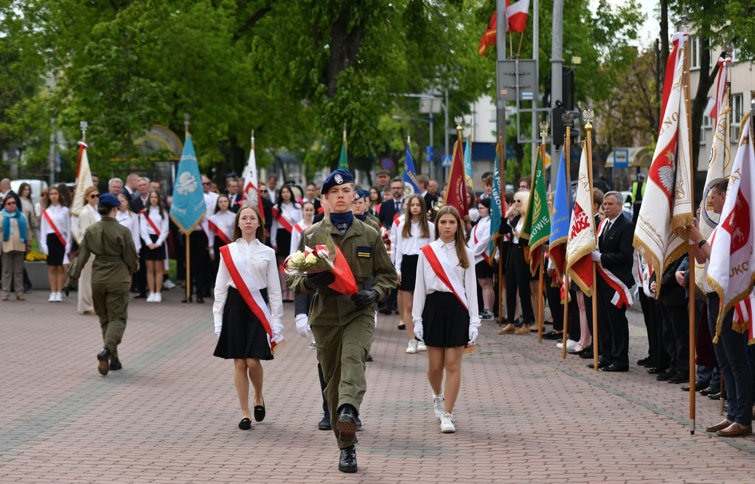 Wydarzenie rozpoczęła Msza Święta w Kolegiacie pw. Przemienienia Pańskiego, z udziałem pocztów sztandarowych instytucji i szkół z terenu Powiatu Łukowskiego. Dalsza część obchodów odbyła się pod tablicą upamiętniającą uchwalenie Konstytucji 3 Maja w Łukowie. Uroczystość rozpoczęła się przemówieniem Posła na Sejm Rzeczypospolitej Polskiej Sławomira Skwarka. Następnie listy okolicznościowe odczytali: w imieniu Marszałka Województwa Lubelskiego Jarosława Stawiarskiego – Radny Sejmiku Województwa Lubelskiego Ryszard Szczygieł oraz w imieniu Wojewody Lubelskiego Krzysztofa Komorskiego – Zastępca Burmistrza Miasta Łuków Mateusz Popławski. Okolicznościowe przemówienie w imieniu samorządu powiatowego, miejskiego i gminnego wygłosił Starosta Łukowski Dariusz Szustek. Kolejnym punktem uroczystości był pokaz musztry paradnej w wykonaniu kadetów klas mundurowych z Zespół Szkół im. Władysława Tatarkiewicza w Radoryżu Smolanym. Trenerem i dobrym duchem kadetów jest Daniel Sobczak. Zarząd Powiatu Łukowskiego postanowił nagrodzić reprezentacyjny oddział musztry paradnej z Zespołu Szkół im. Władysława Tatarkiewicza w Radoryżu Smolanym za aktywne uczestnictwo w prestiżowych konkursach o zasięgu ogólnopolskim oraz regularne zdobywanie czołowych lokat. W uznaniu tych osiągnięć oddział otrzymał od Zarządu Powiatu szablę reprezentacyjną. Ostatnim punktem uroczystości było złożenie kwiatów przed tablicą upamiętniającą uchwalenie Konstytucji 3 Maja w Łukowie znajdującej się na budynku Powiatowego Urzędu Pracy. Uroczystość uświetnił występ orkiestry dętej Towarzystwa Muzycznego im. Antoniego Próchniewicza w Łukowie pod batutą kapelmistrza Tadusza Bochmana. W ramach obchodów odbyły się również XXXII Łukowskie Uliczne Biegi 3 Maja pod honorowym patronatem Rady i Burmistrza Miasta Łuków. Niech żyje Konstytucja 3 Maja! Niech żyje Polska!