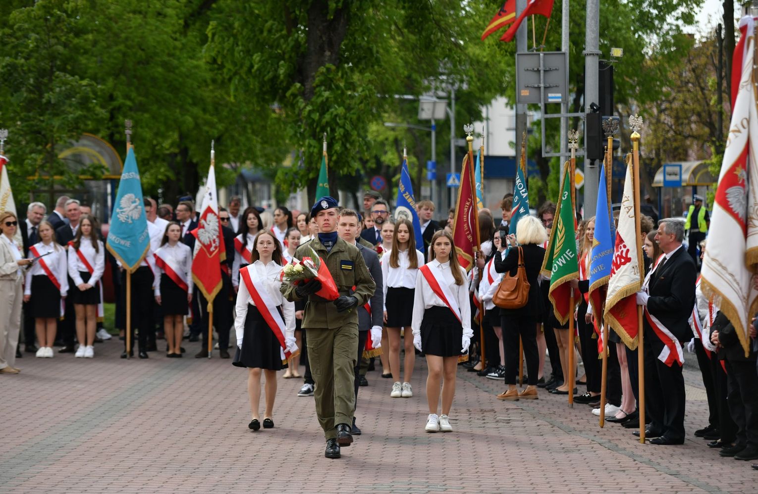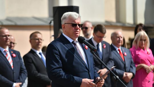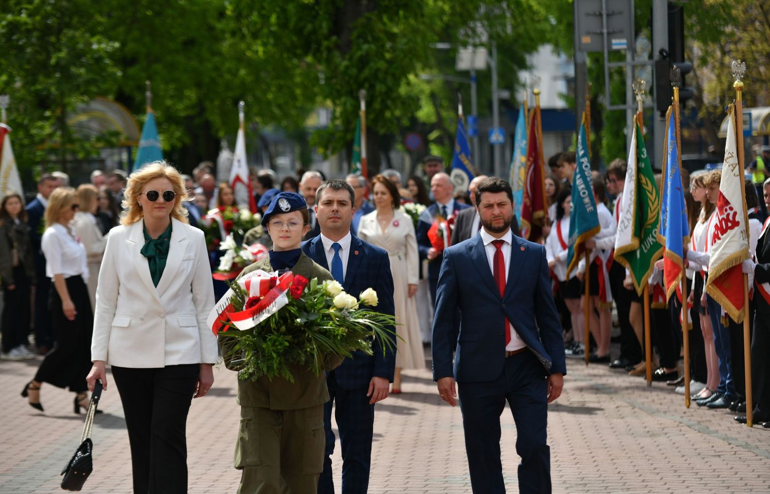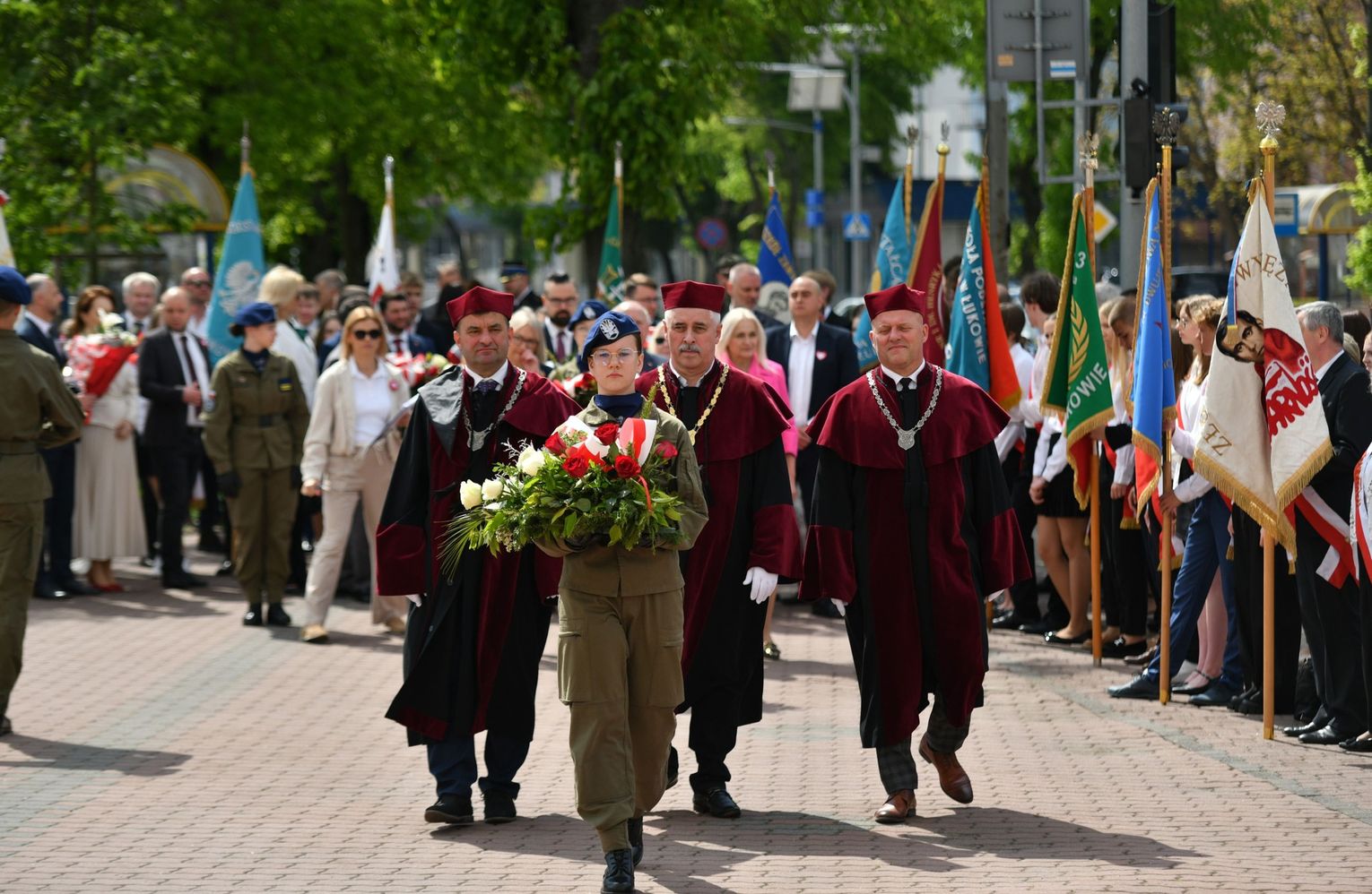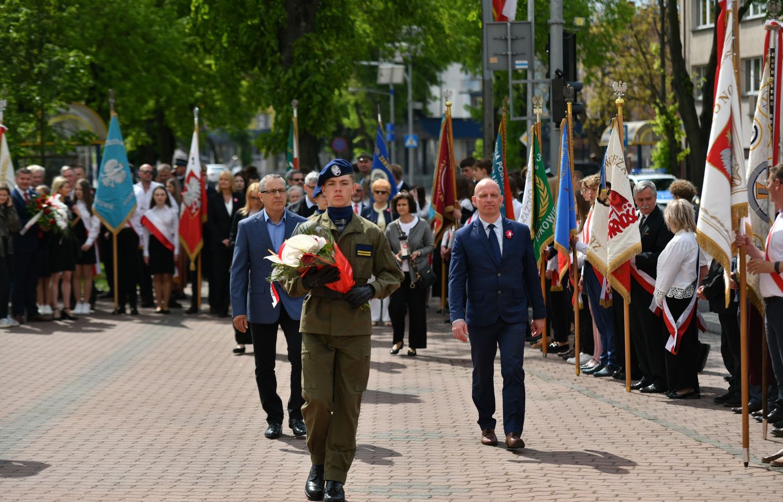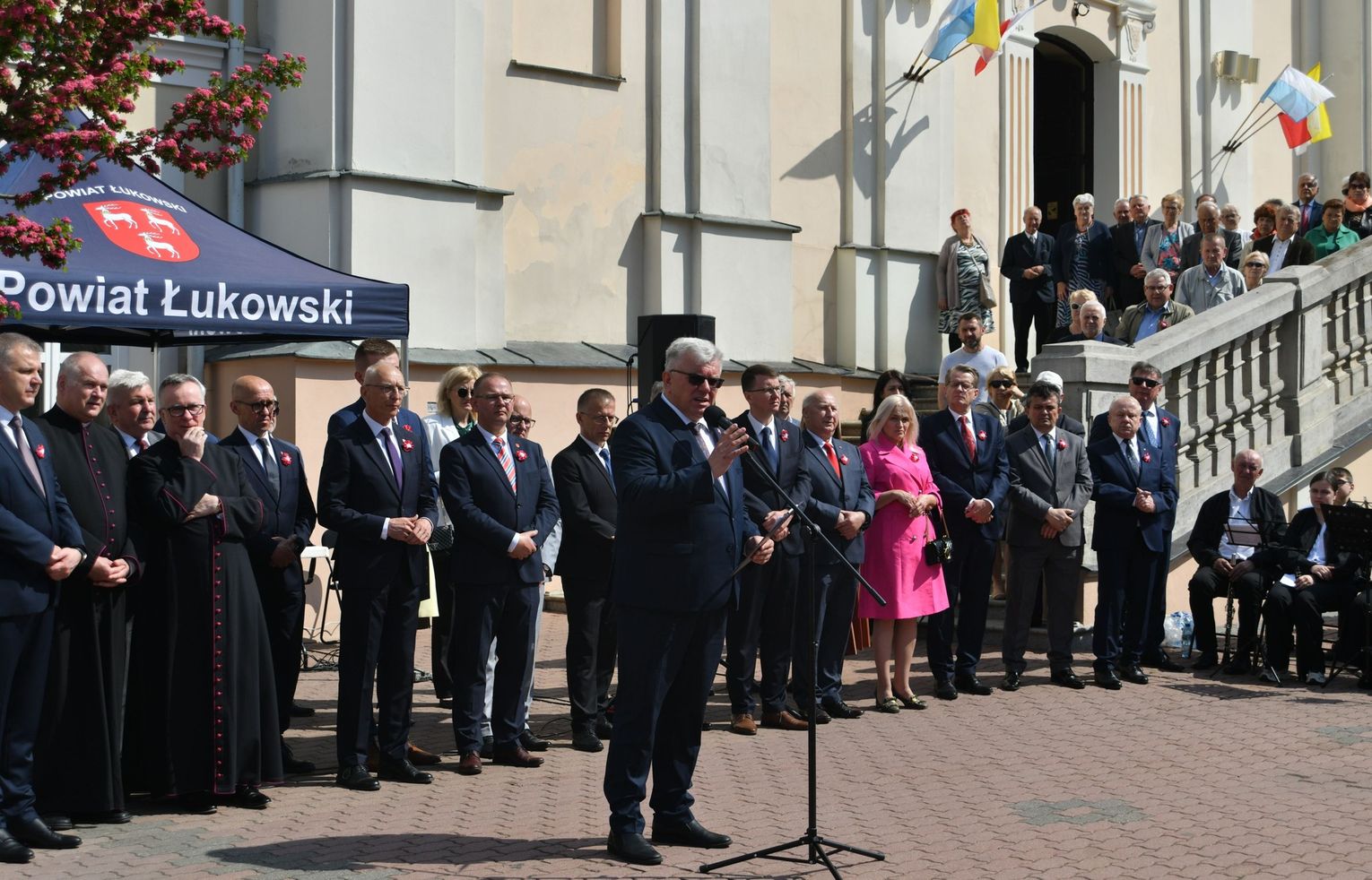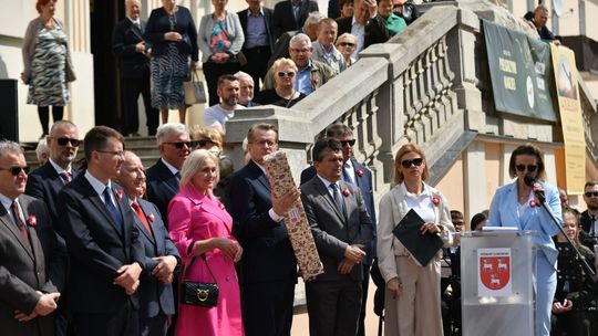 Wydarzenie rozpoczęła Msza Święta w Kolegiacie pw. Przemienienia Pańskiego, z udziałem pocztów sztandarowych instytucji i szkół z terenu Powiatu Łukowskiego. Dalsza część obchodów odbyła się pod tablicą upamiętniającą uchwalenie Konstytucji 3 Maja w Łukowie. Uroczystość rozpoczęła się przemówieniem Posła na Sejm Rzeczypospolitej Polskiej Sławomira Skwarka. Następnie listy okolicznościowe odczytali: w imieniu Marszałka Województwa Lubelskiego Jarosława Stawiarskiego – Radny Sejmiku Województwa Lubelskiego Ryszard Szczygieł oraz w imieniu Wojewody Lubelskiego Krzysztofa Komorskiego – Zastępca Burmistrza Miasta Łuków Mateusz Popławski. Okolicznościowe przemówienie w imieniu samorządu powiatowego, miejskiego i gminnego wygłosił Starosta Łukowski Dariusz Szustek. Kolejnym punktem uroczystości był pokaz musztry paradnej w wykonaniu kadetów klas mundurowych z Zespół Szkół im. Władysława Tatarkiewicza w Radoryżu Smolanym. Trenerem i dobrym duchem kadetów jest Daniel Sobczak. Zarząd Powiatu Łukowskiego postanowił nagrodzić reprezentacyjny oddział musztry paradnej z Zespołu Szkół im. Władysława Tatarkiewicza w Radoryżu Smolanym za aktywne uczestnictwo w prestiżowych konkursach o zasięgu ogólnopolskim oraz regularne zdobywanie czołowych lokat. W uznaniu tych osiągnięć oddział otrzymał od Zarządu Powiatu szablę reprezentacyjną. Ostatnim punktem uroczystości było złożenie kwiatów przed tablicą upamiętniającą uchwalenie Konstytucji 3 Maja w Łukowie znajdującej się na budynku Powiatowego Urzędu Pracy. Uroczystość uświetnił występ orkiestry dętej Towarzystwa Muzycznego im. Antoniego Próchniewicza w Łukowie pod batutą kapelmistrza Tadusza Bochmana. W ramach obchodów odbyły się również XXXII Łukowskie Uliczne Biegi 3 Maja pod honorowym patronatem Rady i Burmistrza Miasta Łuków. Niech żyje Konstytucja 3 Maja! Niech żyje Polska!