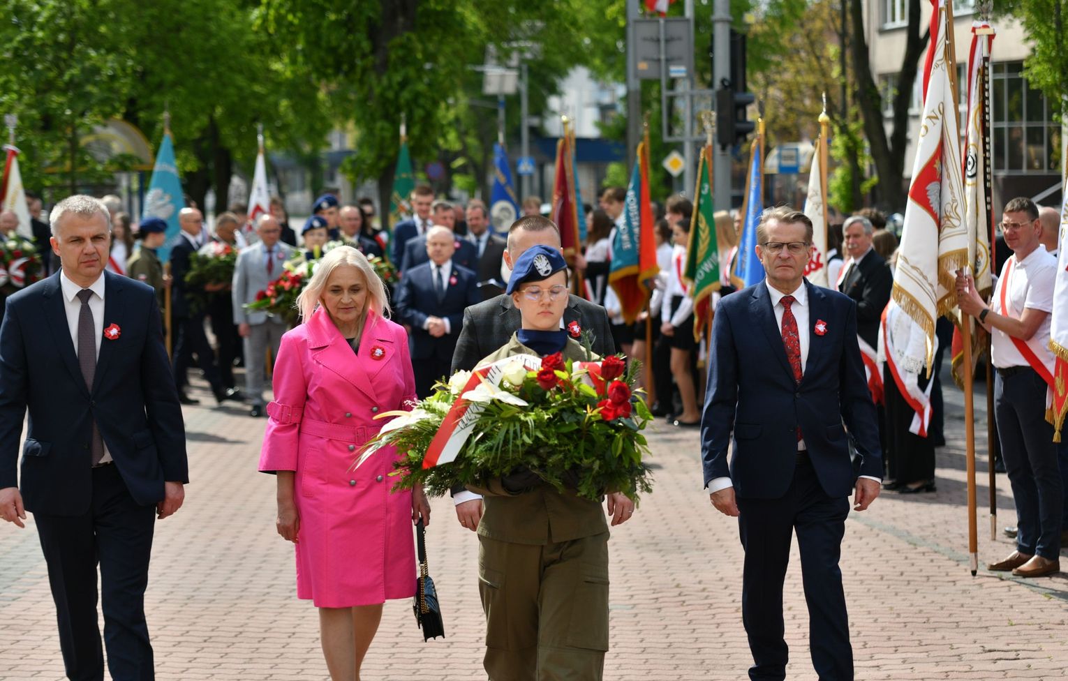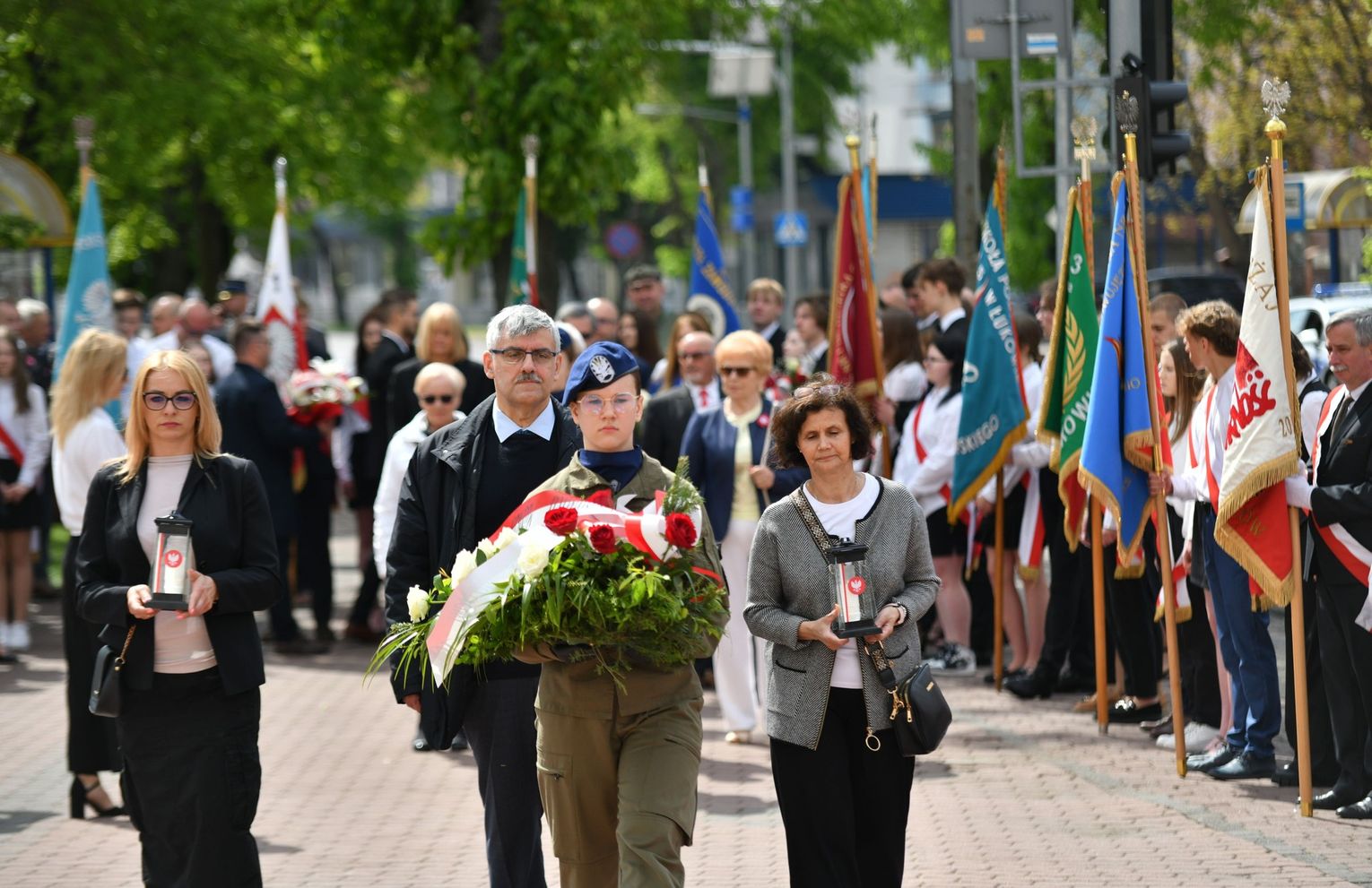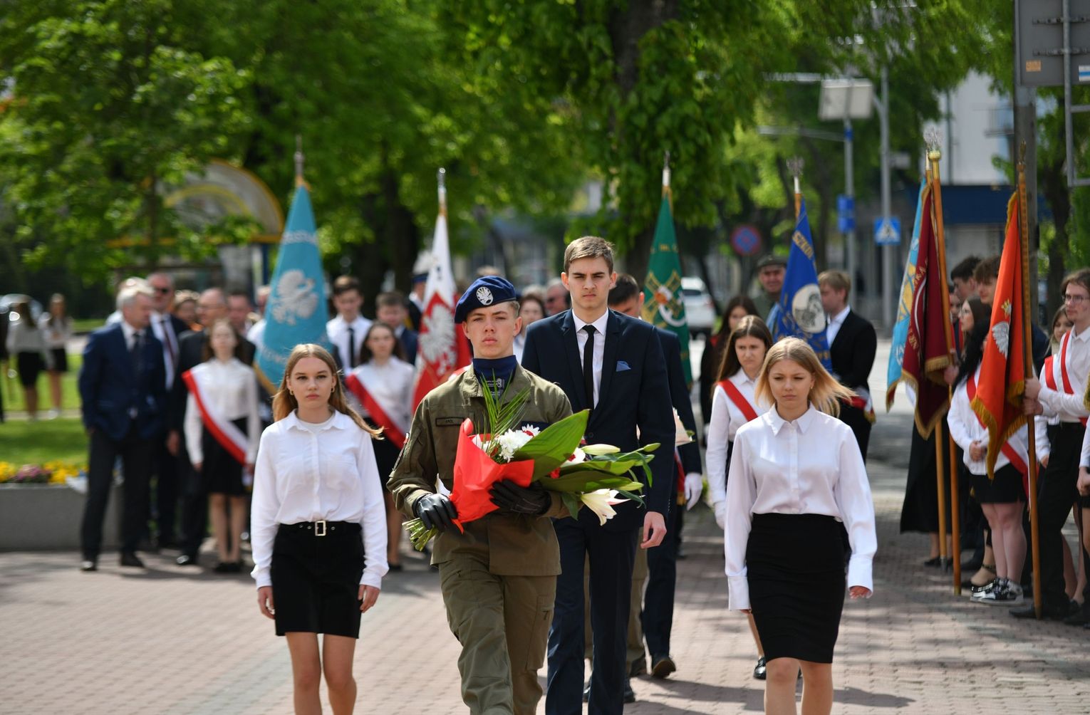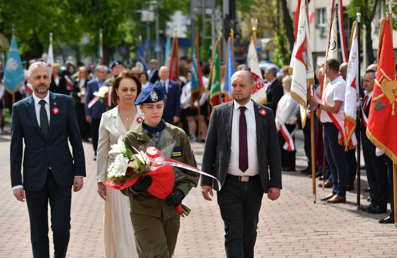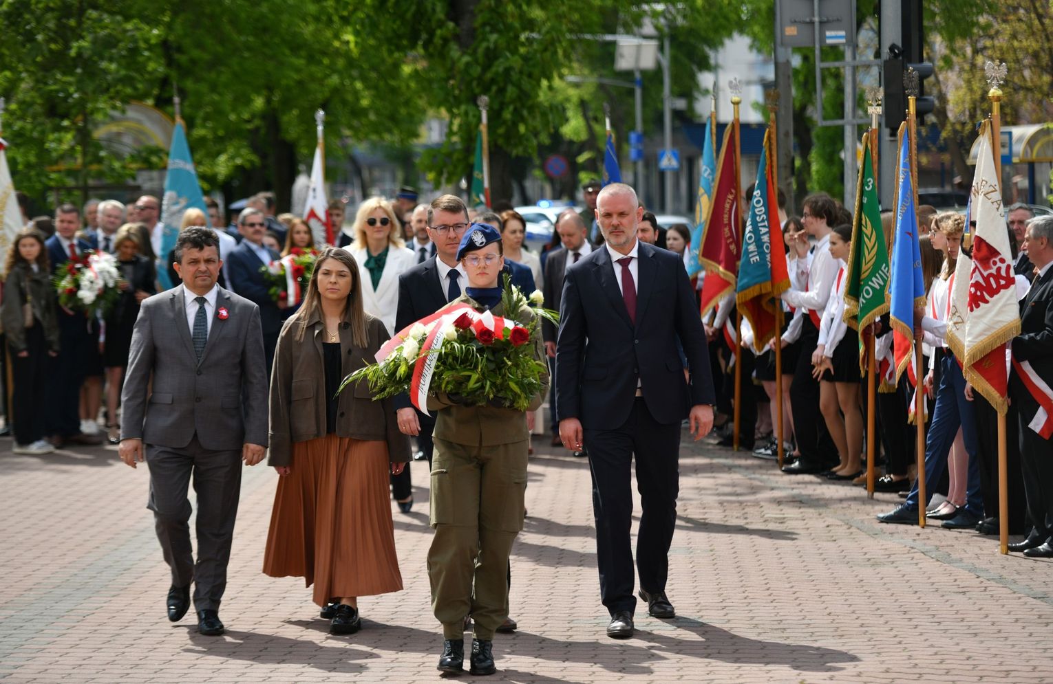 Wydarzenie rozpoczęła Msza Święta w Kolegiacie pw. Przemienienia Pańskiego, z udziałem pocztów sztandarowych instytucji i szkół z terenu Powiatu Łukowskiego. Dalsza część obchodów odbyła się pod tablicą upamiętniającą uchwalenie Konstytucji 3 Maja w Łukowie. Uroczystość rozpoczęła się przemówieniem Posła na Sejm Rzeczypospolitej Polskiej Sławomira Skwarka. Następnie listy okolicznościowe odczytali: w imieniu Marszałka Województwa Lubelskiego Jarosława Stawiarskiego – Radny Sejmiku Województwa Lubelskiego Ryszard Szczygieł oraz w imieniu Wojewody Lubelskiego Krzysztofa Komorskiego – Zastępca Burmistrza Miasta Łuków Mateusz Popławski. Okolicznościowe przemówienie w imieniu samorządu powiatowego, miejskiego i gminnego wygłosił Starosta Łukowski Dariusz Szustek. Kolejnym punktem uroczystości był pokaz musztry paradnej w wykonaniu kadetów klas mundurowych z Zespół Szkół im. Władysława Tatarkiewicza w Radoryżu Smolanym. Trenerem i dobrym duchem kadetów jest Daniel Sobczak. Zarząd Powiatu Łukowskiego postanowił nagrodzić reprezentacyjny oddział musztry paradnej z Zespołu Szkół im. Władysława Tatarkiewicza w Radoryżu Smolanym za aktywne uczestnictwo w prestiżowych konkursach o zasięgu ogólnopolskim oraz regularne zdobywanie czołowych lokat. W uznaniu tych osiągnięć oddział otrzymał od Zarządu Powiatu szablę reprezentacyjną. Ostatnim punktem uroczystości było złożenie kwiatów przed tablicą upamiętniającą uchwalenie Konstytucji 3 Maja w Łukowie znajdującej się na budynku Powiatowego Urzędu Pracy. Uroczystość uświetnił występ orkiestry dętej Towarzystwa Muzycznego im. Antoniego Próchniewicza w Łukowie pod batutą kapelmistrza Tadusza Bochmana. W ramach obchodów odbyły się również XXXII Łukowskie Uliczne Biegi 3 Maja pod honorowym patronatem Rady i Burmistrza Miasta Łuków. Niech żyje Konstytucja 3 Maja! Niech żyje Polska!