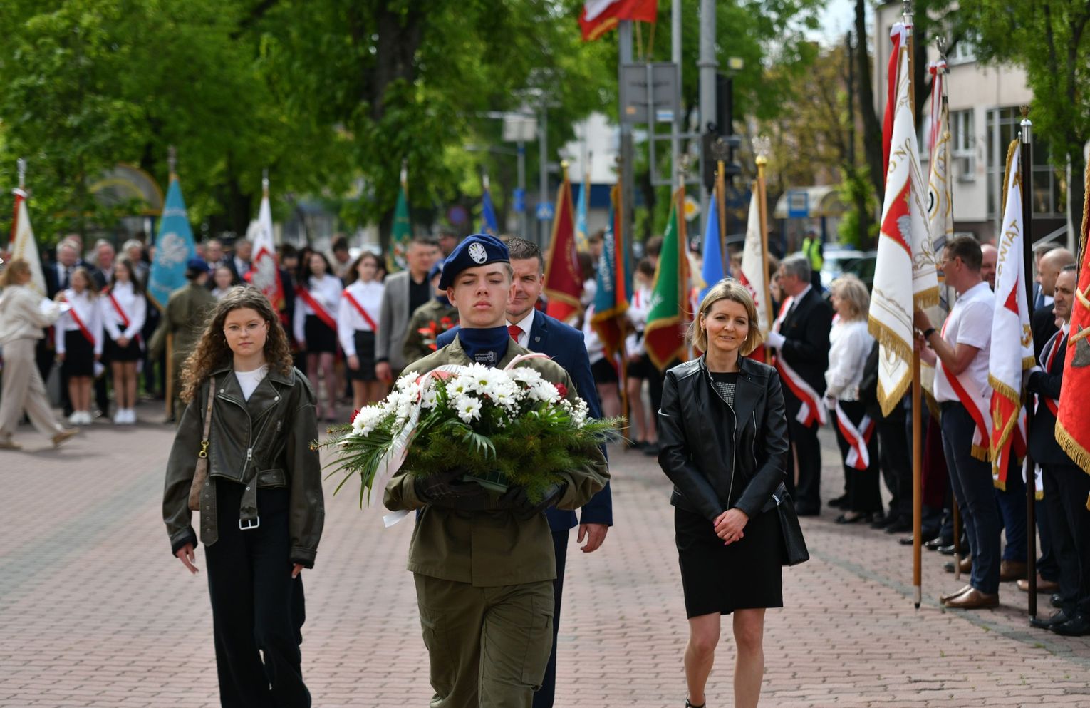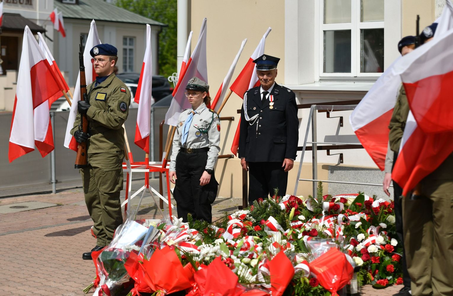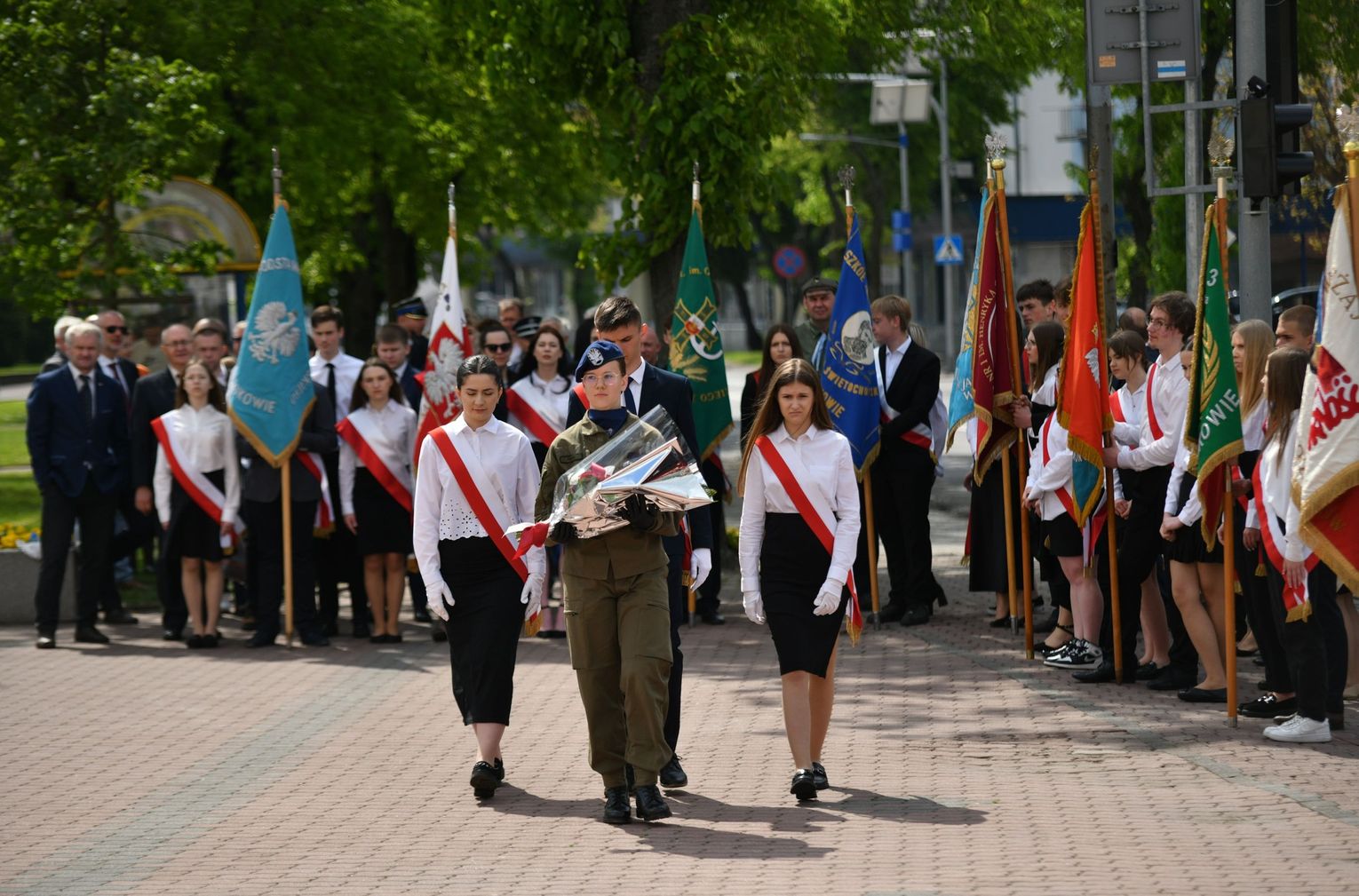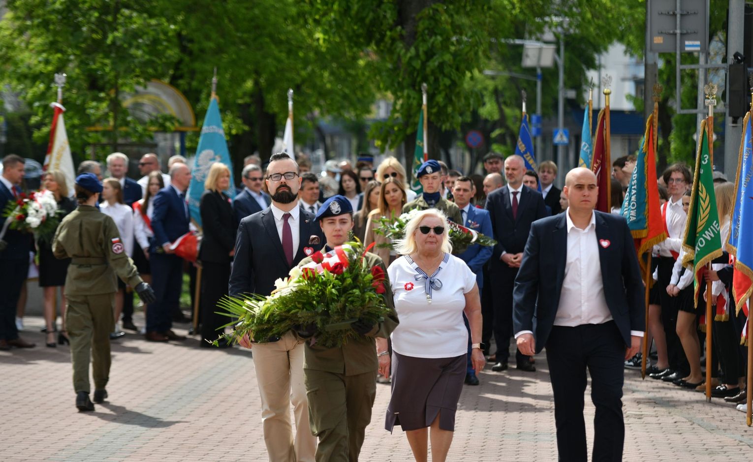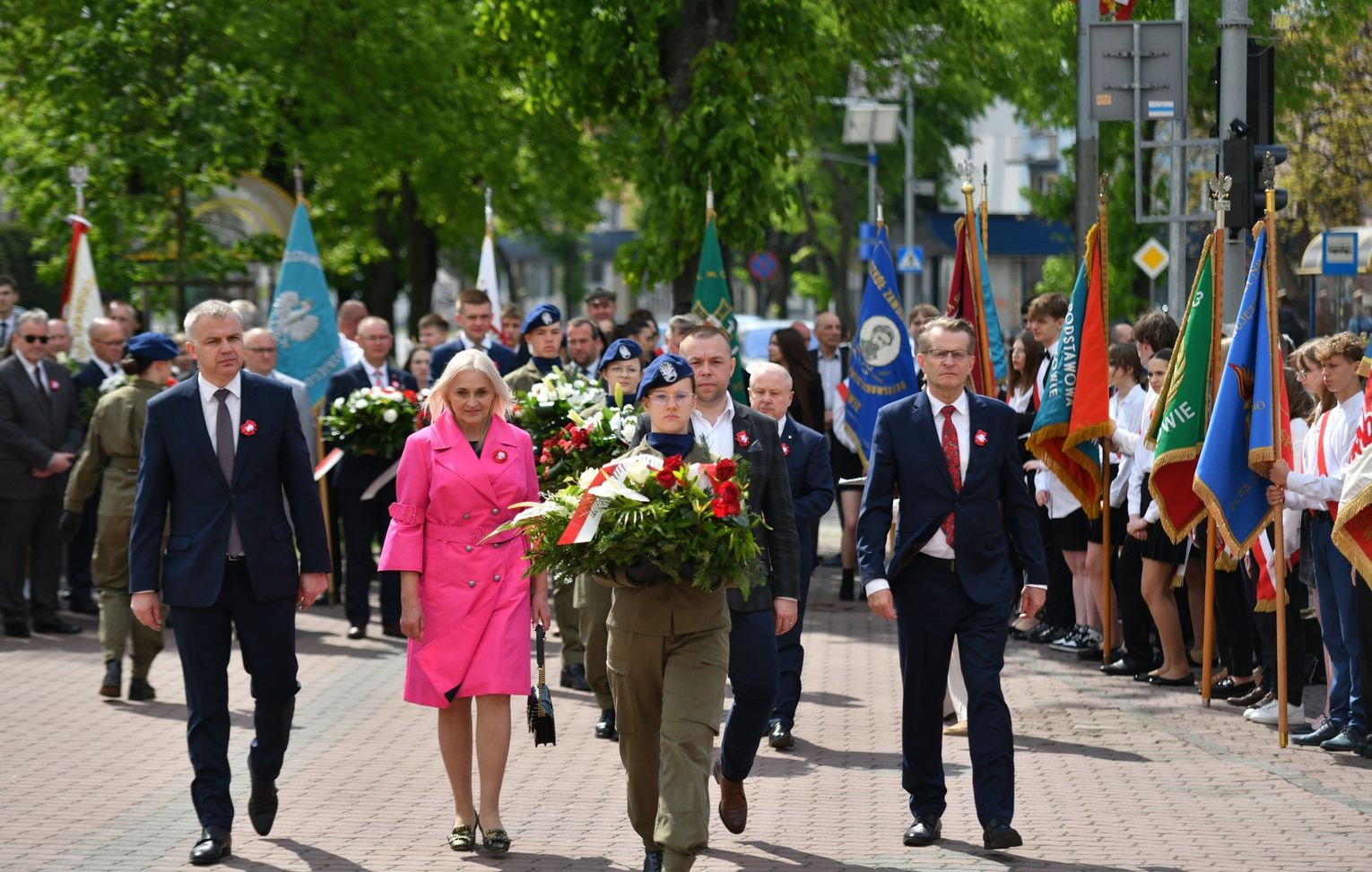 Wydarzenie rozpoczęła Msza Święta w Kolegiacie pw. Przemienienia Pańskiego, z udziałem pocztów sztandarowych instytucji i szkół z terenu Powiatu Łukowskiego. Dalsza część obchodów odbyła się pod tablicą upamiętniającą uchwalenie Konstytucji 3 Maja w Łukowie. Uroczystość rozpoczęła się przemówieniem Posła na Sejm Rzeczypospolitej Polskiej Sławomira Skwarka. Następnie listy okolicznościowe odczytali: w imieniu Marszałka Województwa Lubelskiego Jarosława Stawiarskiego – Radny Sejmiku Województwa Lubelskiego Ryszard Szczygieł oraz w imieniu Wojewody Lubelskiego Krzysztofa Komorskiego – Zastępca Burmistrza Miasta Łuków Mateusz Popławski. Okolicznościowe przemówienie w imieniu samorządu powiatowego, miejskiego i gminnego wygłosił Starosta Łukowski Dariusz Szustek. Kolejnym punktem uroczystości był pokaz musztry paradnej w wykonaniu kadetów klas mundurowych z Zespół Szkół im. Władysława Tatarkiewicza w Radoryżu Smolanym. Trenerem i dobrym duchem kadetów jest Daniel Sobczak. Zarząd Powiatu Łukowskiego postanowił nagrodzić reprezentacyjny oddział musztry paradnej z Zespołu Szkół im. Władysława Tatarkiewicza w Radoryżu Smolanym za aktywne uczestnictwo w prestiżowych konkursach o zasięgu ogólnopolskim oraz regularne zdobywanie czołowych lokat. W uznaniu tych osiągnięć oddział otrzymał od Zarządu Powiatu szablę reprezentacyjną. Ostatnim punktem uroczystości było złożenie kwiatów przed tablicą upamiętniającą uchwalenie Konstytucji 3 Maja w Łukowie znajdującej się na budynku Powiatowego Urzędu Pracy. Uroczystość uświetnił występ orkiestry dętej Towarzystwa Muzycznego im. Antoniego Próchniewicza w Łukowie pod batutą kapelmistrza Tadusza Bochmana. W ramach obchodów odbyły się również XXXII Łukowskie Uliczne Biegi 3 Maja pod honorowym patronatem Rady i Burmistrza Miasta Łuków. Niech żyje Konstytucja 3 Maja! Niech żyje Polska!