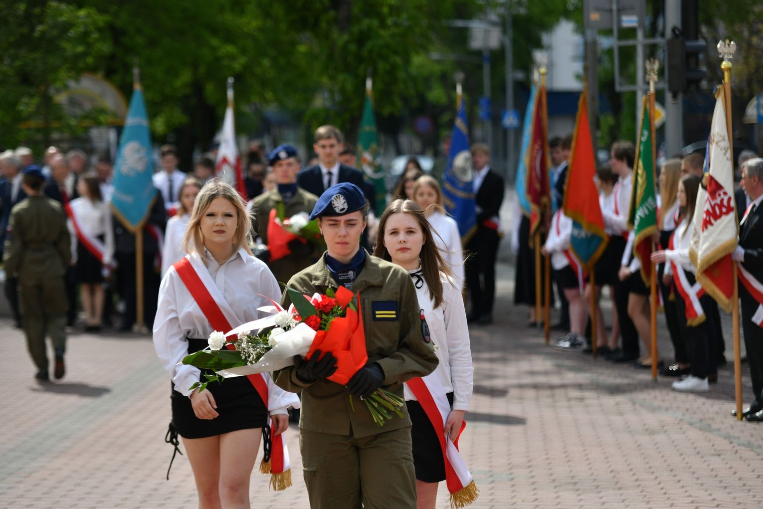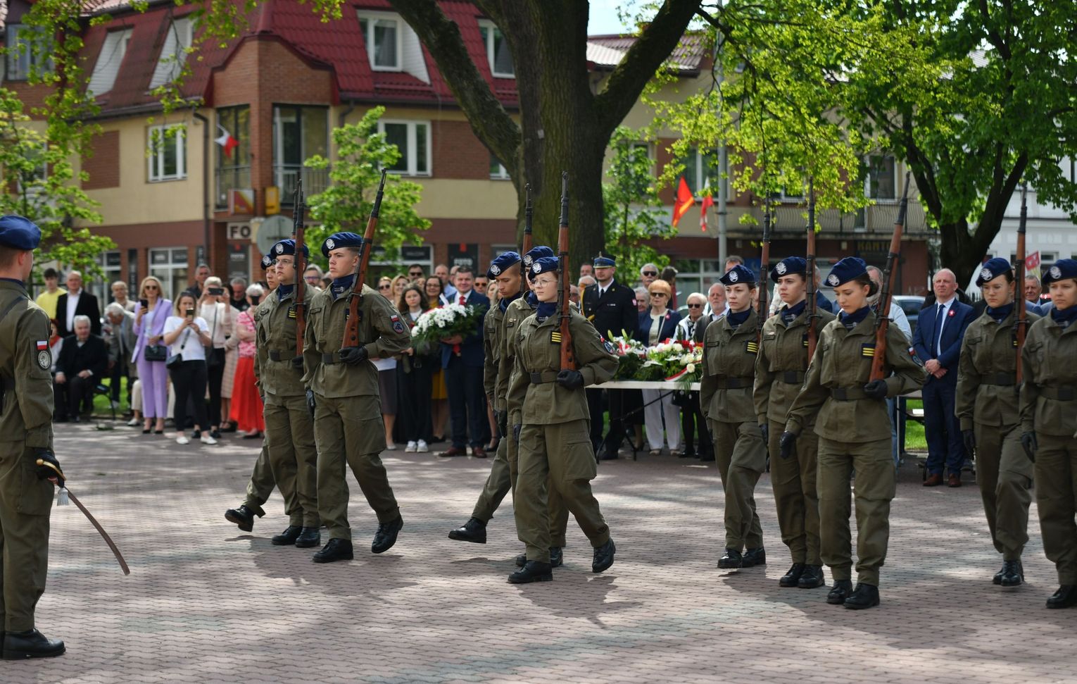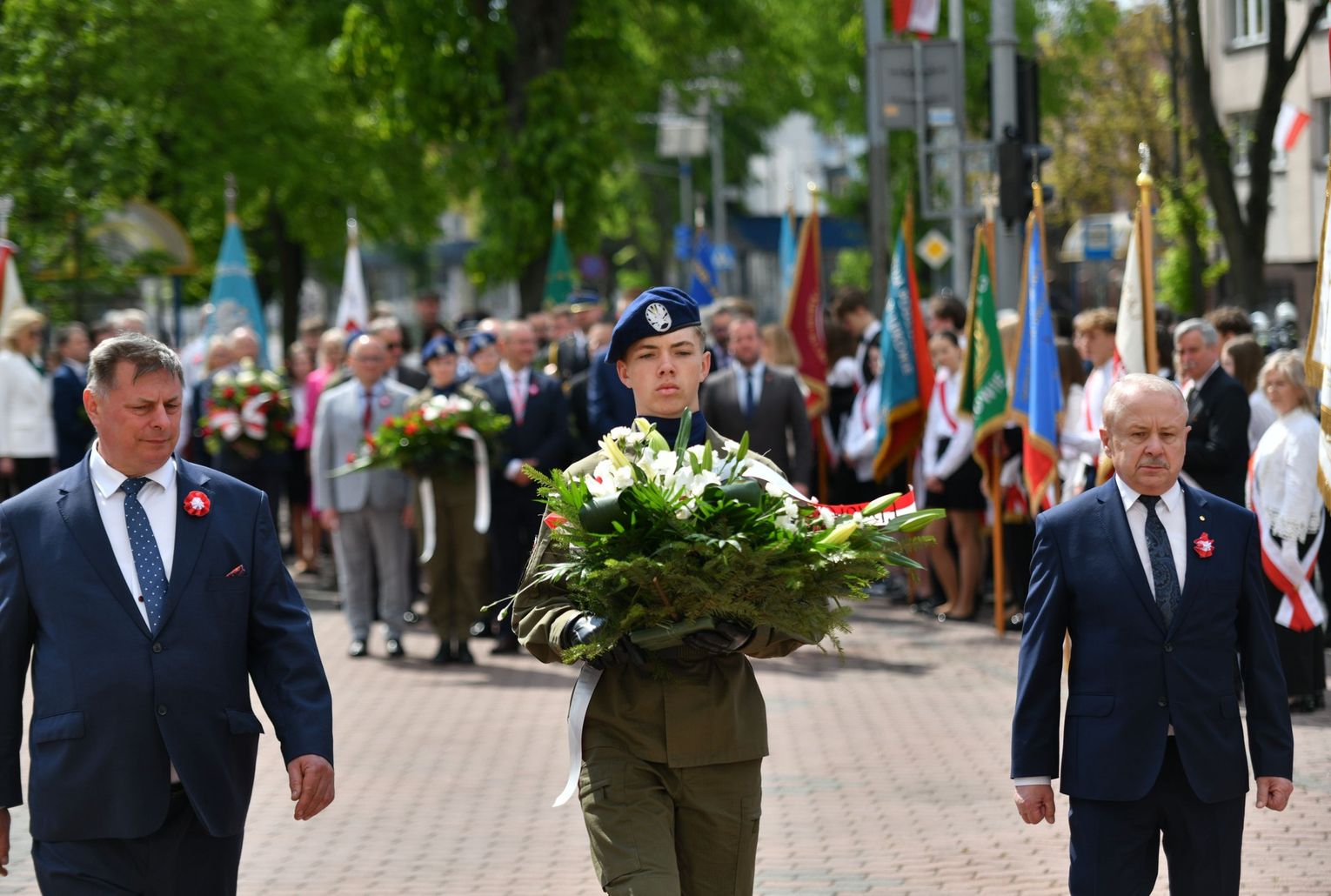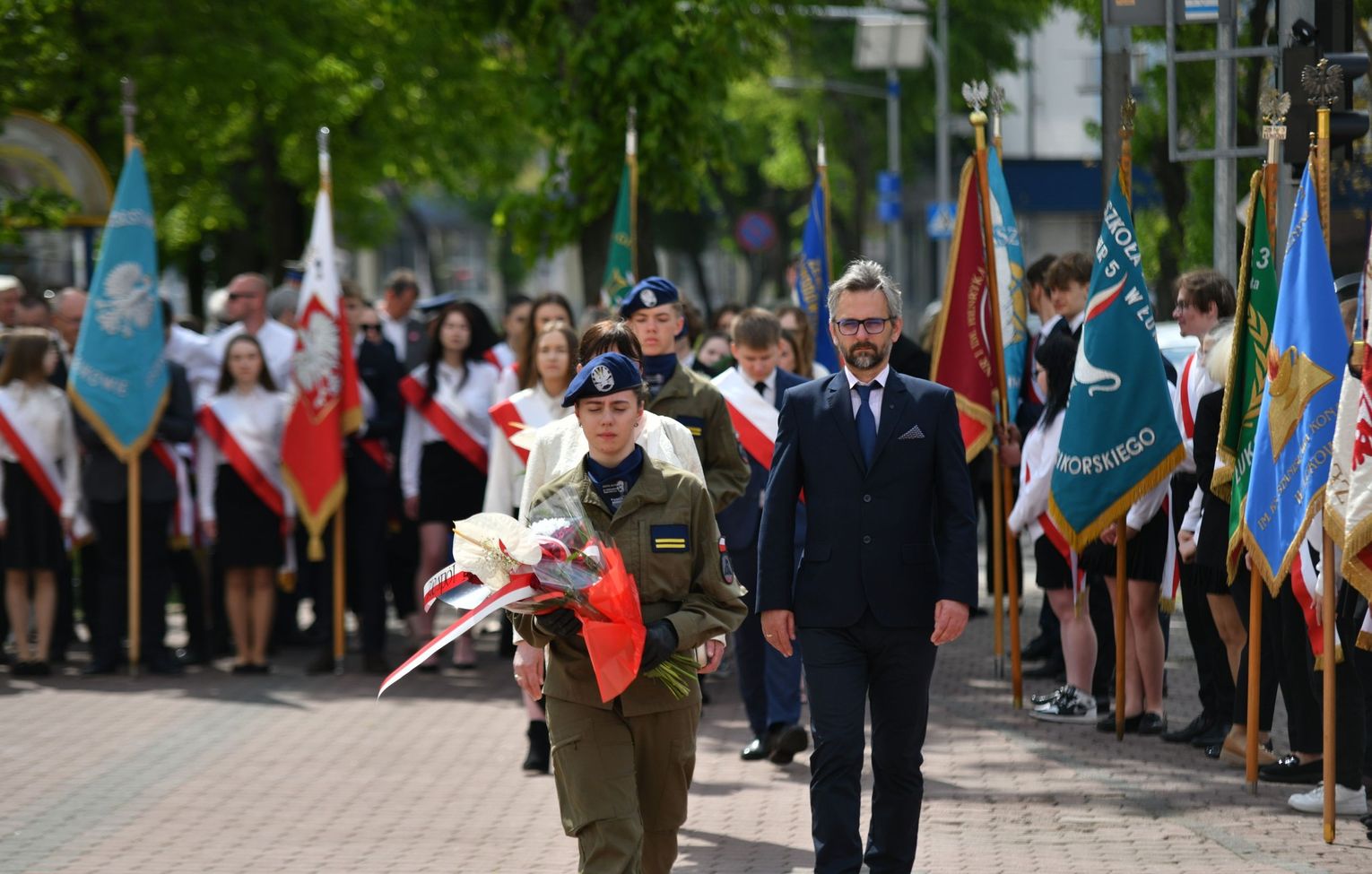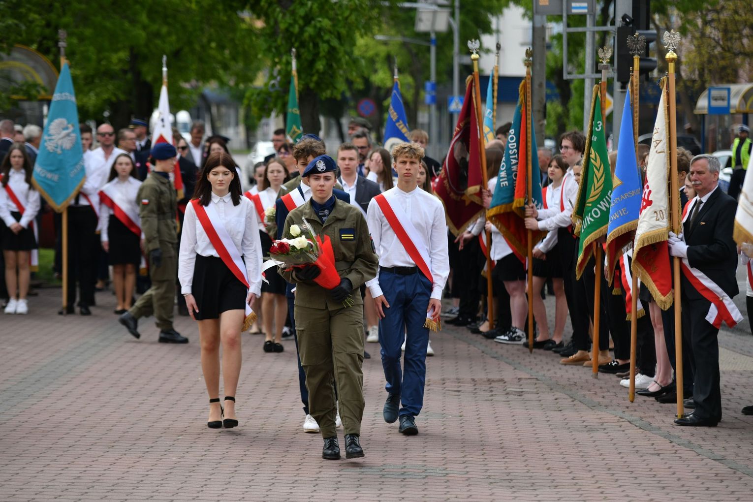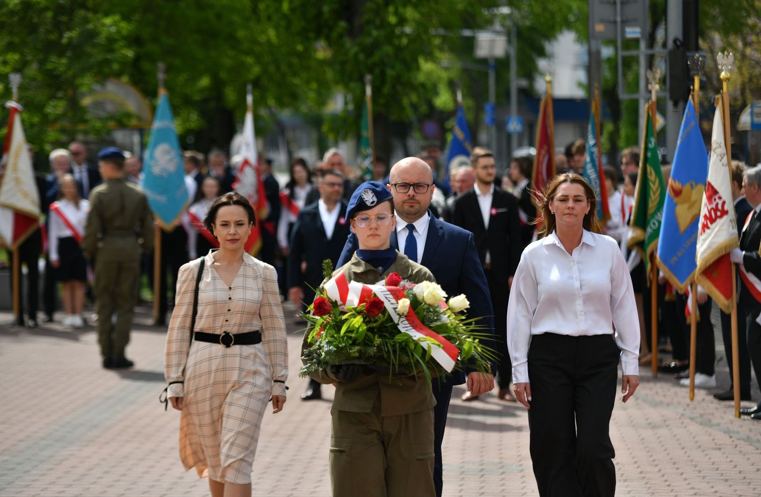 Wydarzenie rozpoczęła Msza Święta w Kolegiacie pw. Przemienienia Pańskiego, z udziałem pocztów sztandarowych instytucji i szkół z terenu Powiatu Łukowskiego. Dalsza część obchodów odbyła się pod tablicą upamiętniającą uchwalenie Konstytucji 3 Maja w Łukowie. Uroczystość rozpoczęła się przemówieniem Posła na Sejm Rzeczypospolitej Polskiej Sławomira Skwarka. Następnie listy okolicznościowe odczytali: w imieniu Marszałka Województwa Lubelskiego Jarosława Stawiarskiego – Radny Sejmiku Województwa Lubelskiego Ryszard Szczygieł oraz w imieniu Wojewody Lubelskiego Krzysztofa Komorskiego – Zastępca Burmistrza Miasta Łuków Mateusz Popławski. Okolicznościowe przemówienie w imieniu samorządu powiatowego, miejskiego i gminnego wygłosił Starosta Łukowski Dariusz Szustek. Kolejnym punktem uroczystości był pokaz musztry paradnej w wykonaniu kadetów klas mundurowych z Zespół Szkół im. Władysława Tatarkiewicza w Radoryżu Smolanym. Trenerem i dobrym duchem kadetów jest Daniel Sobczak. Zarząd Powiatu Łukowskiego postanowił nagrodzić reprezentacyjny oddział musztry paradnej z Zespołu Szkół im. Władysława Tatarkiewicza w Radoryżu Smolanym za aktywne uczestnictwo w prestiżowych konkursach o zasięgu ogólnopolskim oraz regularne zdobywanie czołowych lokat. W uznaniu tych osiągnięć oddział otrzymał od Zarządu Powiatu szablę reprezentacyjną. Ostatnim punktem uroczystości było złożenie kwiatów przed tablicą upamiętniającą uchwalenie Konstytucji 3 Maja w Łukowie znajdującej się na budynku Powiatowego Urzędu Pracy. Uroczystość uświetnił występ orkiestry dętej Towarzystwa Muzycznego im. Antoniego Próchniewicza w Łukowie pod batutą kapelmistrza Tadusza Bochmana. W ramach obchodów odbyły się również XXXII Łukowskie Uliczne Biegi 3 Maja pod honorowym patronatem Rady i Burmistrza Miasta Łuków. Niech żyje Konstytucja 3 Maja! Niech żyje Polska!
