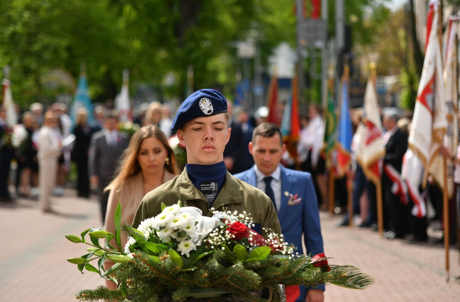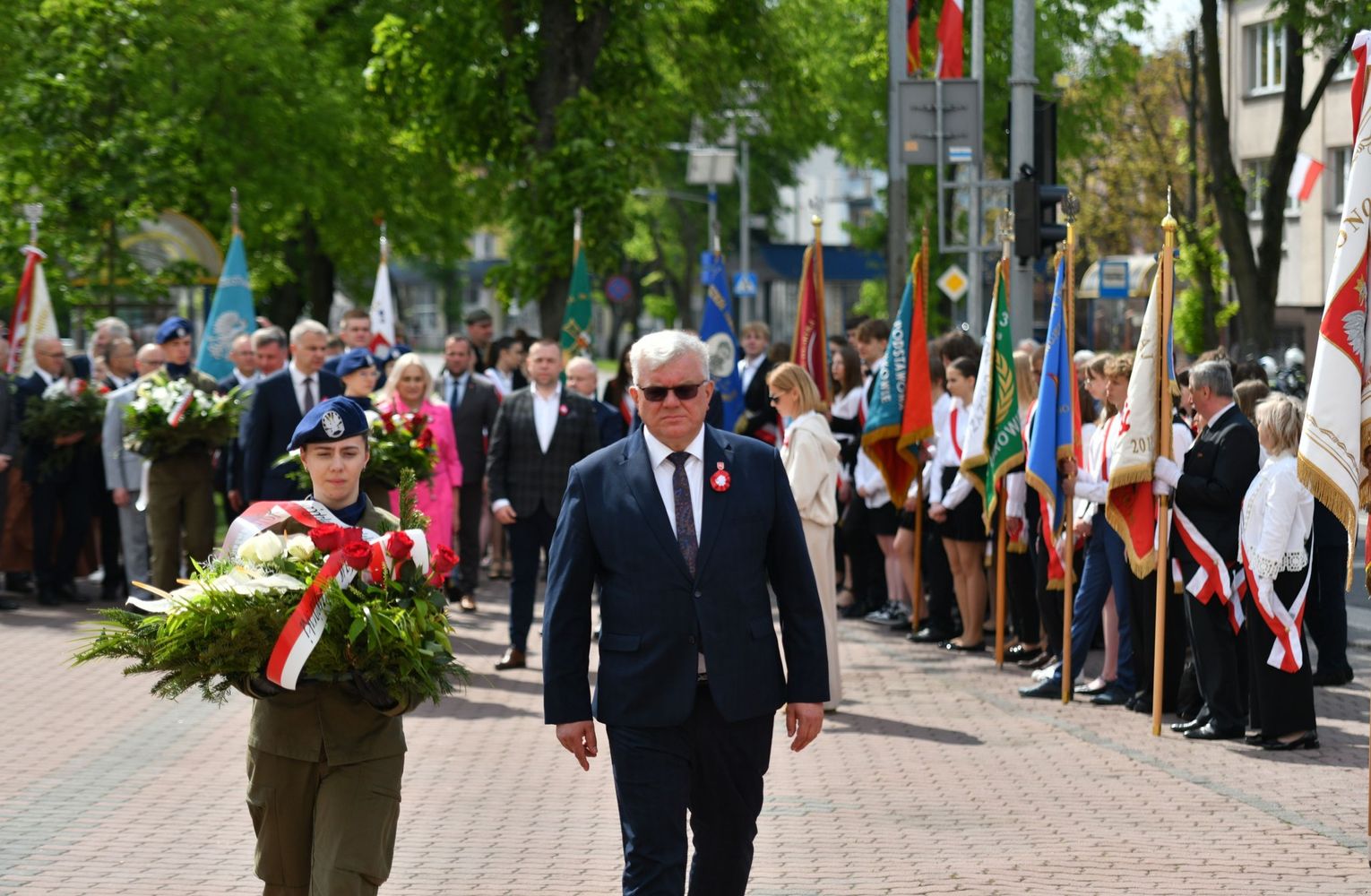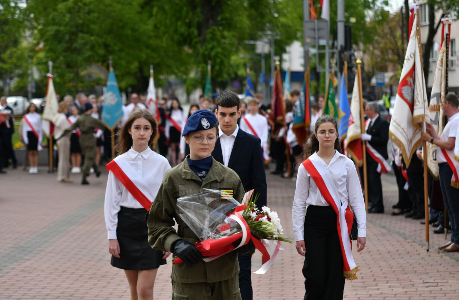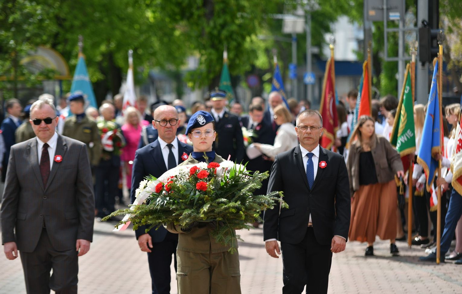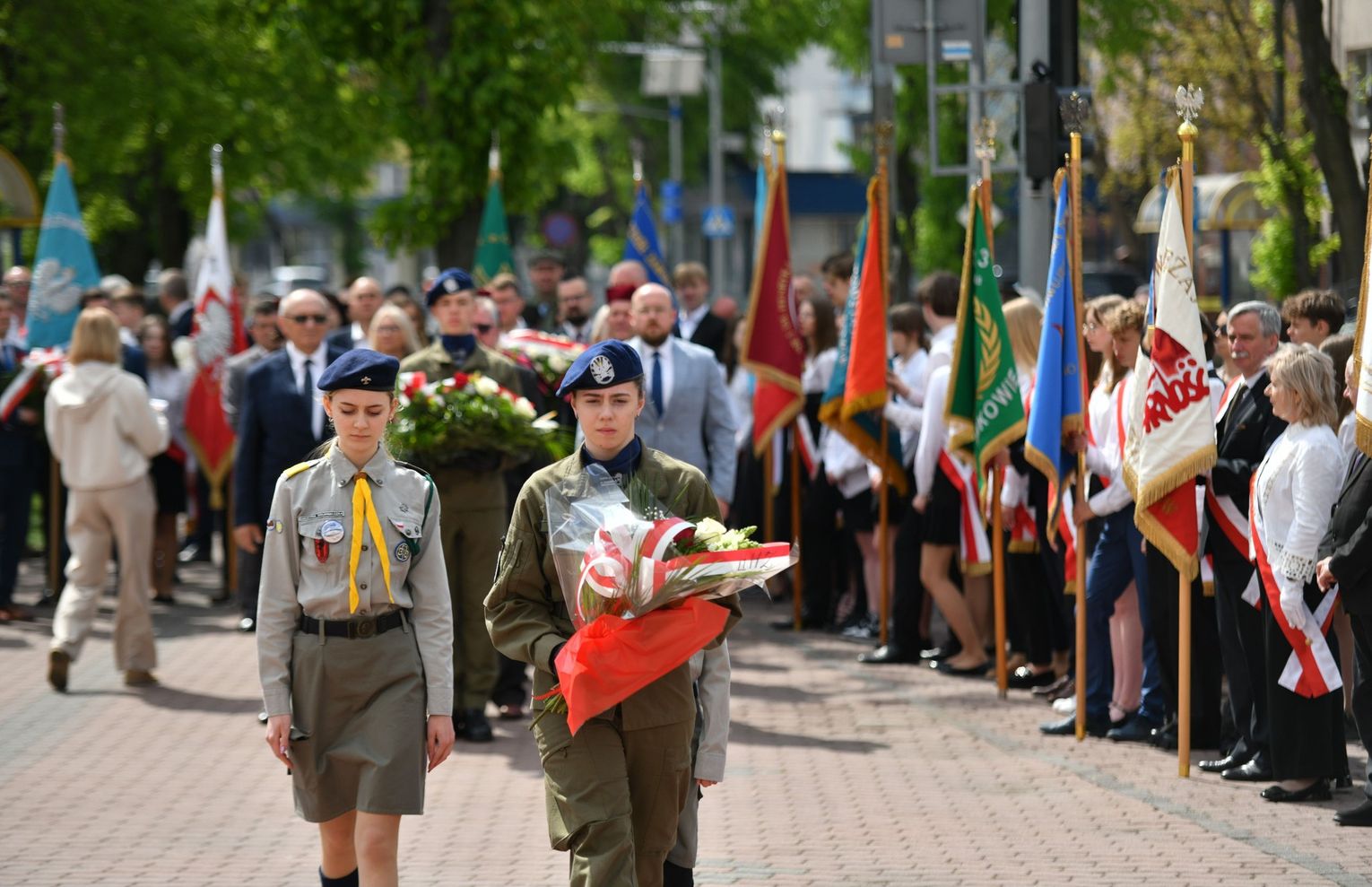 Wydarzenie rozpoczęła Msza Święta w Kolegiacie pw. Przemienienia Pańskiego, z udziałem pocztów sztandarowych instytucji i szkół z terenu Powiatu Łukowskiego. Dalsza część obchodów odbyła się pod tablicą upamiętniającą uchwalenie Konstytucji 3 Maja w Łukowie. Uroczystość rozpoczęła się przemówieniem Posła na Sejm Rzeczypospolitej Polskiej Sławomira Skwarka. Następnie listy okolicznościowe odczytali: w imieniu Marszałka Województwa Lubelskiego Jarosława Stawiarskiego – Radny Sejmiku Województwa Lubelskiego Ryszard Szczygieł oraz w imieniu Wojewody Lubelskiego Krzysztofa Komorskiego – Zastępca Burmistrza Miasta Łuków Mateusz Popławski. Okolicznościowe przemówienie w imieniu samorządu powiatowego, miejskiego i gminnego wygłosił Starosta Łukowski Dariusz Szustek. Kolejnym punktem uroczystości był pokaz musztry paradnej w wykonaniu kadetów klas mundurowych z Zespół Szkół im. Władysława Tatarkiewicza w Radoryżu Smolanym. Trenerem i dobrym duchem kadetów jest Daniel Sobczak. Zarząd Powiatu Łukowskiego postanowił nagrodzić reprezentacyjny oddział musztry paradnej z Zespołu Szkół im. Władysława Tatarkiewicza w Radoryżu Smolanym za aktywne uczestnictwo w prestiżowych konkursach o zasięgu ogólnopolskim oraz regularne zdobywanie czołowych lokat. W uznaniu tych osiągnięć oddział otrzymał od Zarządu Powiatu szablę reprezentacyjną. Ostatnim punktem uroczystości było złożenie kwiatów przed tablicą upamiętniającą uchwalenie Konstytucji 3 Maja w Łukowie znajdującej się na budynku Powiatowego Urzędu Pracy. Uroczystość uświetnił występ orkiestry dętej Towarzystwa Muzycznego im. Antoniego Próchniewicza w Łukowie pod batutą kapelmistrza Tadusza Bochmana. W ramach obchodów odbyły się również XXXII Łukowskie Uliczne Biegi 3 Maja pod honorowym patronatem Rady i Burmistrza Miasta Łuków. Niech żyje Konstytucja 3 Maja! Niech żyje Polska!