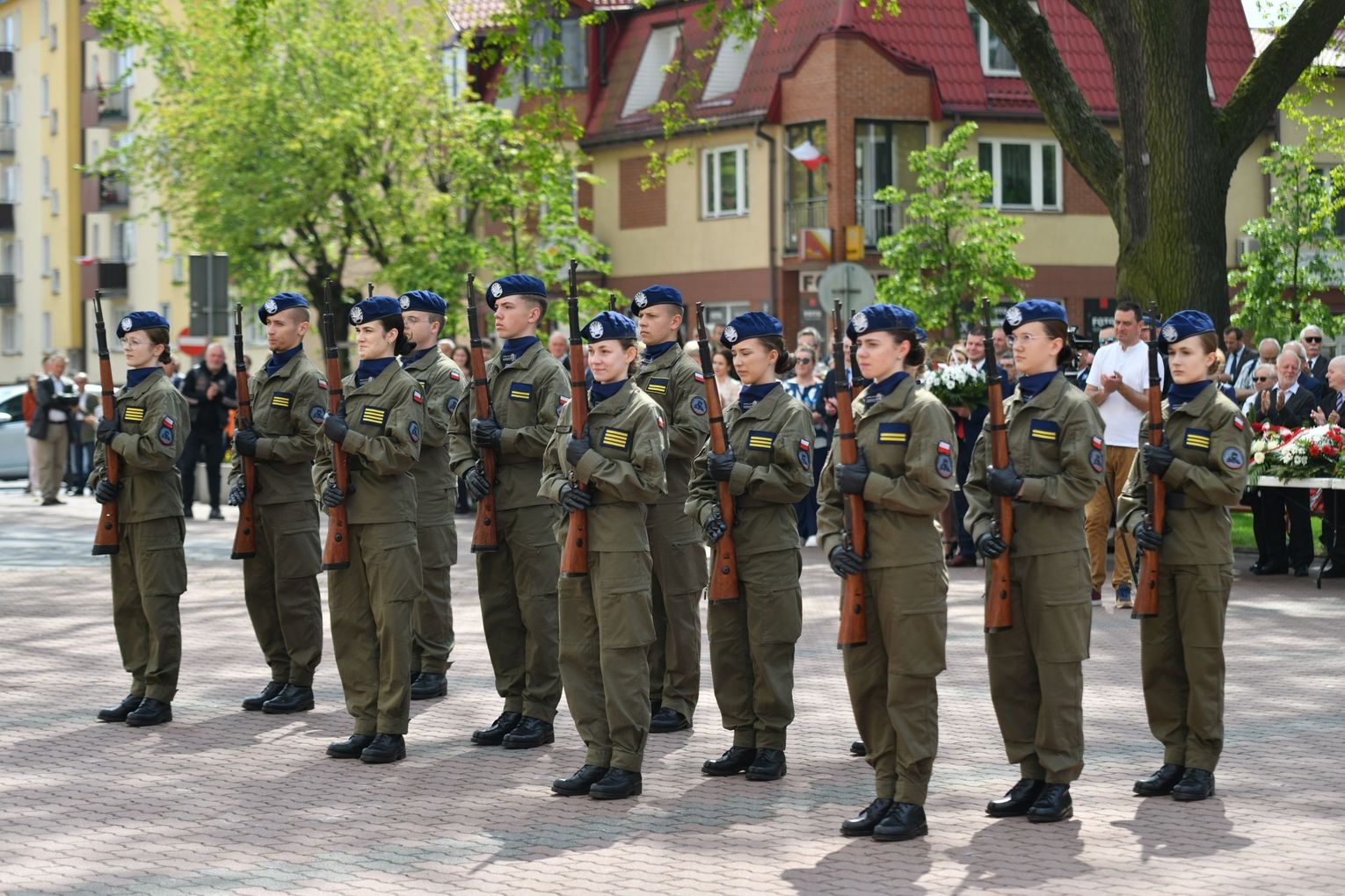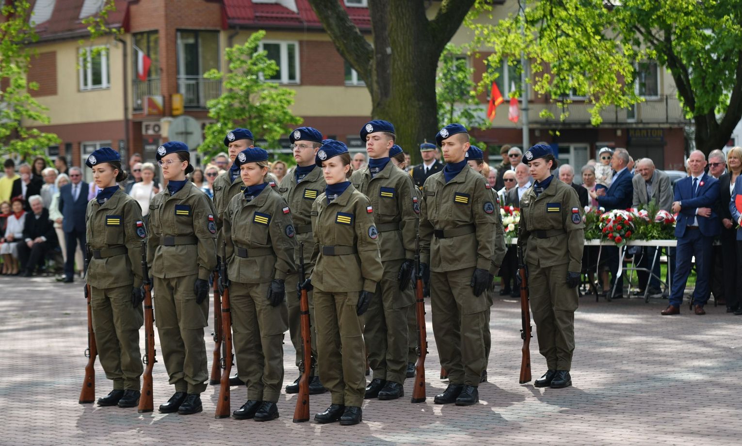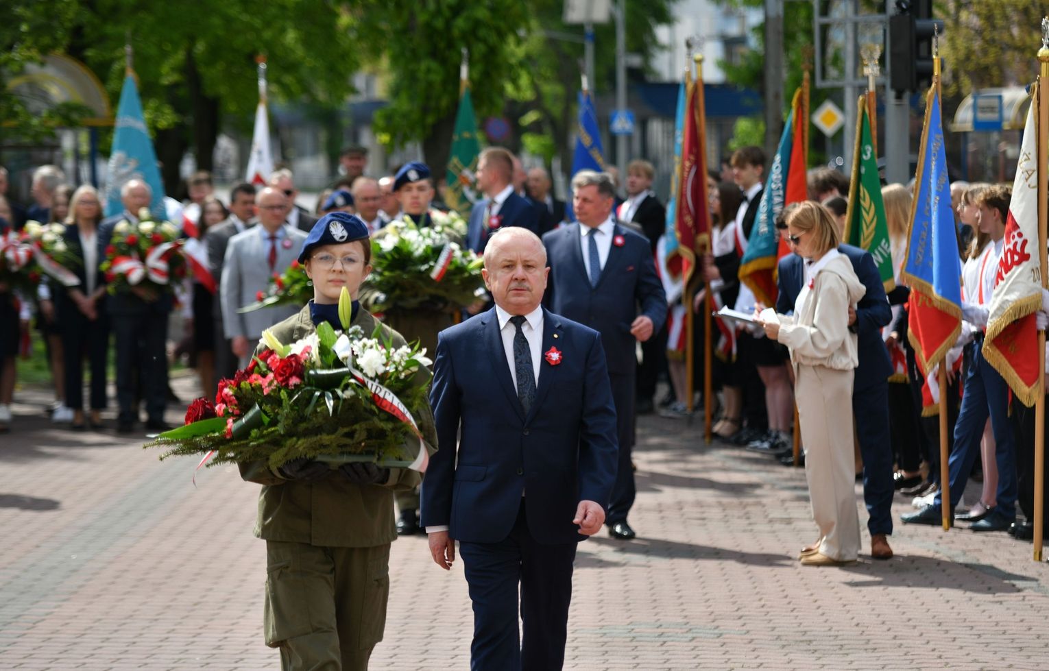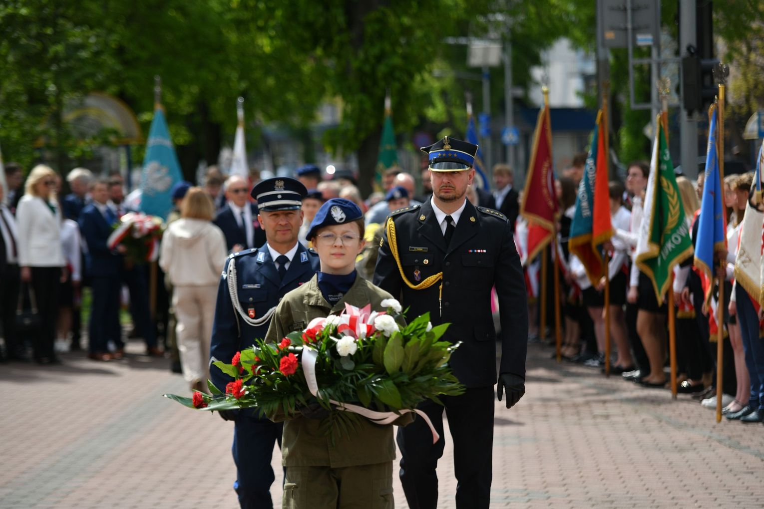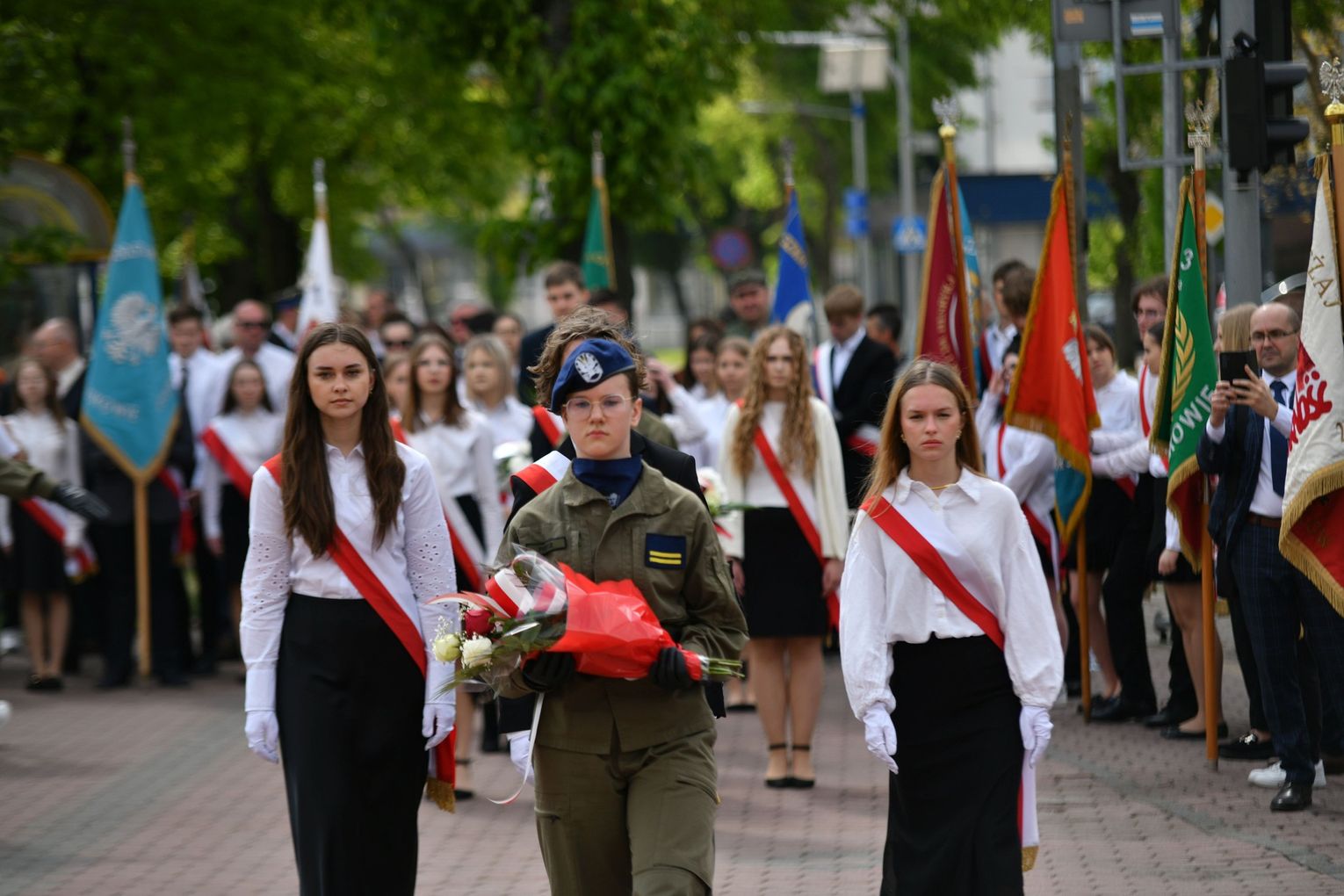 Wydarzenie rozpoczęła Msza Święta w Kolegiacie pw. Przemienienia Pańskiego, z udziałem pocztów sztandarowych instytucji i szkół z terenu Powiatu Łukowskiego. Dalsza część obchodów odbyła się pod tablicą upamiętniającą uchwalenie Konstytucji 3 Maja w Łukowie. Uroczystość rozpoczęła się przemówieniem Posła na Sejm Rzeczypospolitej Polskiej Sławomira Skwarka. Następnie listy okolicznościowe odczytali: w imieniu Marszałka Województwa Lubelskiego Jarosława Stawiarskiego – Radny Sejmiku Województwa Lubelskiego Ryszard Szczygieł oraz w imieniu Wojewody Lubelskiego Krzysztofa Komorskiego – Zastępca Burmistrza Miasta Łuków Mateusz Popławski. Okolicznościowe przemówienie w imieniu samorządu powiatowego, miejskiego i gminnego wygłosił Starosta Łukowski Dariusz Szustek. Kolejnym punktem uroczystości był pokaz musztry paradnej w wykonaniu kadetów klas mundurowych z Zespół Szkół im. Władysława Tatarkiewicza w Radoryżu Smolanym. Trenerem i dobrym duchem kadetów jest Daniel Sobczak. Zarząd Powiatu Łukowskiego postanowił nagrodzić reprezentacyjny oddział musztry paradnej z Zespołu Szkół im. Władysława Tatarkiewicza w Radoryżu Smolanym za aktywne uczestnictwo w prestiżowych konkursach o zasięgu ogólnopolskim oraz regularne zdobywanie czołowych lokat. W uznaniu tych osiągnięć oddział otrzymał od Zarządu Powiatu szablę reprezentacyjną. Ostatnim punktem uroczystości było złożenie kwiatów przed tablicą upamiętniającą uchwalenie Konstytucji 3 Maja w Łukowie znajdującej się na budynku Powiatowego Urzędu Pracy. Uroczystość uświetnił występ orkiestry dętej Towarzystwa Muzycznego im. Antoniego Próchniewicza w Łukowie pod batutą kapelmistrza Tadusza Bochmana. W ramach obchodów odbyły się również XXXII Łukowskie Uliczne Biegi 3 Maja pod honorowym patronatem Rady i Burmistrza Miasta Łuków. Niech żyje Konstytucja 3 Maja! Niech żyje Polska!