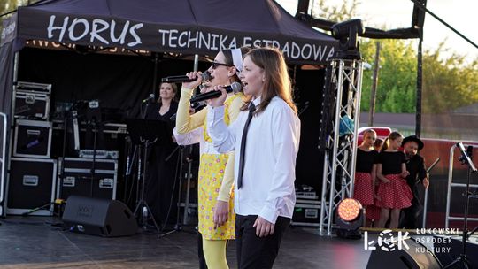 Tuż przed gwiazdą wieczoru mieliśmy okazję przeżyć kolejną muzyczną mega-niespodziankę. Monika Sołtyszewska - Leśkiewicz i jej Fabryka Piosenki jak zwykle zaskoczyli nas repertuarem i fantastycznym koncertem jaki przygotowują na każde Dni Łukowa. W tym roku nasi utalentowani wokaliści , w towarzystwie tancerek z ŁOK Dance Factory zabrali nas "Autostopem przez Big-Beat". To była wspaniała muzyczna, retro-uczta.