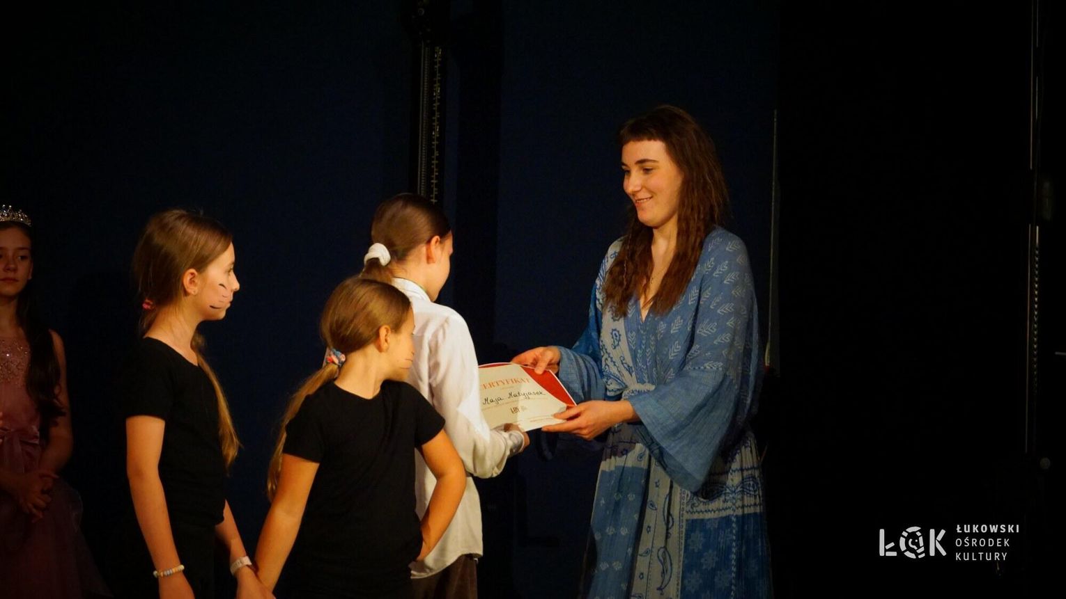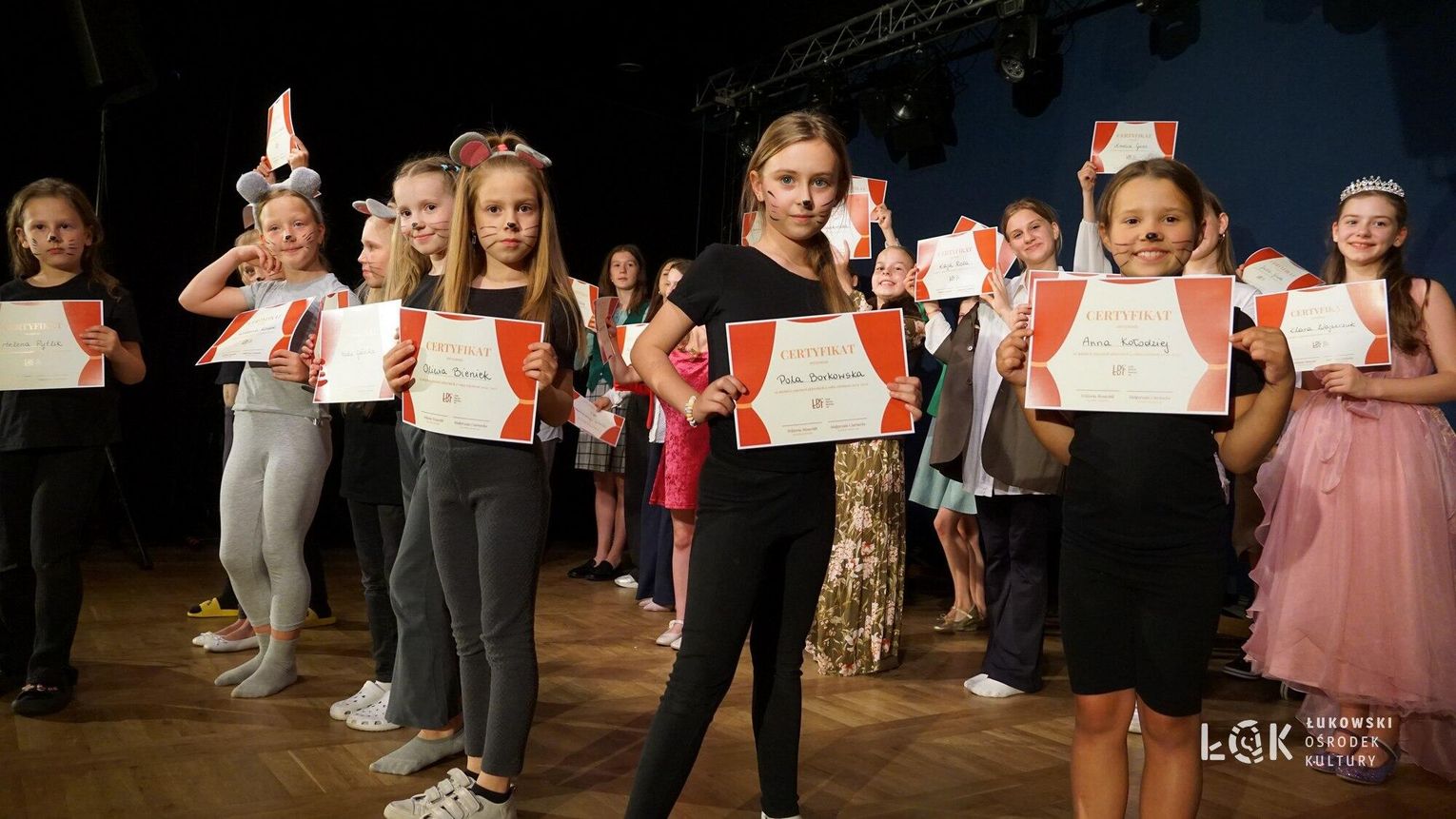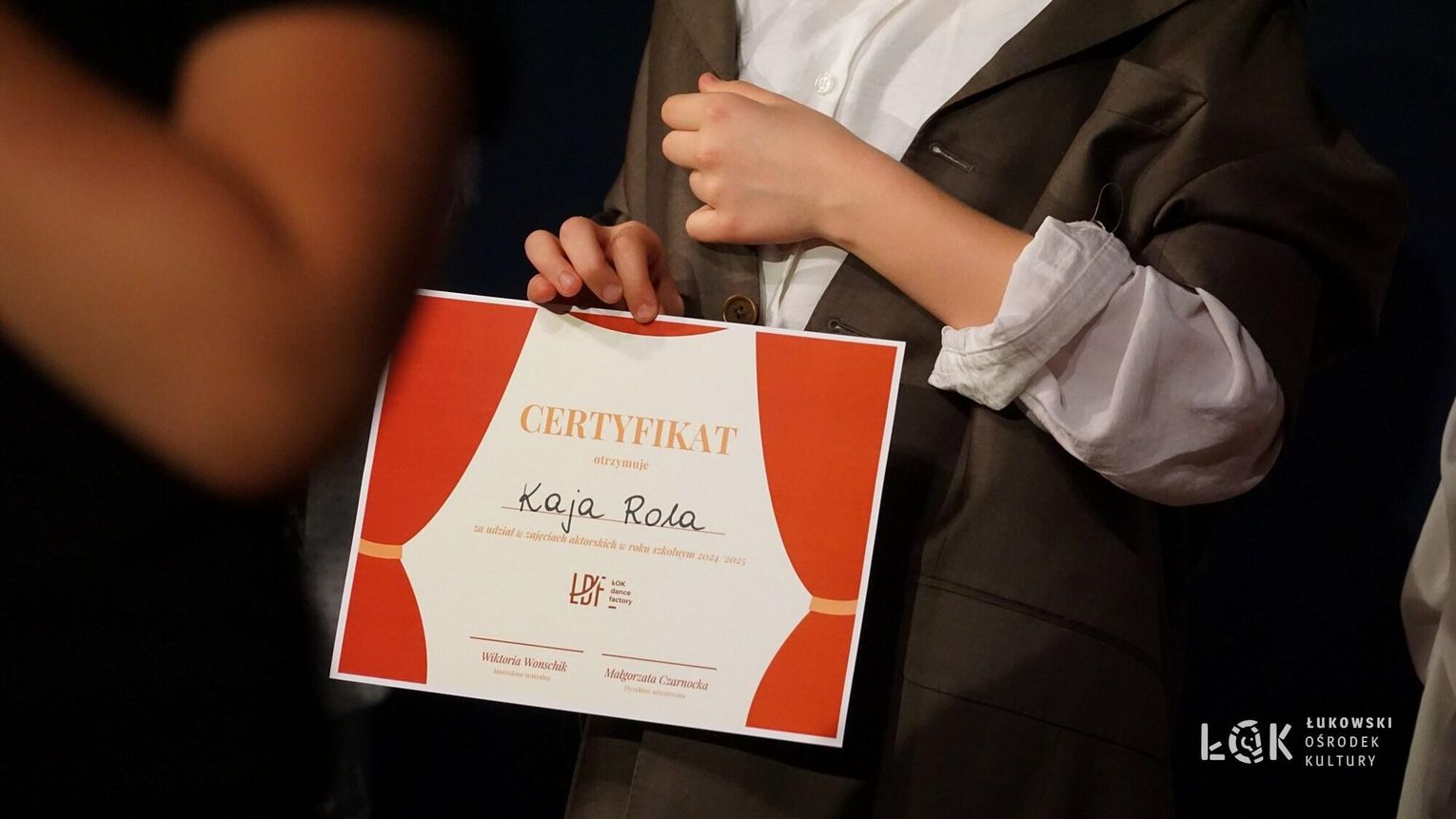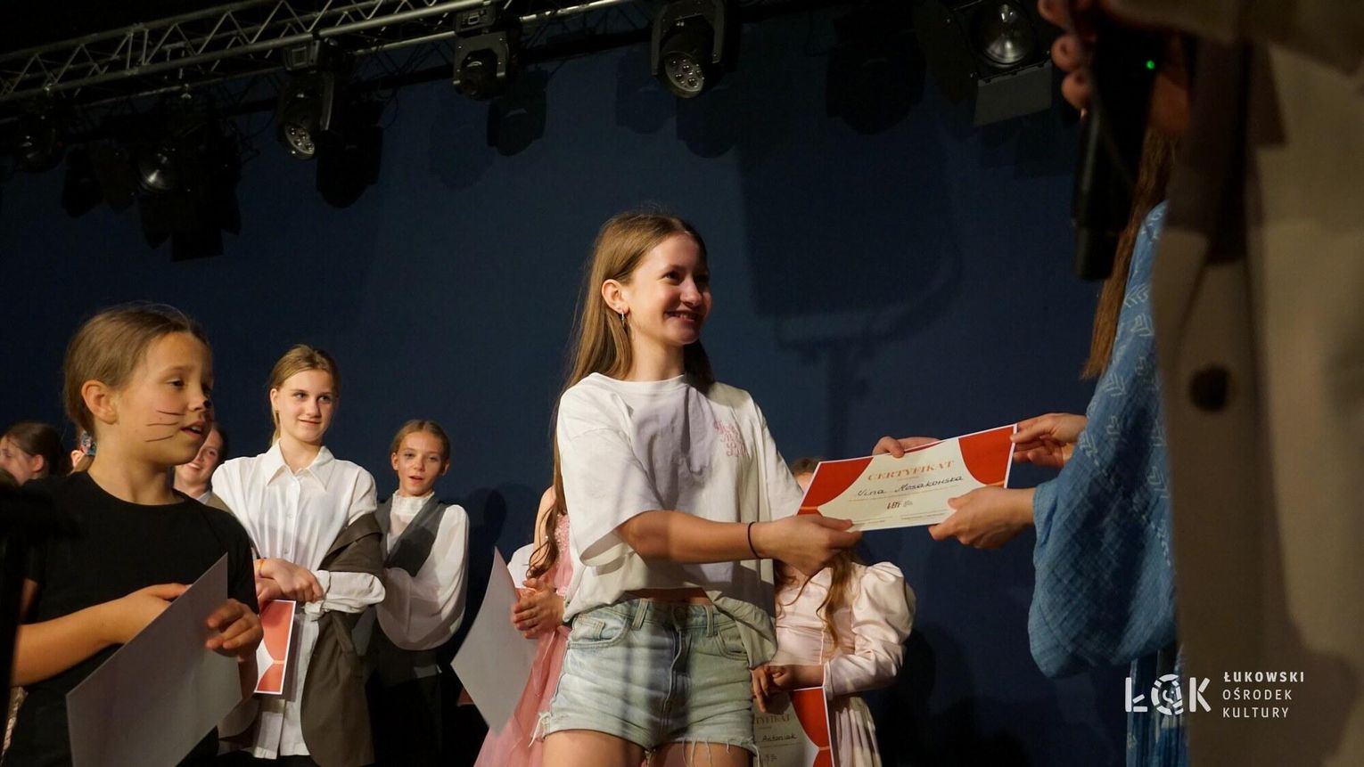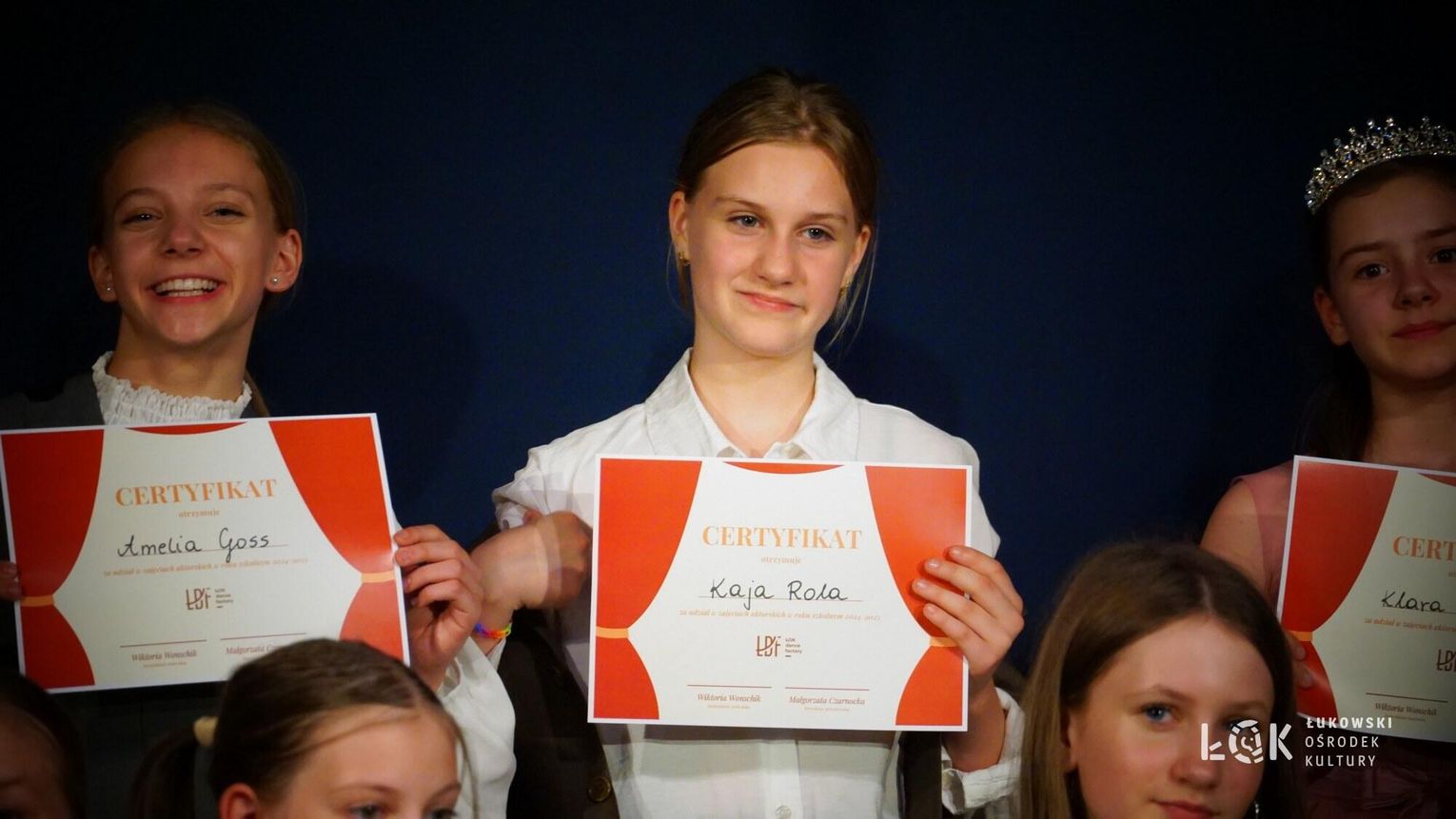 Na zakończenie spotkania wszystkie aktorki otrzymały pamiątkowe dyplomy. Scenariusz i reżyseria wszystkich spektakli - instruktorka teatralna ŁOK Dance Factory - Wiktoria Wonschik. Dodatkowo scenariusz do przedstawień: „Voyage en familie” oraz „Szczurnica” - Julia Biardzka. Akompaniament na pianinie - Magdalena Biejat. Scenografia do spektaklu „A śnieżki nie było” - Julia Grula oraz Olimpia Sulej. Dyrektorem artystycznym ŁOK Dance Factory jest Małgorzata Czarnocka.