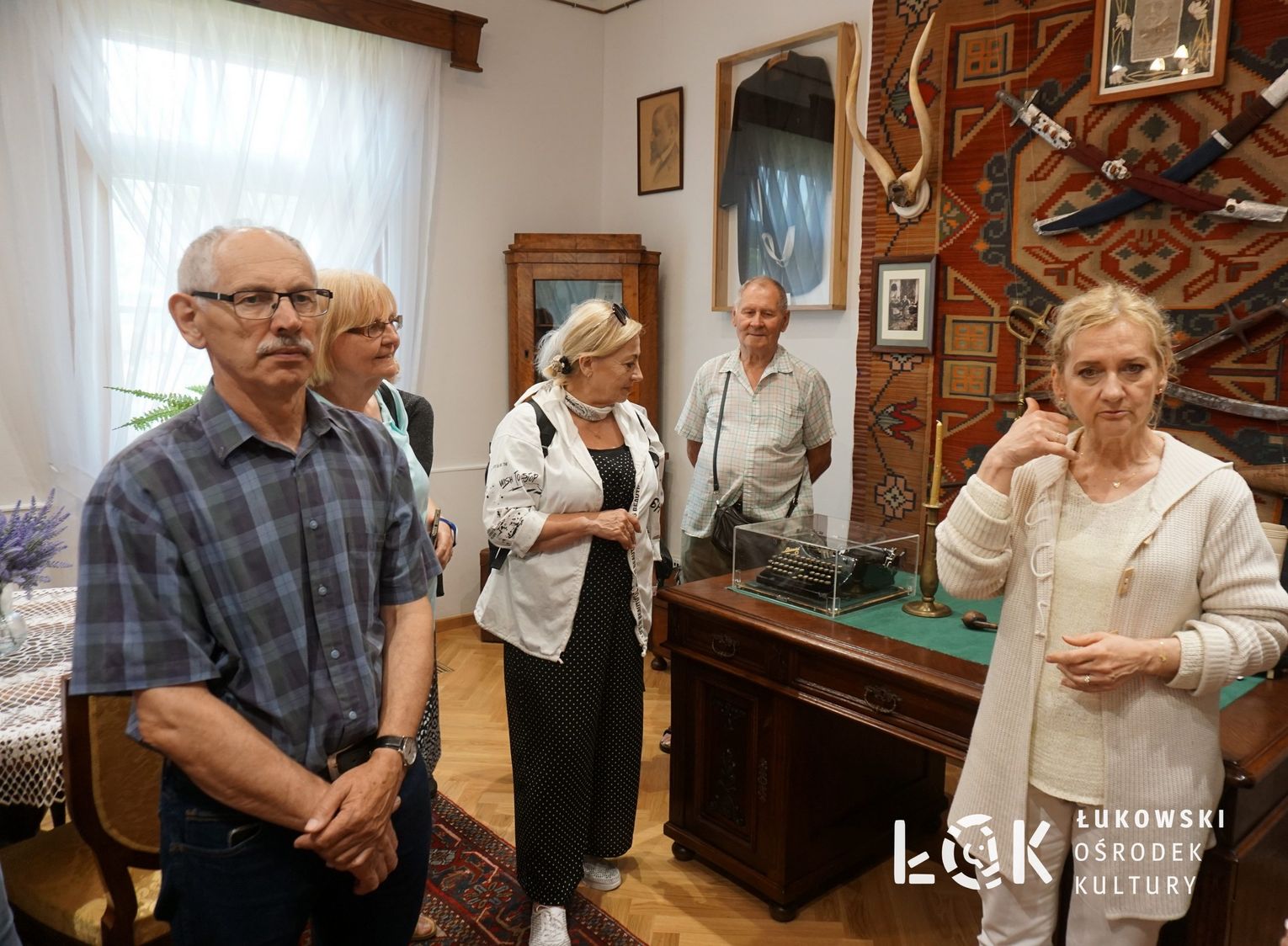 Pierwszym punktem zwiedzania było Muzeum Henryka Sienkiewicza w Woli Okrzejskiej - miejsce narodzin wybitnego pisarza i laureata literackiej Nagrody Nobla. Zwiedzający mieli okazję szczegółowo zapoznać się z historią rodziny Sienkiewiczów, dzieciństwem Henryka oraz jego twórczą drogą. Oprócz ciekawych opowieści mogliśmy przyjrzeć się archiwalnym zdjęciom i pamiątkom rodzinnym pisarza, a także jego rękopisom i listom. W muzeum widzieliśmy również unikatowe elementy scenografii i kostiumów, wykorzystywanych podczas filmowych adaptacji powieści, takich jak m.in.: "W Pustyni i w Puszczy" czy "Quo Vadis".