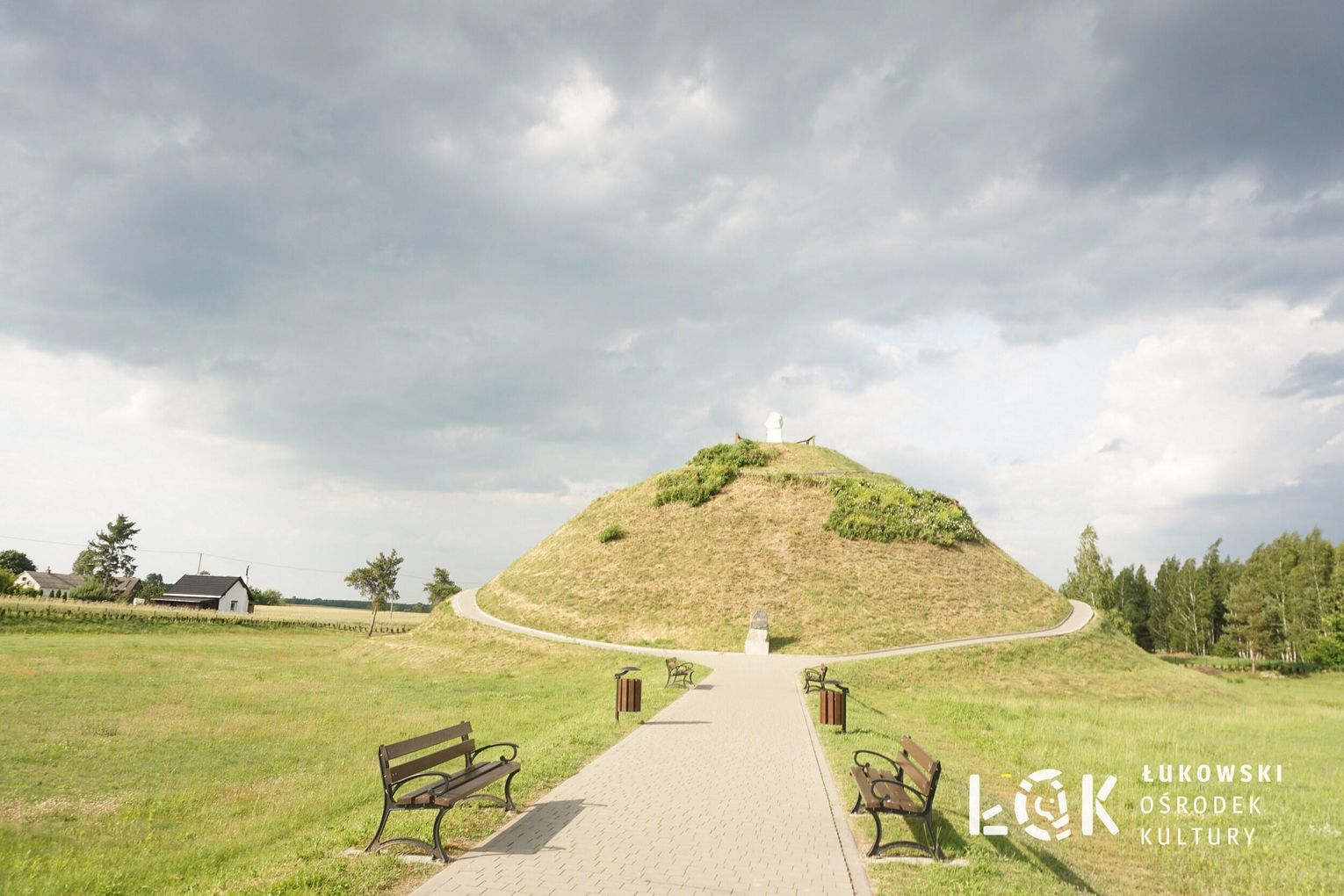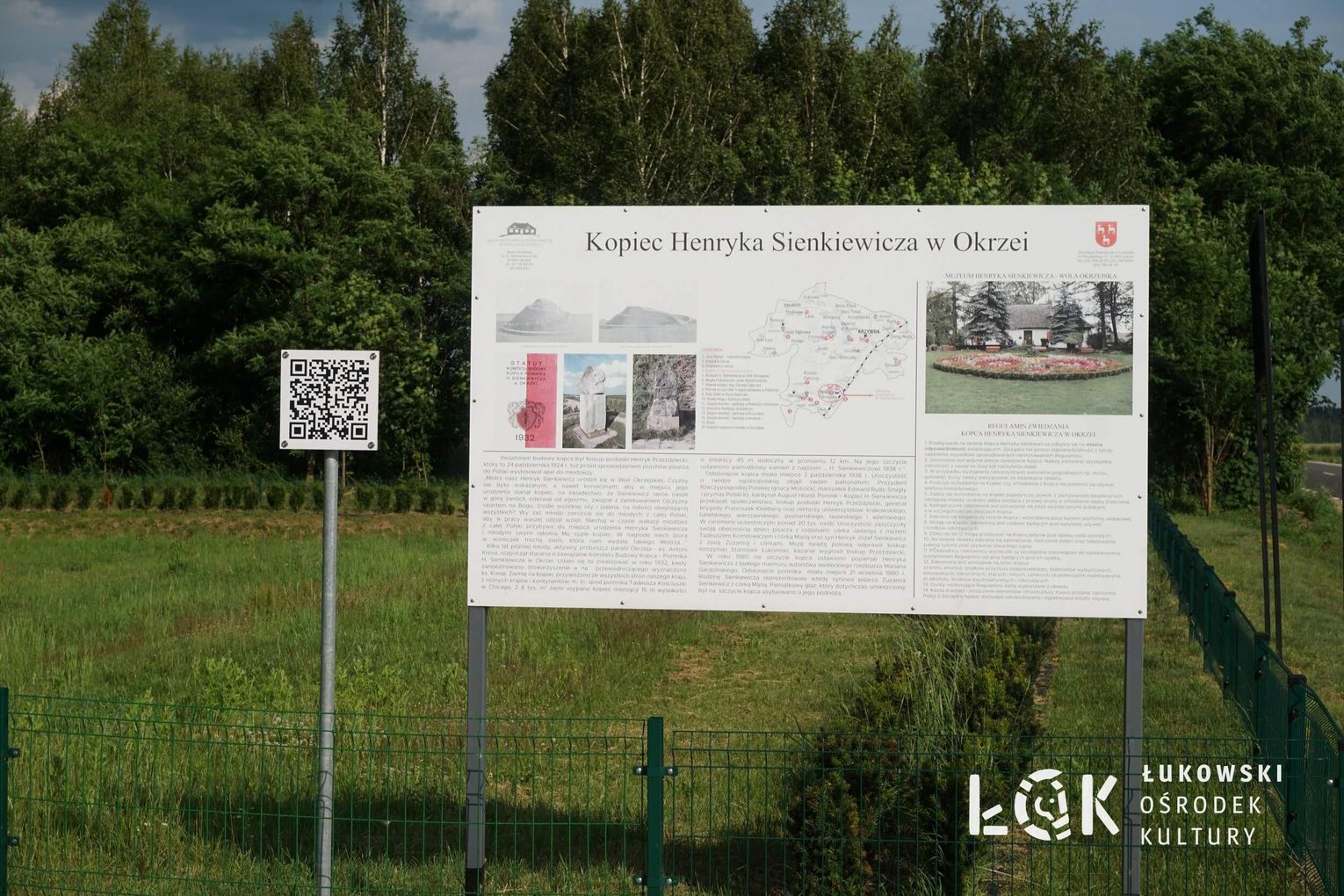 Finałem naszej wyjazdowej lekcji historii było odwiedzenie kopca Henryka Sienkiewicza w Okrzei, monumentalnego pomnika, usypanego z inicjatywy społecznej jako hołd oddany pisarzowi przez ludność z całego kraju.