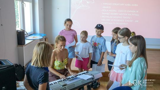 Pouczający i inspirujący warsztat poprowadziła Natalia Świerczyńska - wokalistka, autorka tekstów i muzyki. Dzięki wskazówkom i radom Pani Natalii podczas warsztatów powstały zarysy dwóch piosenek, a młodzi adepci songwritingu przekonali się, że czasem wystarczy obudzić swoją kreatywność, aby napisać własny utwór.