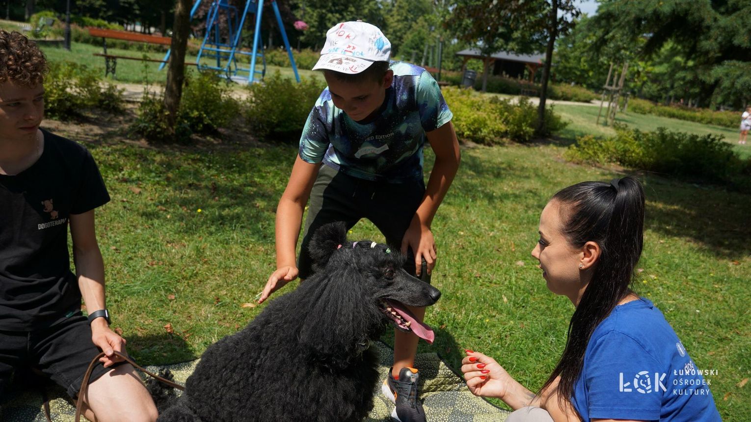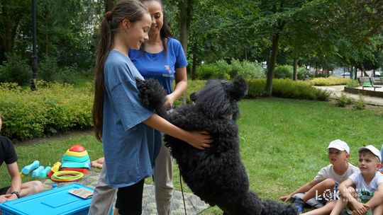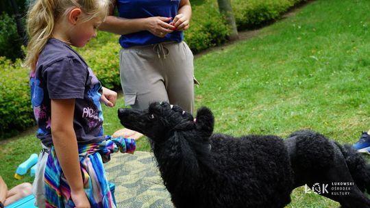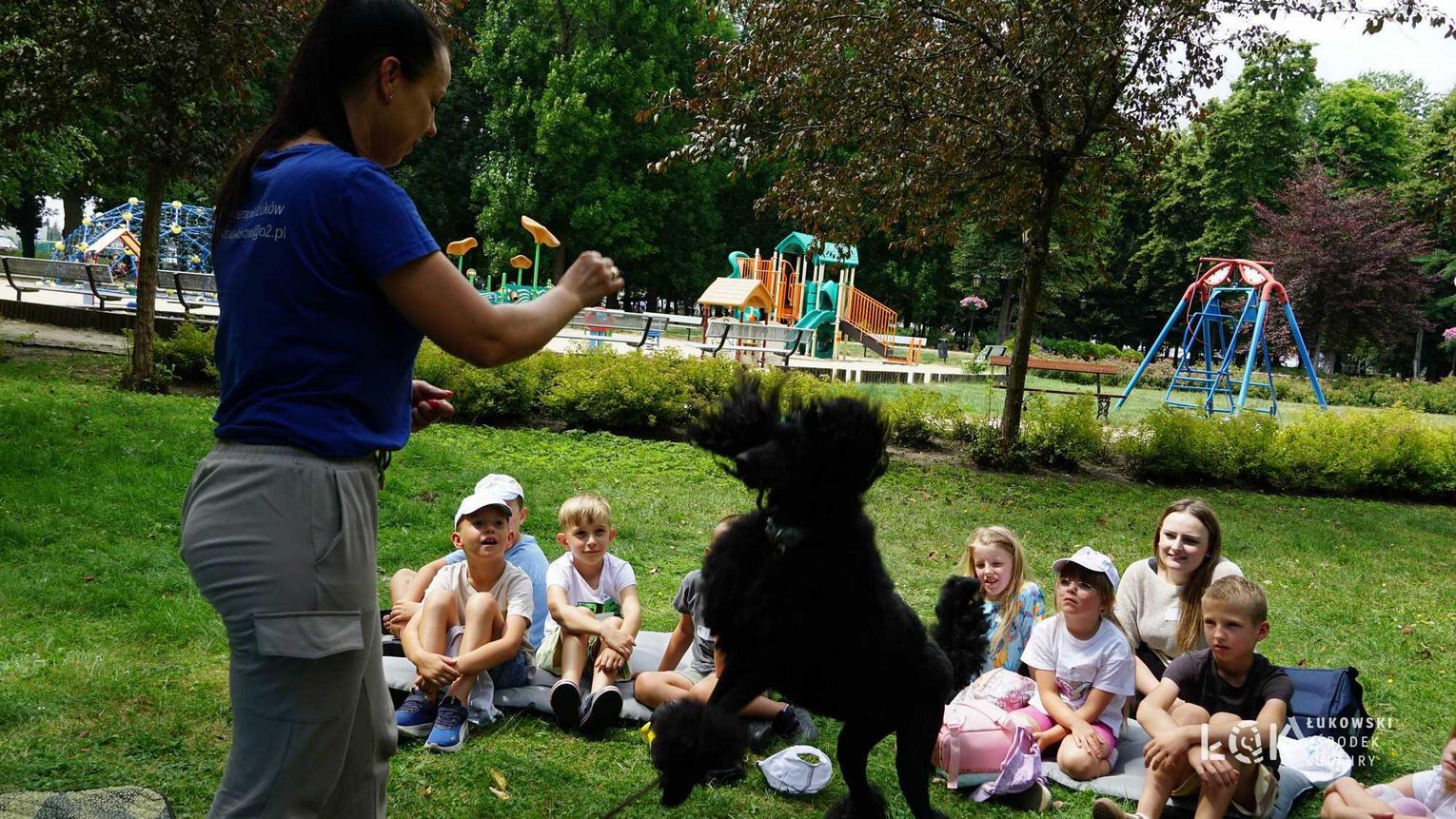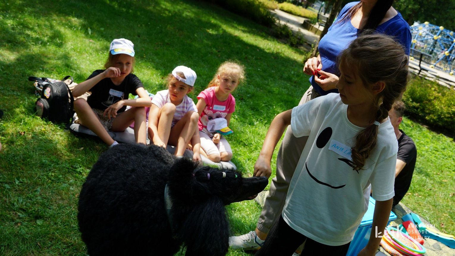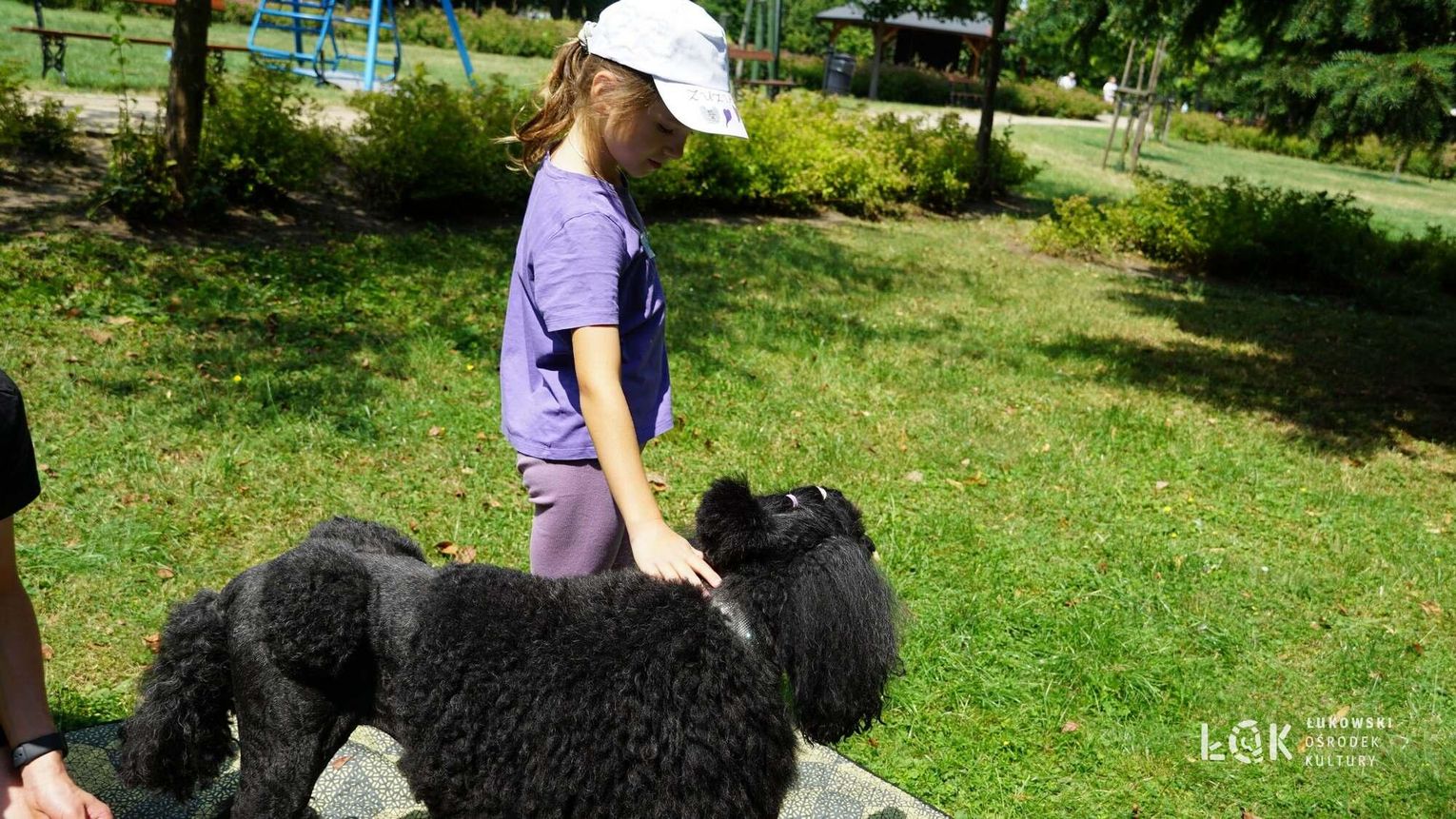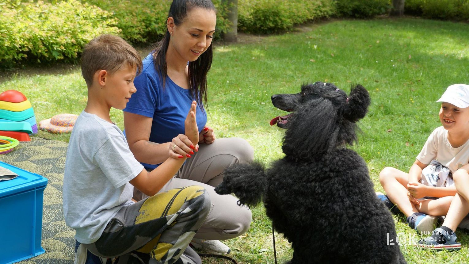 W poniedziałek 7 lipca 2025r. ropoczęły sie półkolonie w Łukowskim Ośrodku Kultury. Pierwszy dzień Wakacji ŁOK 2025 „Wokół zwierząt świata” zaczął się zabawami integracyjnymi. Następnie odbyły się inspirujące i kreatywne zajęcia plastyczne. Podczas tych warsztatów dzieci miały okazję wyrazić swoją wyobraźnię i pasję do zwierząt poprzez tworzenie unikalnych worko-plecaków. Każde dziecko wybrało swoje ulubione zwierzę i namalowało je na powierzchni plecaka, korzystając ze specjalnych markerów do tkanin. Dodatkowo, przestrzeń na plecaku została wykorzystana do przedstawienia innych elementów związanych z wybranym zwierzęciem lub własnych pomysłów, co pozwoliło na jeszcze bardziej osobiste i oryginalne projekty. Uczestnicy zajęć tym samym sposobem stworzyli własne kompozycje na czapkach, które będą nam odtąd towarzyszyć każdego dnia Wakacji ŁOK 2025. Następnie uczestnicy udali się do Parku Miejskiego, gdzie mogli korzystać ze Strefy Rozrywki Smykolandia Anna Siemionek. Była wspaniała zabawa, dmuchańce, lody i wata cukrowa. Na zakończenie pierwszego dnia, dzieci wzięły udział w dogoterapii, którą poprowadziła Monika Kozłowska. Uczestnicy wydając psu komendy, wchodzili w interakcję ze zwierzęciem. Warsztaty te pomagają w rozwoju fizycznym dziecka oraz w kształtowaniu i rozwijaniu umiejętności okazywania emocji i uczuć. Zajęcia te uczą również samodzielności, stwarzając dziecku możliwość wywiązywania się z działań podejmowanych wobec psa. Dzieci odkryły, że kontakt, zabawa i głaskanie odpowiednio przeszkolonego psa, znacząco poprawia samopoczucie zarówno dzieci, jak i dorosłych.