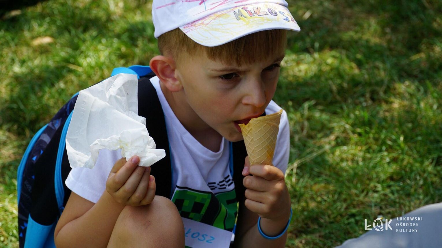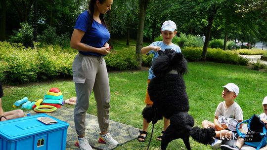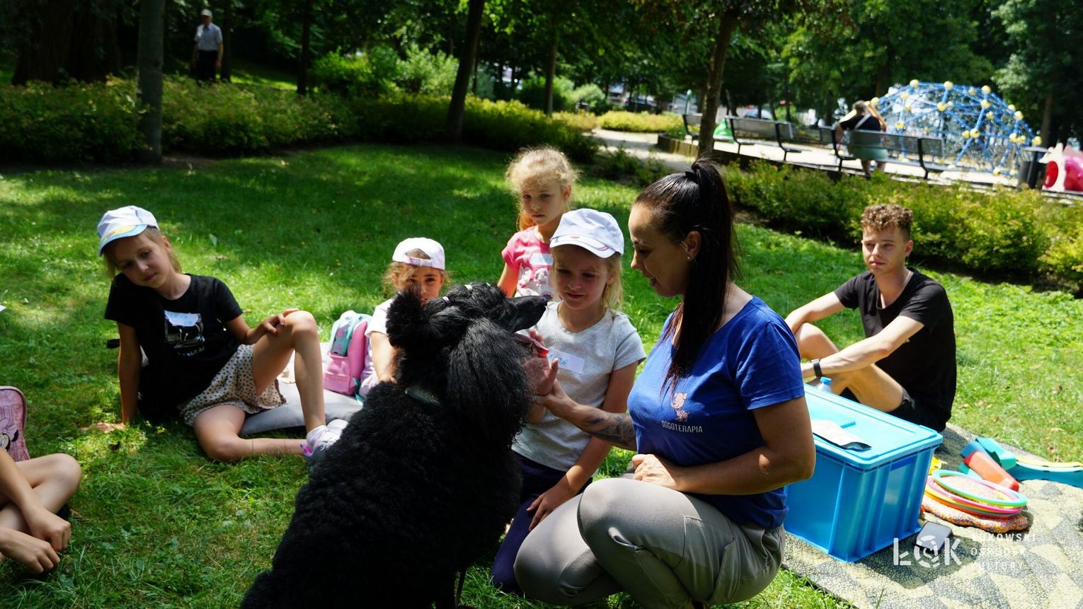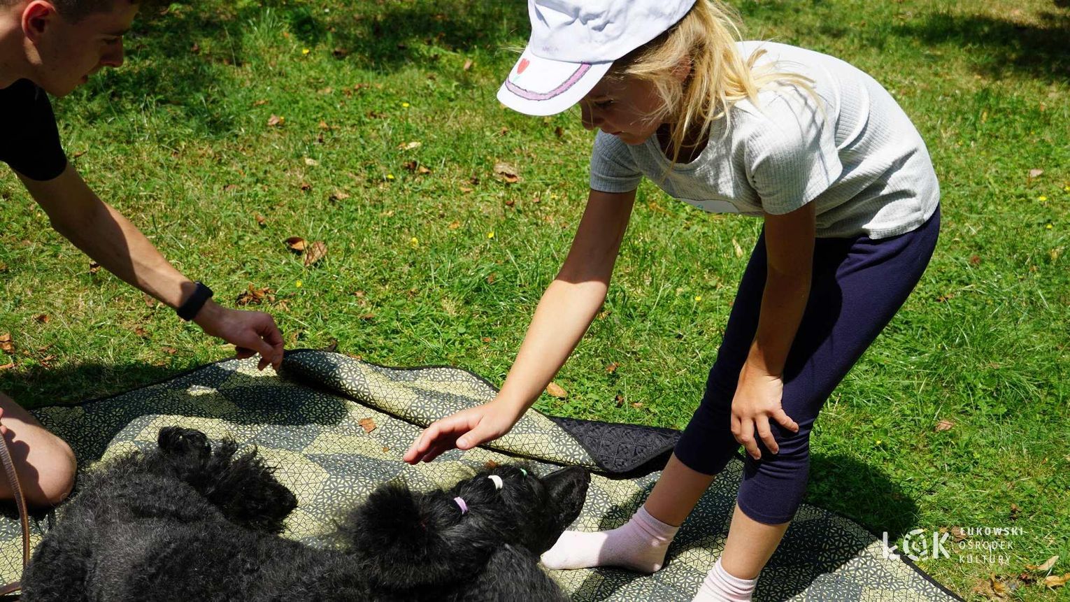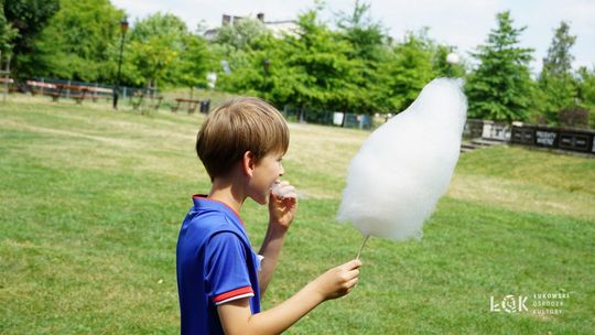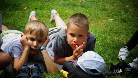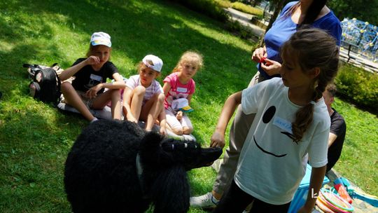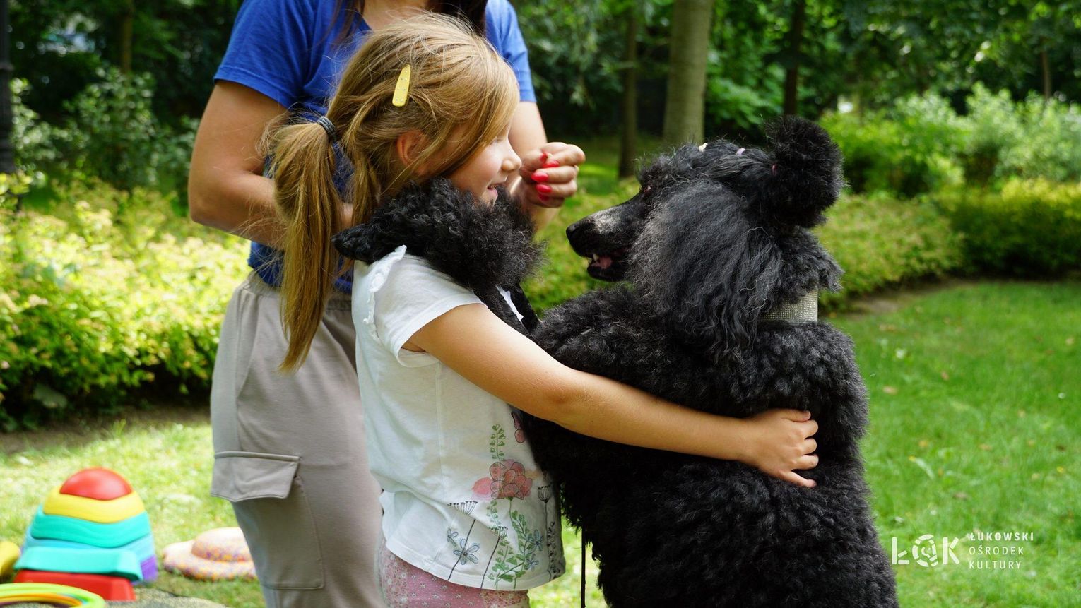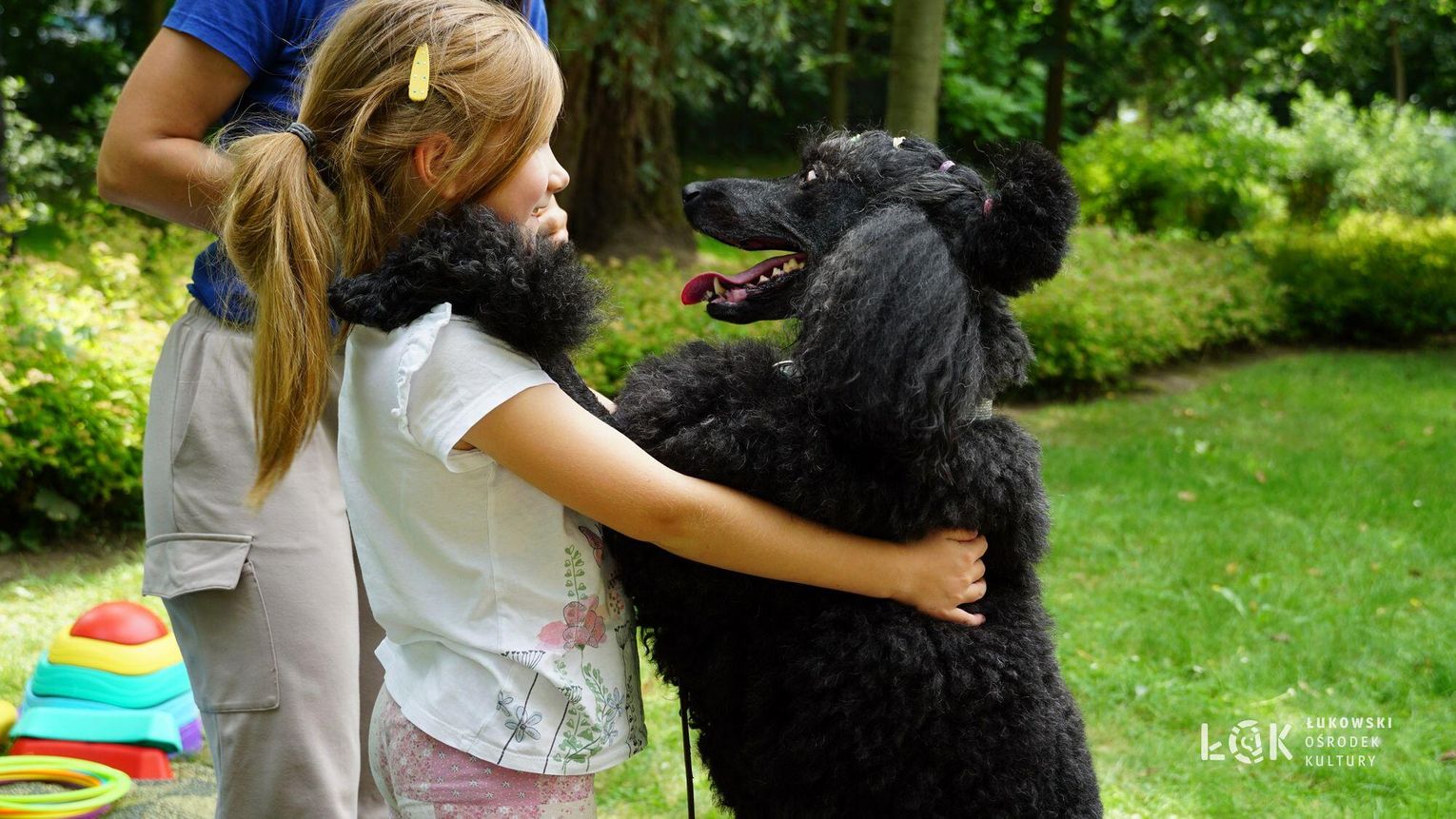 W poniedziałek 7 lipca 2025r. ropoczęły sie półkolonie w Łukowskim Ośrodku Kultury. Pierwszy dzień Wakacji ŁOK 2025 „Wokół zwierząt świata” zaczął się zabawami integracyjnymi. Następnie odbyły się inspirujące i kreatywne zajęcia plastyczne. Podczas tych warsztatów dzieci miały okazję wyrazić swoją wyobraźnię i pasję do zwierząt poprzez tworzenie unikalnych worko-plecaków. Każde dziecko wybrało swoje ulubione zwierzę i namalowało je na powierzchni plecaka, korzystając ze specjalnych markerów do tkanin. Dodatkowo, przestrzeń na plecaku została wykorzystana do przedstawienia innych elementów związanych z wybranym zwierzęciem lub własnych pomysłów, co pozwoliło na jeszcze bardziej osobiste i oryginalne projekty. Uczestnicy zajęć tym samym sposobem stworzyli własne kompozycje na czapkach, które będą nam odtąd towarzyszyć każdego dnia Wakacji ŁOK 2025. Następnie uczestnicy udali się do Parku Miejskiego, gdzie mogli korzystać ze Strefy Rozrywki Smykolandia Anna Siemionek. Była wspaniała zabawa, dmuchańce, lody i wata cukrowa. Na zakończenie pierwszego dnia, dzieci wzięły udział w dogoterapii, którą poprowadziła Monika Kozłowska. Uczestnicy wydając psu komendy, wchodzili w interakcję ze zwierzęciem. Warsztaty te pomagają w rozwoju fizycznym dziecka oraz w kształtowaniu i rozwijaniu umiejętności okazywania emocji i uczuć. Zajęcia te uczą również samodzielności, stwarzając dziecku możliwość wywiązywania się z działań podejmowanych wobec psa. Dzieci odkryły, że kontakt, zabawa i głaskanie odpowiednio przeszkolonego psa, znacząco poprawia samopoczucie zarówno dzieci, jak i dorosłych.