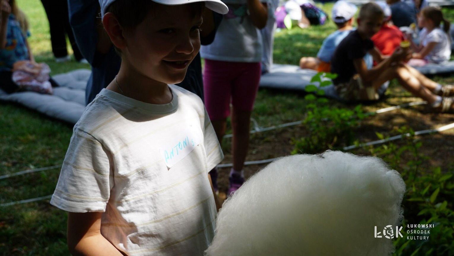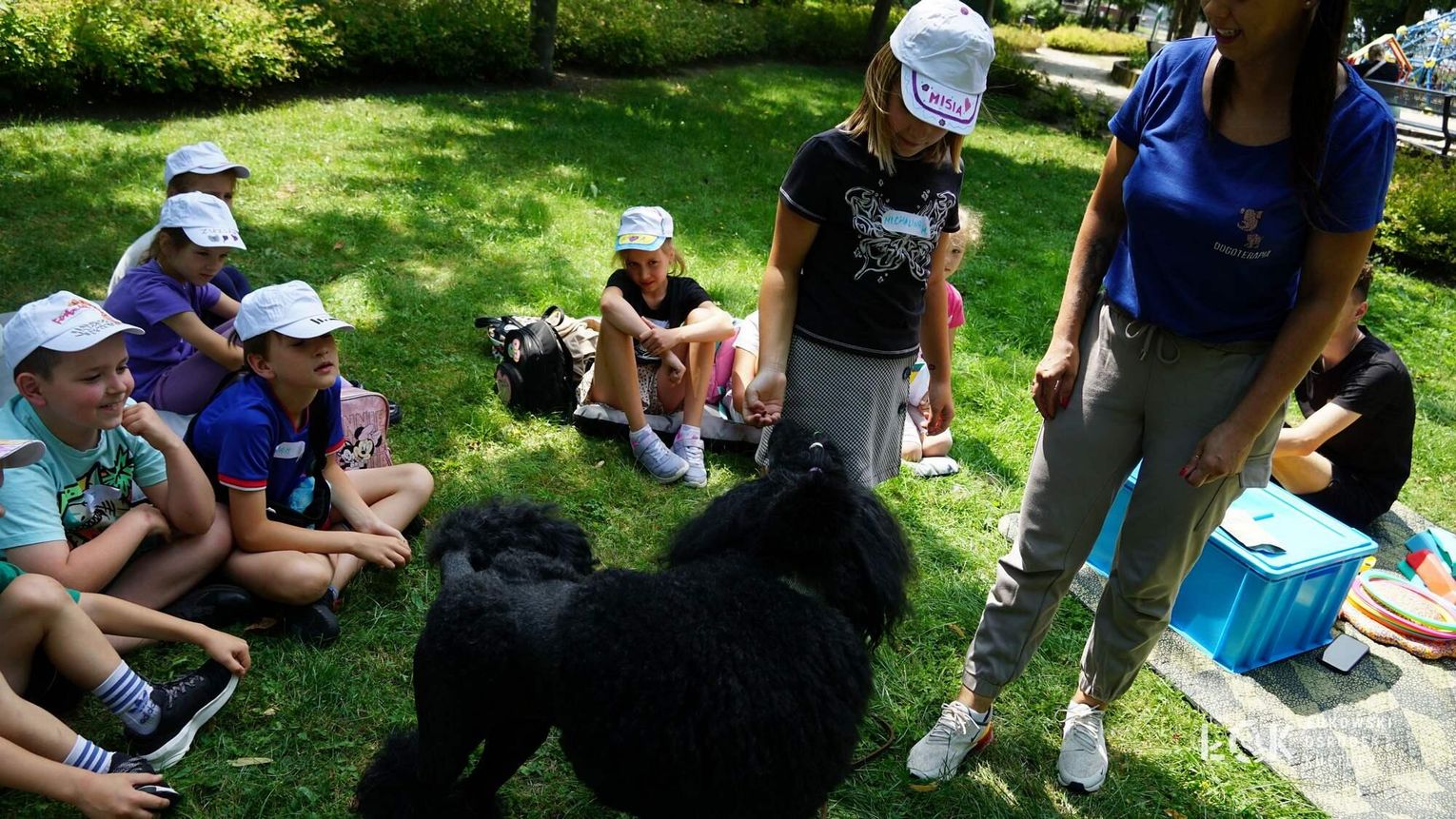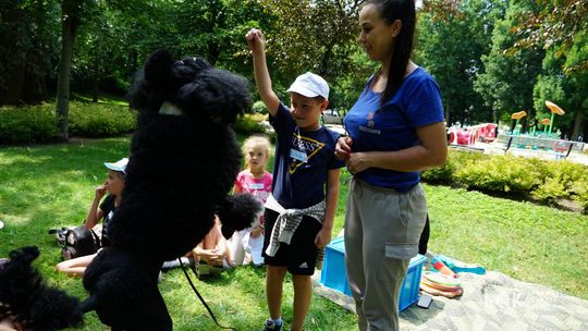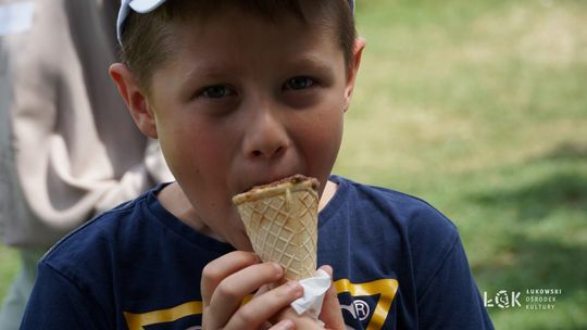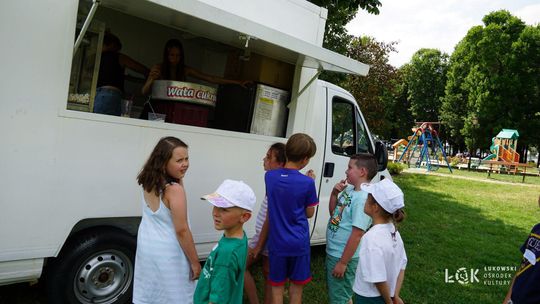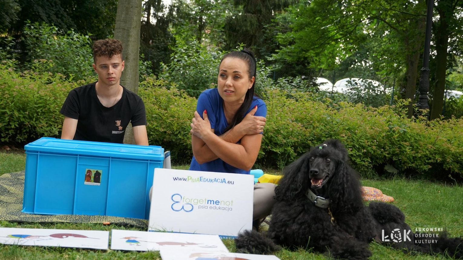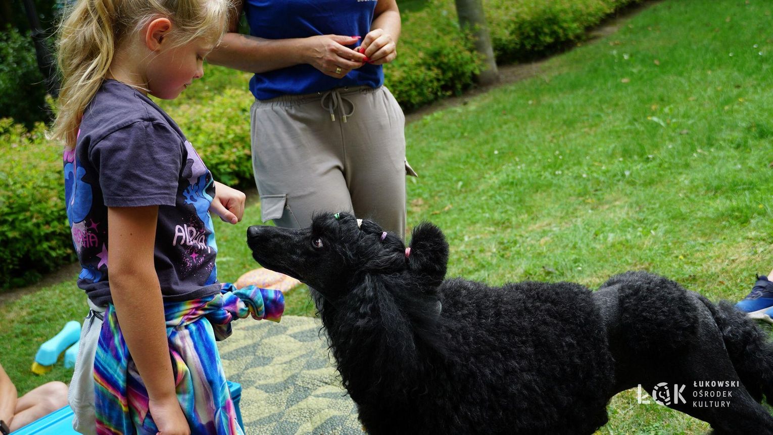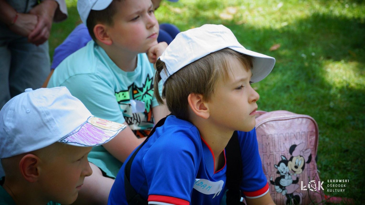 W poniedziałek 7 lipca 2025r. ropoczęły sie półkolonie w Łukowskim Ośrodku Kultury. Pierwszy dzień Wakacji ŁOK 2025 „Wokół zwierząt świata” zaczął się zabawami integracyjnymi. Następnie odbyły się inspirujące i kreatywne zajęcia plastyczne. Podczas tych warsztatów dzieci miały okazję wyrazić swoją wyobraźnię i pasję do zwierząt poprzez tworzenie unikalnych worko-plecaków. Każde dziecko wybrało swoje ulubione zwierzę i namalowało je na powierzchni plecaka, korzystając ze specjalnych markerów do tkanin. Dodatkowo, przestrzeń na plecaku została wykorzystana do przedstawienia innych elementów związanych z wybranym zwierzęciem lub własnych pomysłów, co pozwoliło na jeszcze bardziej osobiste i oryginalne projekty. Uczestnicy zajęć tym samym sposobem stworzyli własne kompozycje na czapkach, które będą nam odtąd towarzyszyć każdego dnia Wakacji ŁOK 2025. Następnie uczestnicy udali się do Parku Miejskiego, gdzie mogli korzystać ze Strefy Rozrywki Smykolandia Anna Siemionek. Była wspaniała zabawa, dmuchańce, lody i wata cukrowa. Na zakończenie pierwszego dnia, dzieci wzięły udział w dogoterapii, którą poprowadziła Monika Kozłowska. Uczestnicy wydając psu komendy, wchodzili w interakcję ze zwierzęciem. Warsztaty te pomagają w rozwoju fizycznym dziecka oraz w kształtowaniu i rozwijaniu umiejętności okazywania emocji i uczuć. Zajęcia te uczą również samodzielności, stwarzając dziecku możliwość wywiązywania się z działań podejmowanych wobec psa. Dzieci odkryły, że kontakt, zabawa i głaskanie odpowiednio przeszkolonego psa, znacząco poprawia samopoczucie zarówno dzieci, jak i dorosłych.