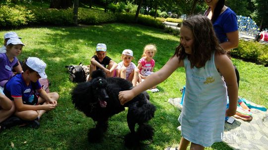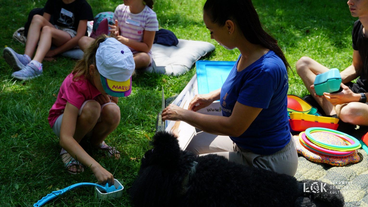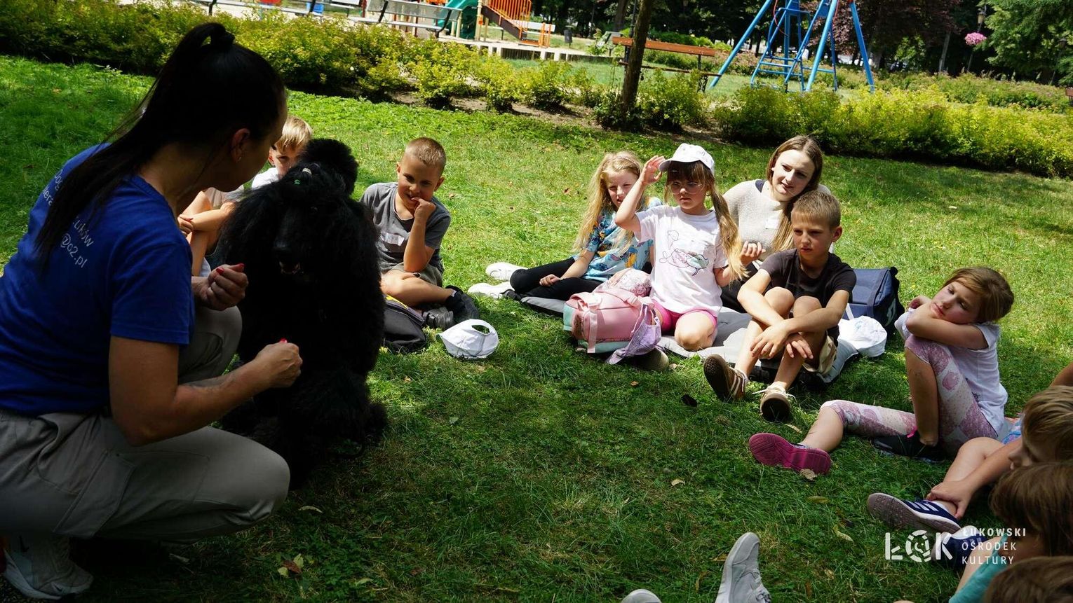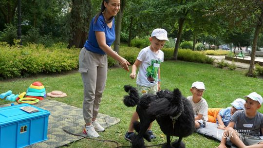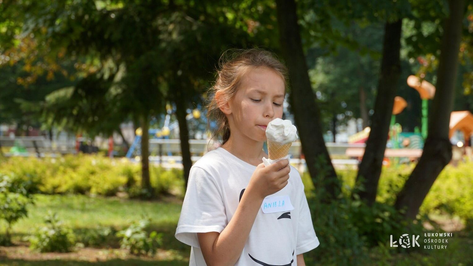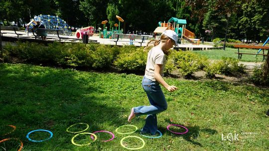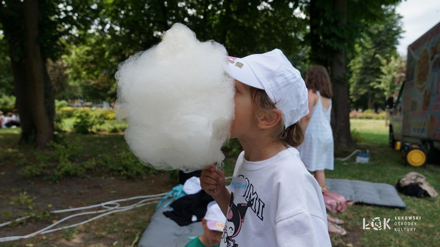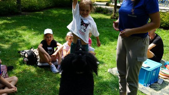 W poniedziałek 7 lipca 2025r. ropoczęły sie półkolonie w Łukowskim Ośrodku Kultury. Pierwszy dzień Wakacji ŁOK 2025 „Wokół zwierząt świata” zaczął się zabawami integracyjnymi. Następnie odbyły się inspirujące i kreatywne zajęcia plastyczne. Podczas tych warsztatów dzieci miały okazję wyrazić swoją wyobraźnię i pasję do zwierząt poprzez tworzenie unikalnych worko-plecaków. Każde dziecko wybrało swoje ulubione zwierzę i namalowało je na powierzchni plecaka, korzystając ze specjalnych markerów do tkanin. Dodatkowo, przestrzeń na plecaku została wykorzystana do przedstawienia innych elementów związanych z wybranym zwierzęciem lub własnych pomysłów, co pozwoliło na jeszcze bardziej osobiste i oryginalne projekty. Uczestnicy zajęć tym samym sposobem stworzyli własne kompozycje na czapkach, które będą nam odtąd towarzyszyć każdego dnia Wakacji ŁOK 2025. Następnie uczestnicy udali się do Parku Miejskiego, gdzie mogli korzystać ze Strefy Rozrywki Smykolandia Anna Siemionek. Była wspaniała zabawa, dmuchańce, lody i wata cukrowa. Na zakończenie pierwszego dnia, dzieci wzięły udział w dogoterapii, którą poprowadziła Monika Kozłowska. Uczestnicy wydając psu komendy, wchodzili w interakcję ze zwierzęciem. Warsztaty te pomagają w rozwoju fizycznym dziecka oraz w kształtowaniu i rozwijaniu umiejętności okazywania emocji i uczuć. Zajęcia te uczą również samodzielności, stwarzając dziecku możliwość wywiązywania się z działań podejmowanych wobec psa. Dzieci odkryły, że kontakt, zabawa i głaskanie odpowiednio przeszkolonego psa, znacząco poprawia samopoczucie zarówno dzieci, jak i dorosłych.