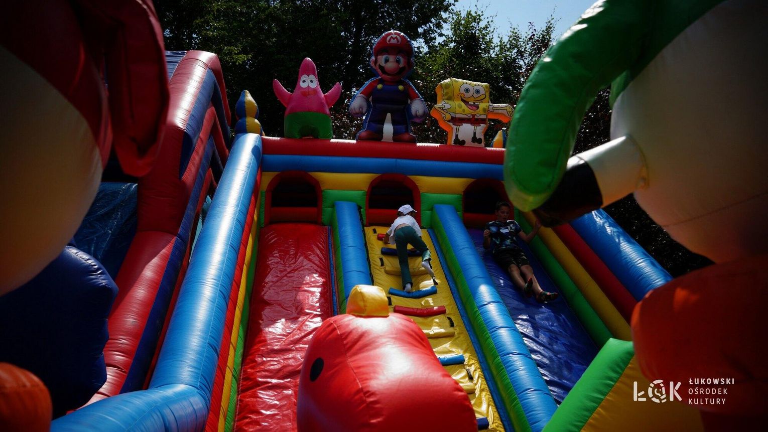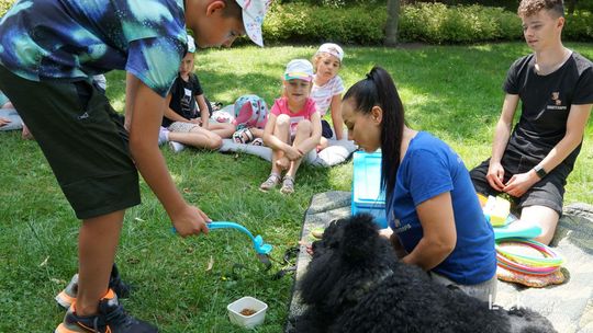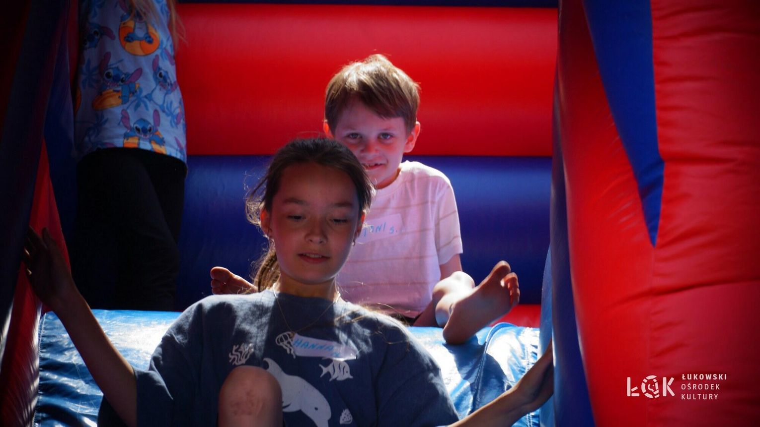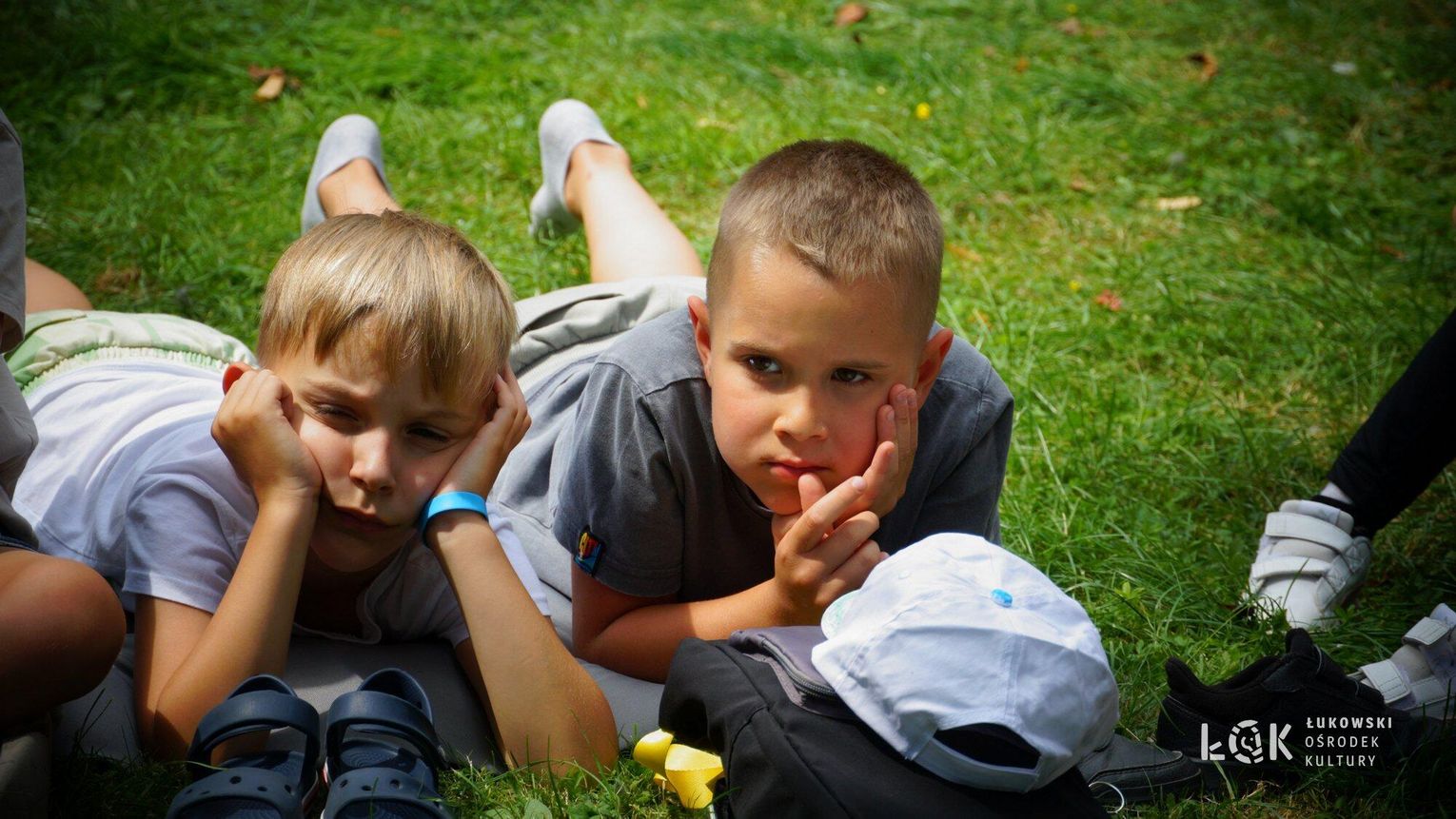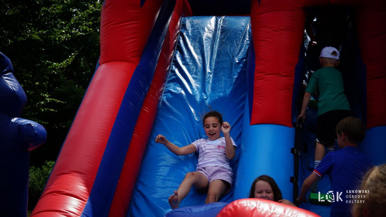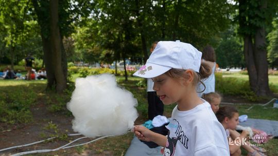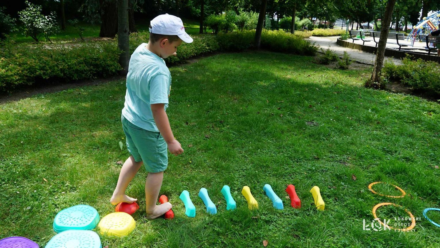 W poniedziałek 7 lipca 2025r. ropoczęły sie półkolonie w Łukowskim Ośrodku Kultury. Pierwszy dzień Wakacji ŁOK 2025 „Wokół zwierząt świata” zaczął się zabawami integracyjnymi. Następnie odbyły się inspirujące i kreatywne zajęcia plastyczne. Podczas tych warsztatów dzieci miały okazję wyrazić swoją wyobraźnię i pasję do zwierząt poprzez tworzenie unikalnych worko-plecaków. Każde dziecko wybrało swoje ulubione zwierzę i namalowało je na powierzchni plecaka, korzystając ze specjalnych markerów do tkanin. Dodatkowo, przestrzeń na plecaku została wykorzystana do przedstawienia innych elementów związanych z wybranym zwierzęciem lub własnych pomysłów, co pozwoliło na jeszcze bardziej osobiste i oryginalne projekty. Uczestnicy zajęć tym samym sposobem stworzyli własne kompozycje na czapkach, które będą nam odtąd towarzyszyć każdego dnia Wakacji ŁOK 2025. Następnie uczestnicy udali się do Parku Miejskiego, gdzie mogli korzystać ze Strefy Rozrywki Smykolandia Anna Siemionek. Była wspaniała zabawa, dmuchańce, lody i wata cukrowa. Na zakończenie pierwszego dnia, dzieci wzięły udział w dogoterapii, którą poprowadziła Monika Kozłowska. Uczestnicy wydając psu komendy, wchodzili w interakcję ze zwierzęciem. Warsztaty te pomagają w rozwoju fizycznym dziecka oraz w kształtowaniu i rozwijaniu umiejętności okazywania emocji i uczuć. Zajęcia te uczą również samodzielności, stwarzając dziecku możliwość wywiązywania się z działań podejmowanych wobec psa. Dzieci odkryły, że kontakt, zabawa i głaskanie odpowiednio przeszkolonego psa, znacząco poprawia samopoczucie zarówno dzieci, jak i dorosłych.