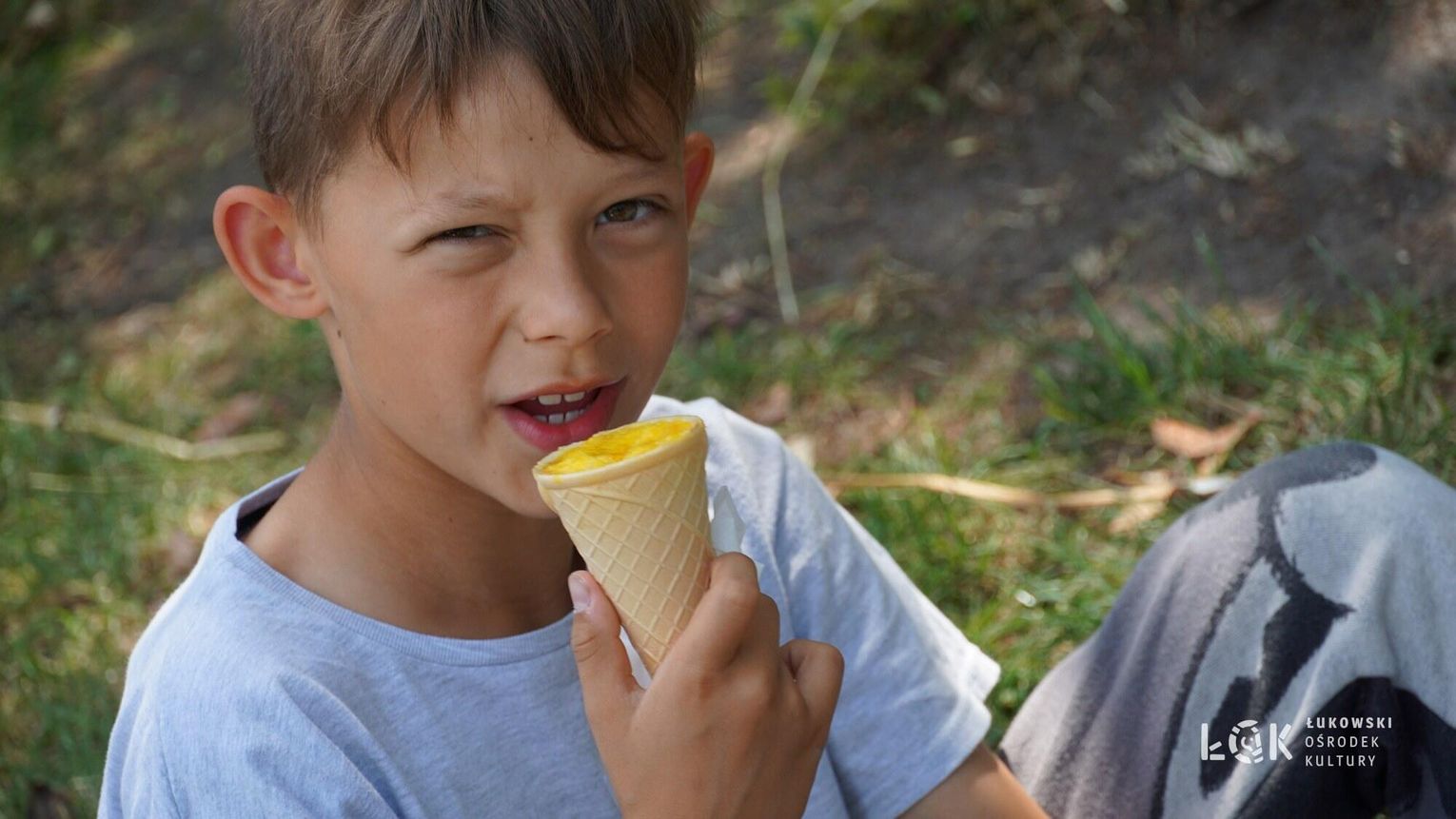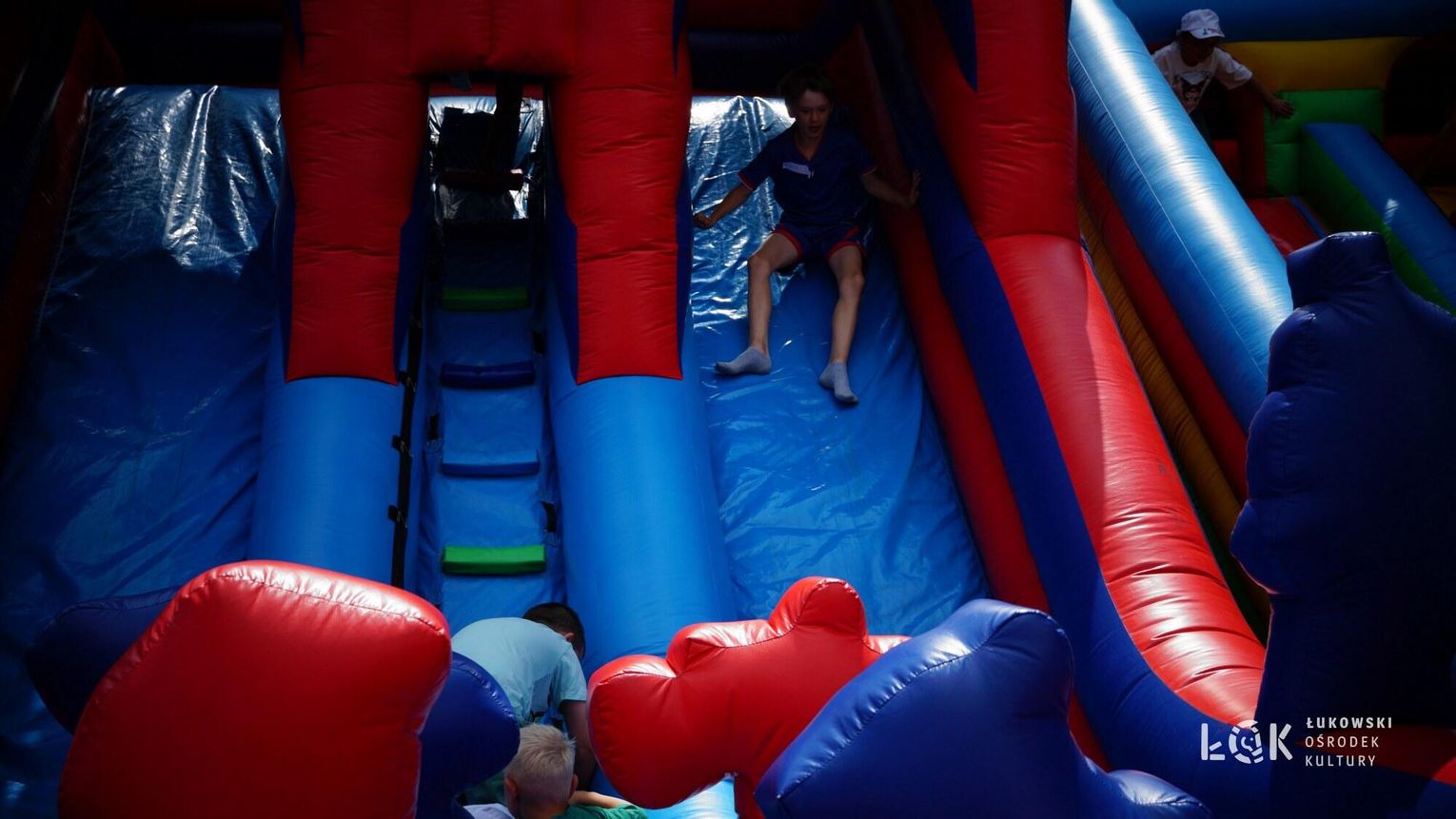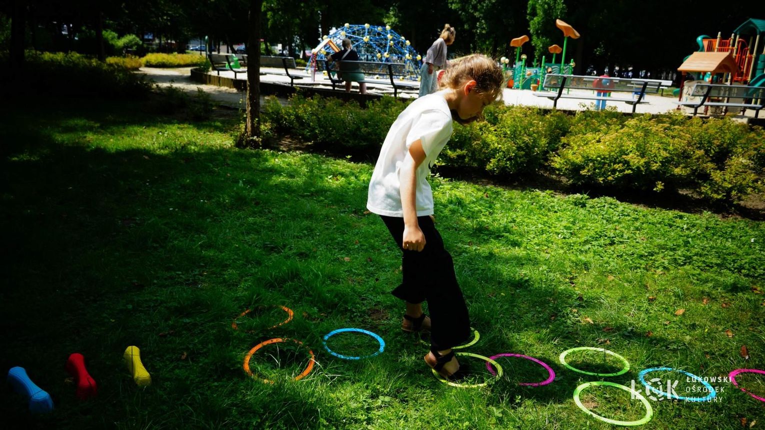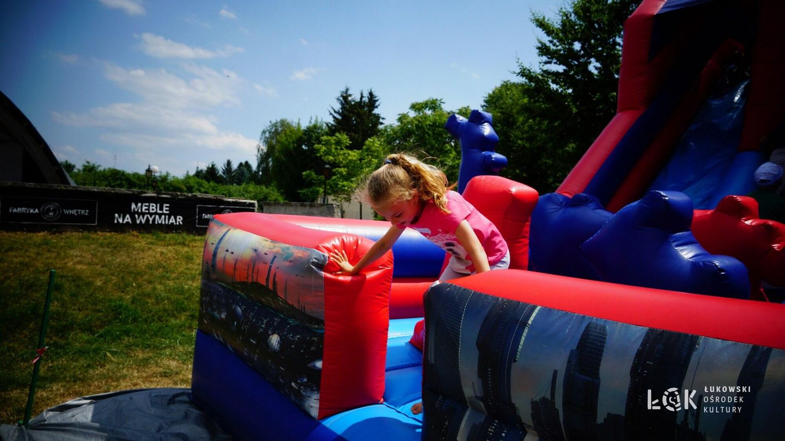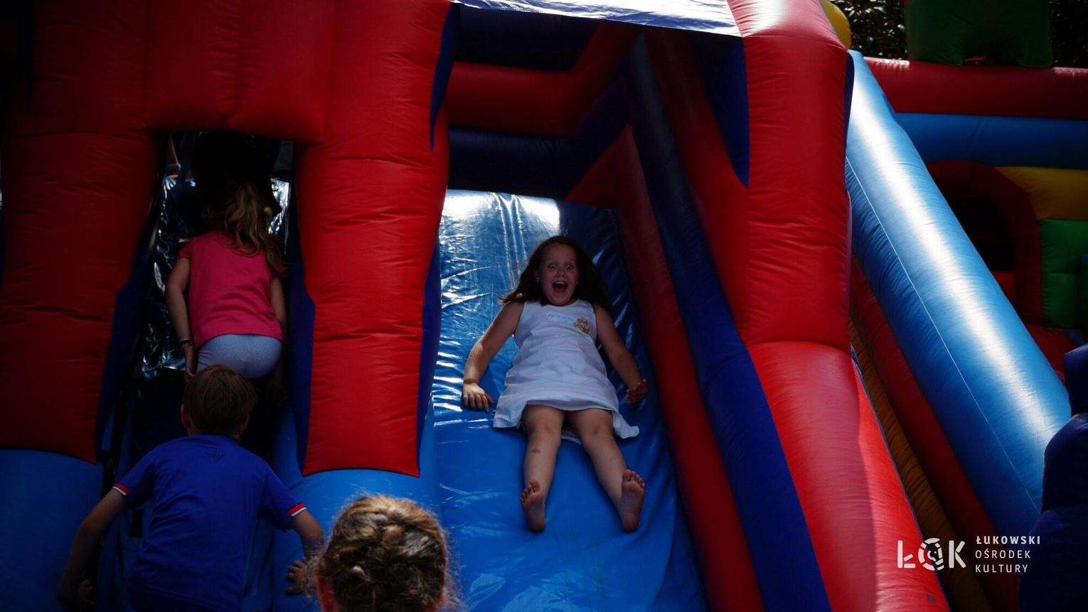 W poniedziałek 7 lipca 2025r. ropoczęły sie półkolonie w Łukowskim Ośrodku Kultury. Pierwszy dzień Wakacji ŁOK 2025 „Wokół zwierząt świata” zaczął się zabawami integracyjnymi. Następnie odbyły się inspirujące i kreatywne zajęcia plastyczne. Podczas tych warsztatów dzieci miały okazję wyrazić swoją wyobraźnię i pasję do zwierząt poprzez tworzenie unikalnych worko-plecaków. Każde dziecko wybrało swoje ulubione zwierzę i namalowało je na powierzchni plecaka, korzystając ze specjalnych markerów do tkanin. Dodatkowo, przestrzeń na plecaku została wykorzystana do przedstawienia innych elementów związanych z wybranym zwierzęciem lub własnych pomysłów, co pozwoliło na jeszcze bardziej osobiste i oryginalne projekty. Uczestnicy zajęć tym samym sposobem stworzyli własne kompozycje na czapkach, które będą nam odtąd towarzyszyć każdego dnia Wakacji ŁOK 2025. Następnie uczestnicy udali się do Parku Miejskiego, gdzie mogli korzystać ze Strefy Rozrywki Smykolandia Anna Siemionek. Była wspaniała zabawa, dmuchańce, lody i wata cukrowa. Na zakończenie pierwszego dnia, dzieci wzięły udział w dogoterapii, którą poprowadziła Monika Kozłowska. Uczestnicy wydając psu komendy, wchodzili w interakcję ze zwierzęciem. Warsztaty te pomagają w rozwoju fizycznym dziecka oraz w kształtowaniu i rozwijaniu umiejętności okazywania emocji i uczuć. Zajęcia te uczą również samodzielności, stwarzając dziecku możliwość wywiązywania się z działań podejmowanych wobec psa. Dzieci odkryły, że kontakt, zabawa i głaskanie odpowiednio przeszkolonego psa, znacząco poprawia samopoczucie zarówno dzieci, jak i dorosłych.