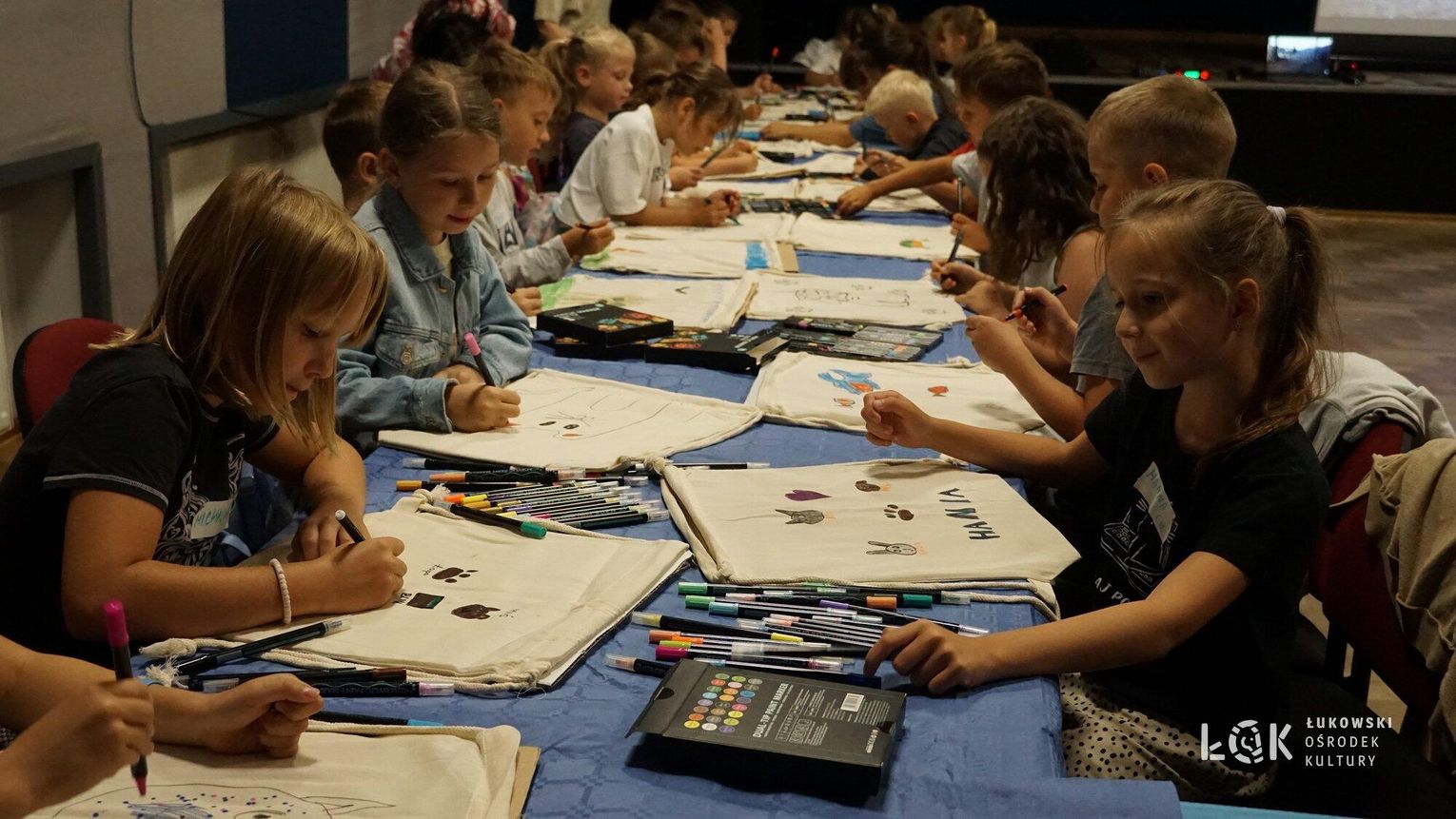 W poniedziałek 7 lipca 2025r. ropoczęły sie półkolonie w Łukowskim Ośrodku Kultury. Pierwszy dzień Wakacji ŁOK 2025 „Wokół zwierząt świata” zaczął się zabawami integracyjnymi. Następnie odbyły się inspirujące i kreatywne zajęcia plastyczne. Podczas tych warsztatów dzieci miały okazję wyrazić swoją wyobraźnię i pasję do zwierząt poprzez tworzenie unikalnych worko-plecaków.