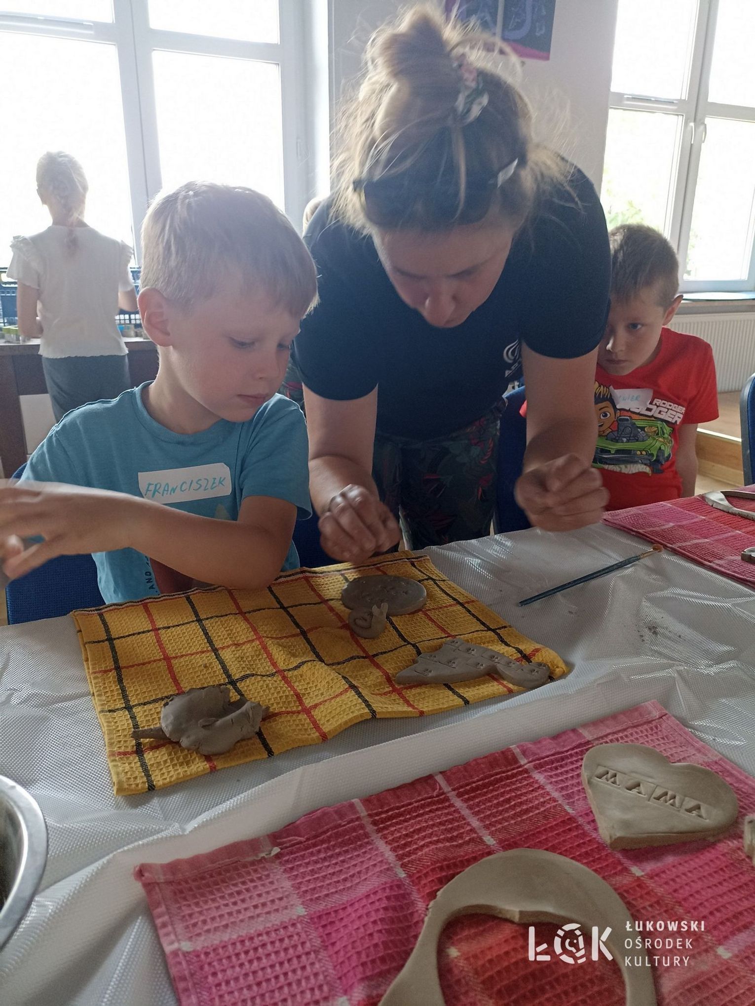 Ta inspirująca opowieść o odwadze, przyjaźni i trosce o przyrodę poruszyła serca dzieci, zapewniając świetną rozrywkę i refleksję na temat ochrony natury. Po seansie, dzieci miały okazję wziąć udział w warsztatach rzemiosła sztuki użytkowej z Pracownią Artystyczną Artyka. Dzieci pod okiem Agaty Krasuskiej, pracowały z gliną i każde z nich mogło stworzyć własne unikalne rzeźby, rozwijając swoją wyobraźnię i zdolności manualne. To kreatywne zajęcie pozwoliło uczestnikom wyrazić siebie i nauczyć się podstaw pracy z tym naturalnym materiałem. Po intensywnych warsztatach przyszedł czas na ruch i zabawę. Uczestnicy brali udział w różnorodnych grach i zabawach ruchowych, które nie tylko dostarczyły dużo śmiechu, ale także pozwoliły na aktywne spędzenie czasu.