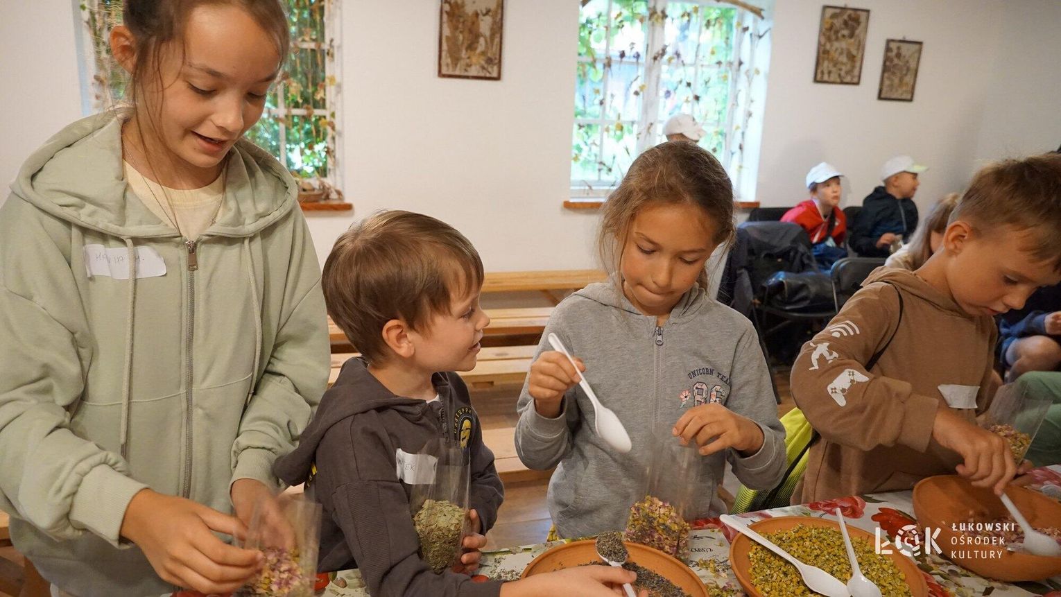 To atrakcja dla tych wszystkich, którzy szukają wytchnienia od zgiełku miasta. Wizyta w Ziołowym Zakątku rozpoczęła się od warsztatów edukacyjnych, podczas których omówiono różne zioła, aby uczestnicy mogli poznać ich zapach i lepiej zrozumieć ich działanie oraz właściowości lecznicze. Wszystkie dzieci miały okazję skomponować własną herbatę, korzystając z naturalnych olejków eterycznych i ziół. Następnie, korzystając ze zdobytej wiedzy, dzieci stworzyły własne mieszanki zapachowe, które później wykorzystały do wykonania zawieszek zapachowych. Po pełnych wrażeń i nauki zajęciach, uczestnicy wycieczki zrelaksowali się na pysznym obiedzie - prawdziwej uczcie w lokalnej Karczmie. Na zakończenie wizyty w Podlaskim Ogrodzie Ziołowym miało miejsce zwiedzanie ogrodu botanicznego, by lepiej poznać florę oraz faunę podczas spaceru edukacyjnego. Pomimo niesprzyjajęcej pogody to był bardzo pozytywny, wesoły i aktywny dzień.