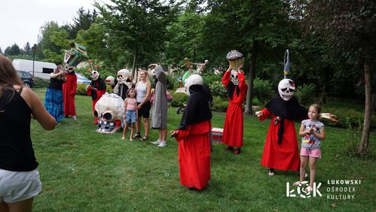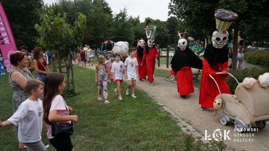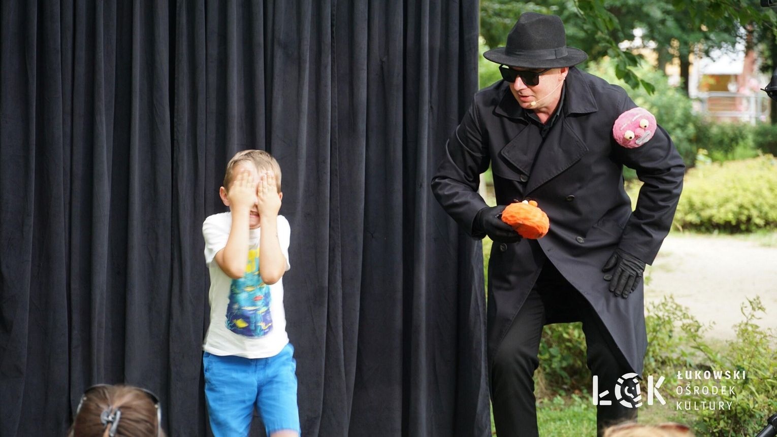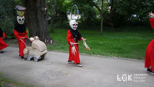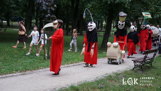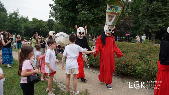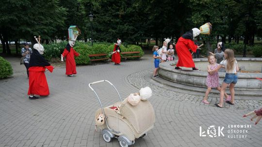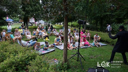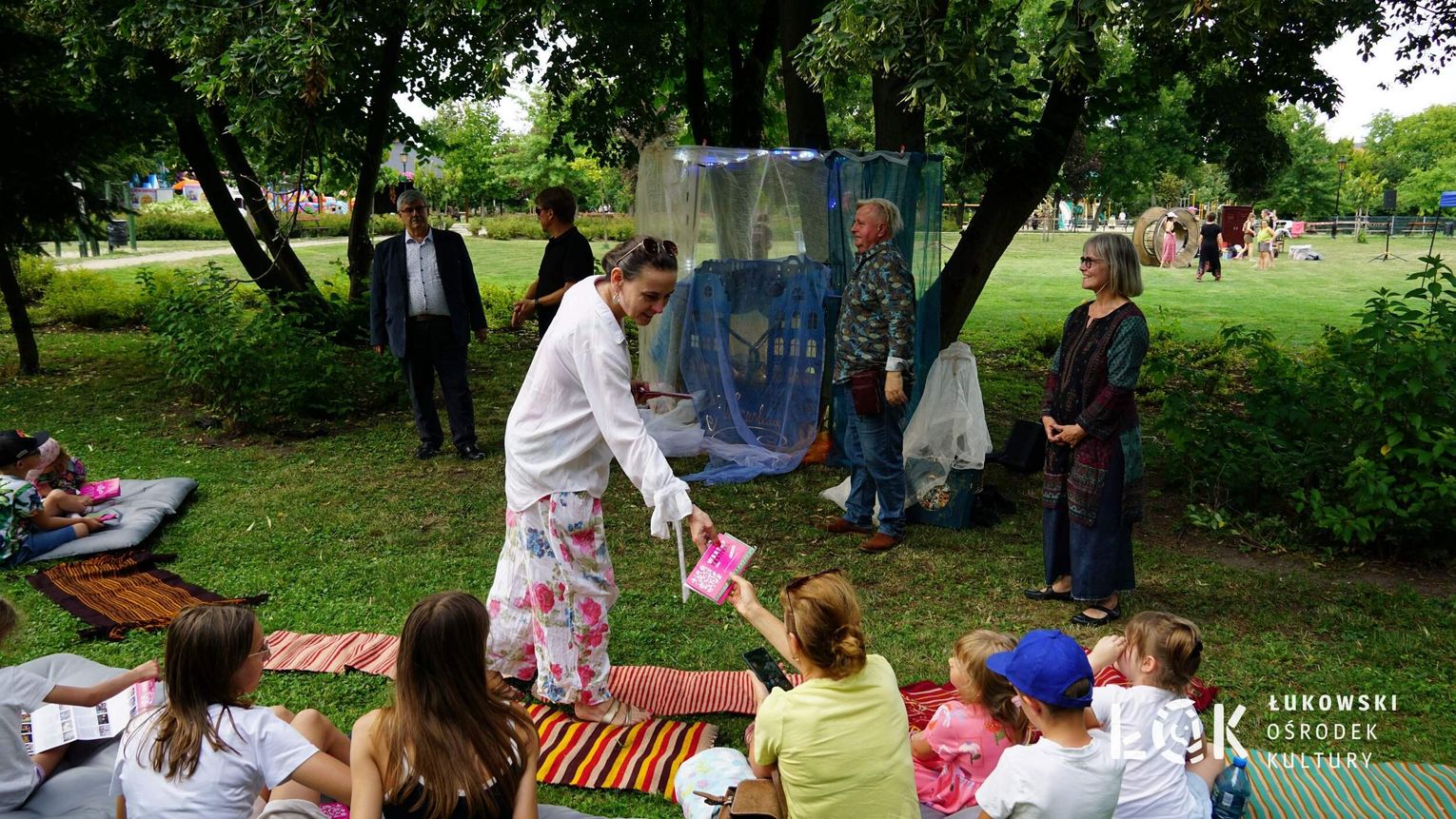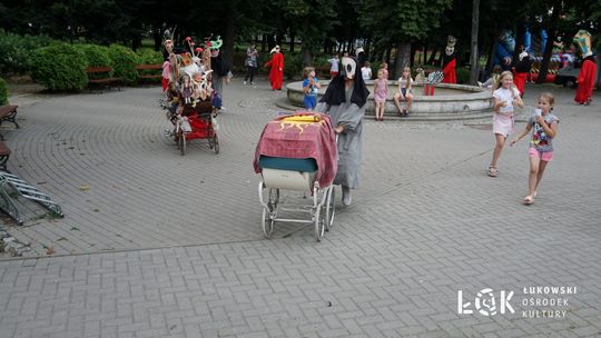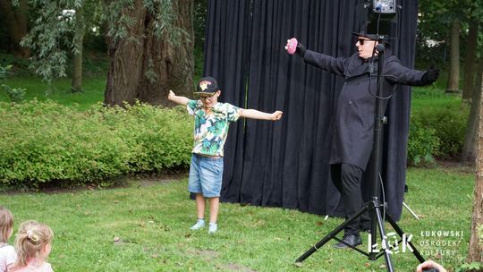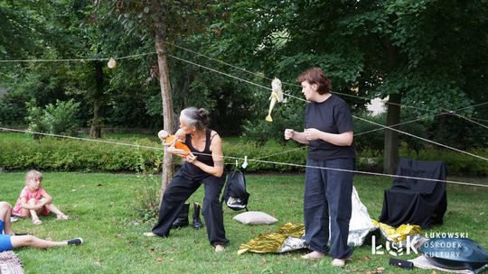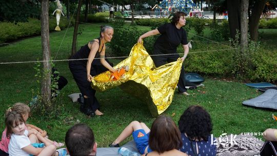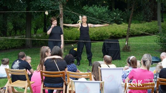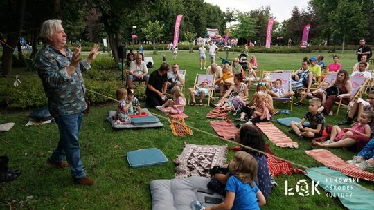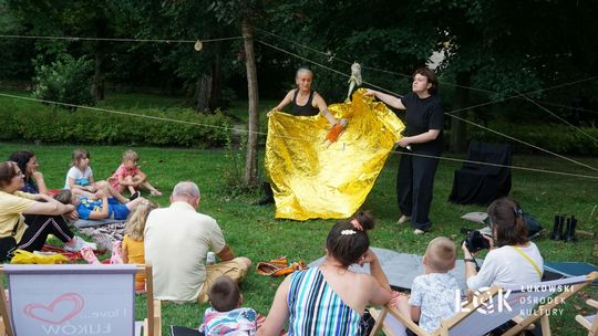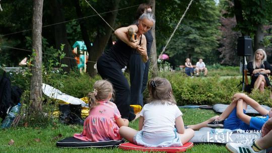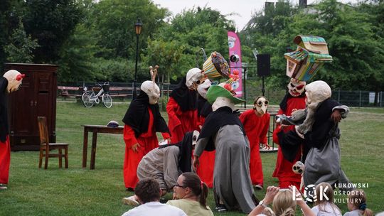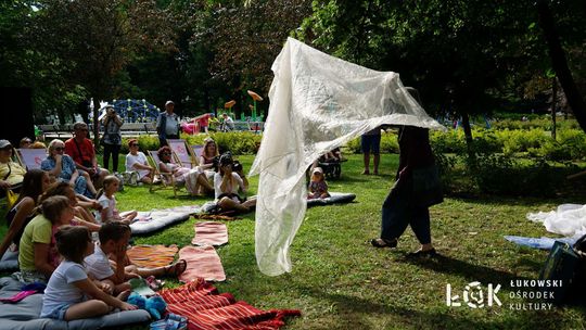 Mieszkańcy mogli uczestniczyć w niezwykłych spektaklach teatralnych, które rozgrywały się w plenerze w Parku Miejskim w Łukowie. Były to familijne przedstawienia trwające około 45 minut, spektakle skierowane zarówno do dzieci, jak i dorosłych. Sceny pełne emocji, magii i humoru przenosiły widzów w świat wyobraźni, tworząc niepowtarzalną atmosferę. Często pojawiały się elementy interakcji z publicznością, co dodatkowo zwiększało zaangażowanie widzów i sprawiało, że wydarzenie nabierało jeszcze bardziej magicznego charakteru.