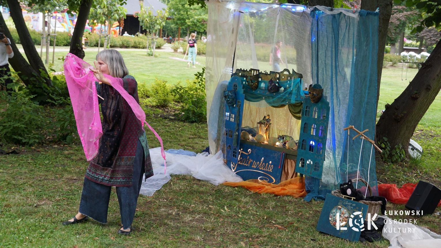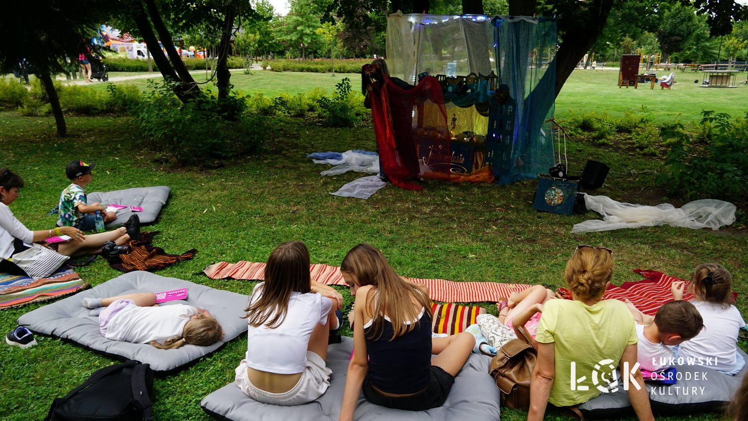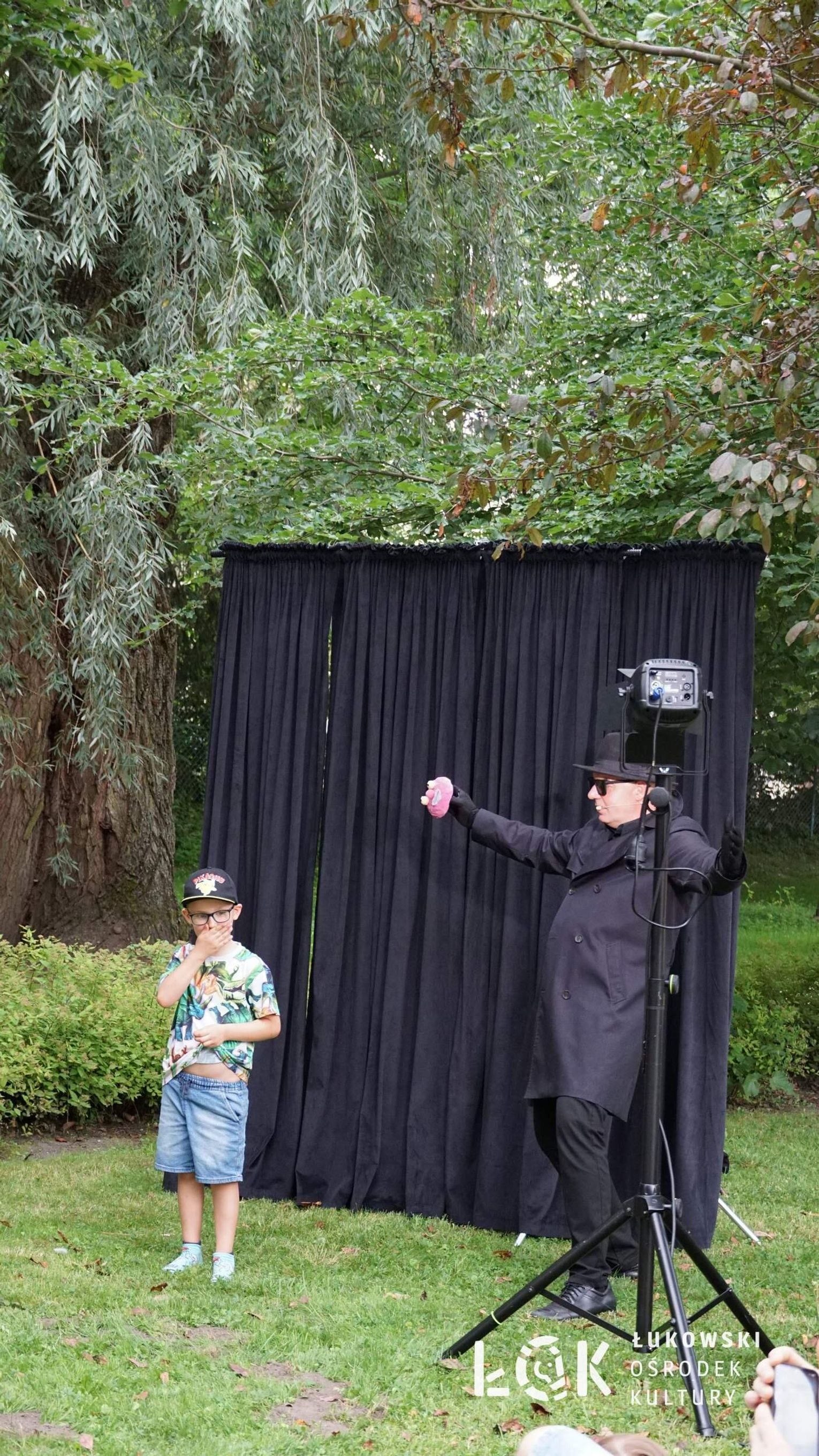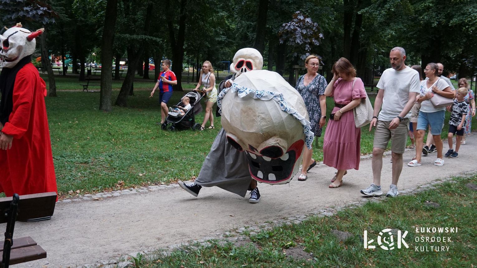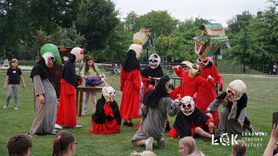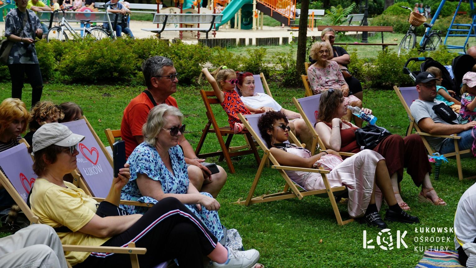 Mieszkańcy mogli uczestniczyć w niezwykłych spektaklach teatralnych, które rozgrywały się w plenerze w Parku Miejskim w Łukowie. Były to familijne przedstawienia trwające około 45 minut, spektakle skierowane zarówno do dzieci, jak i dorosłych. Sceny pełne emocji, magii i humoru przenosiły widzów w świat wyobraźni, tworząc niepowtarzalną atmosferę. Często pojawiały się elementy interakcji z publicznością, co dodatkowo zwiększało zaangażowanie widzów i sprawiało, że wydarzenie nabierało jeszcze bardziej magicznego charakteru.
