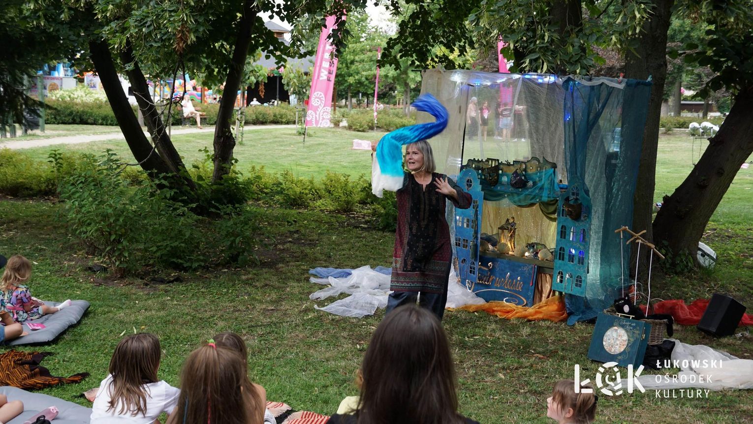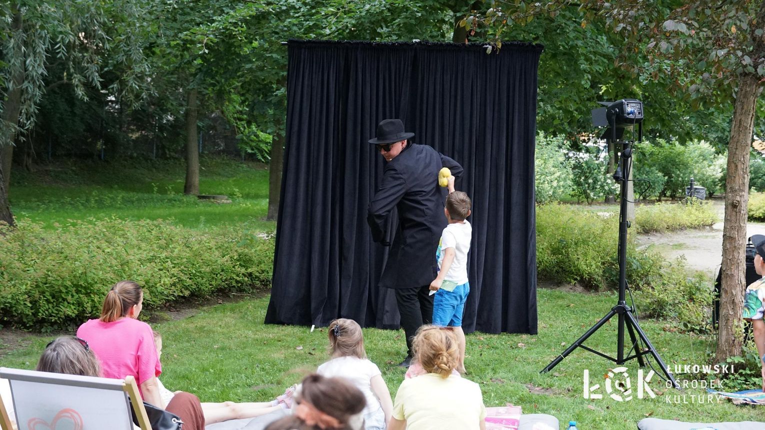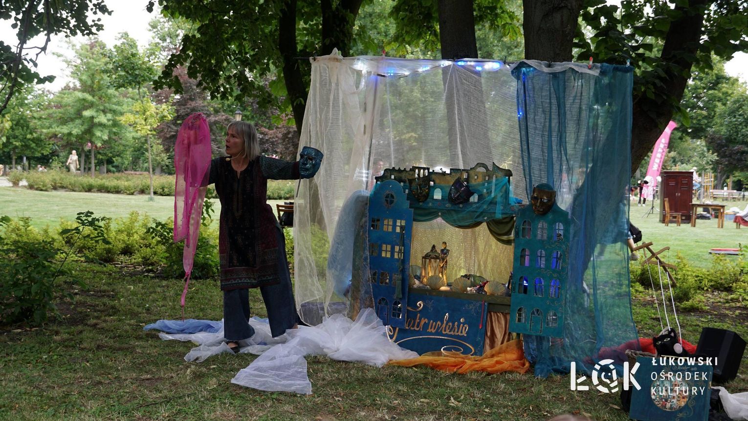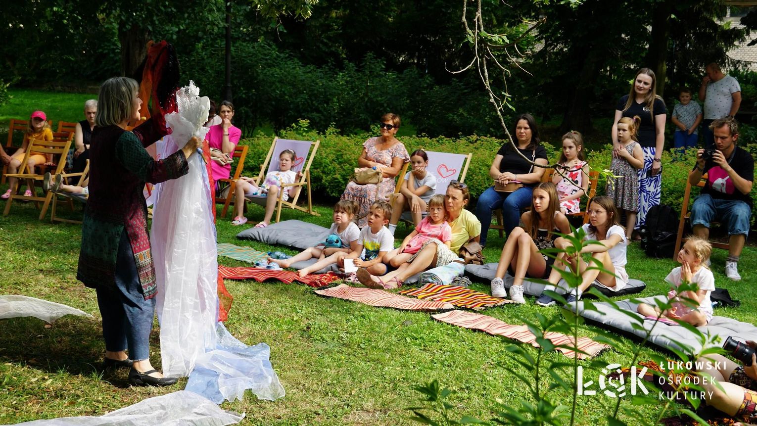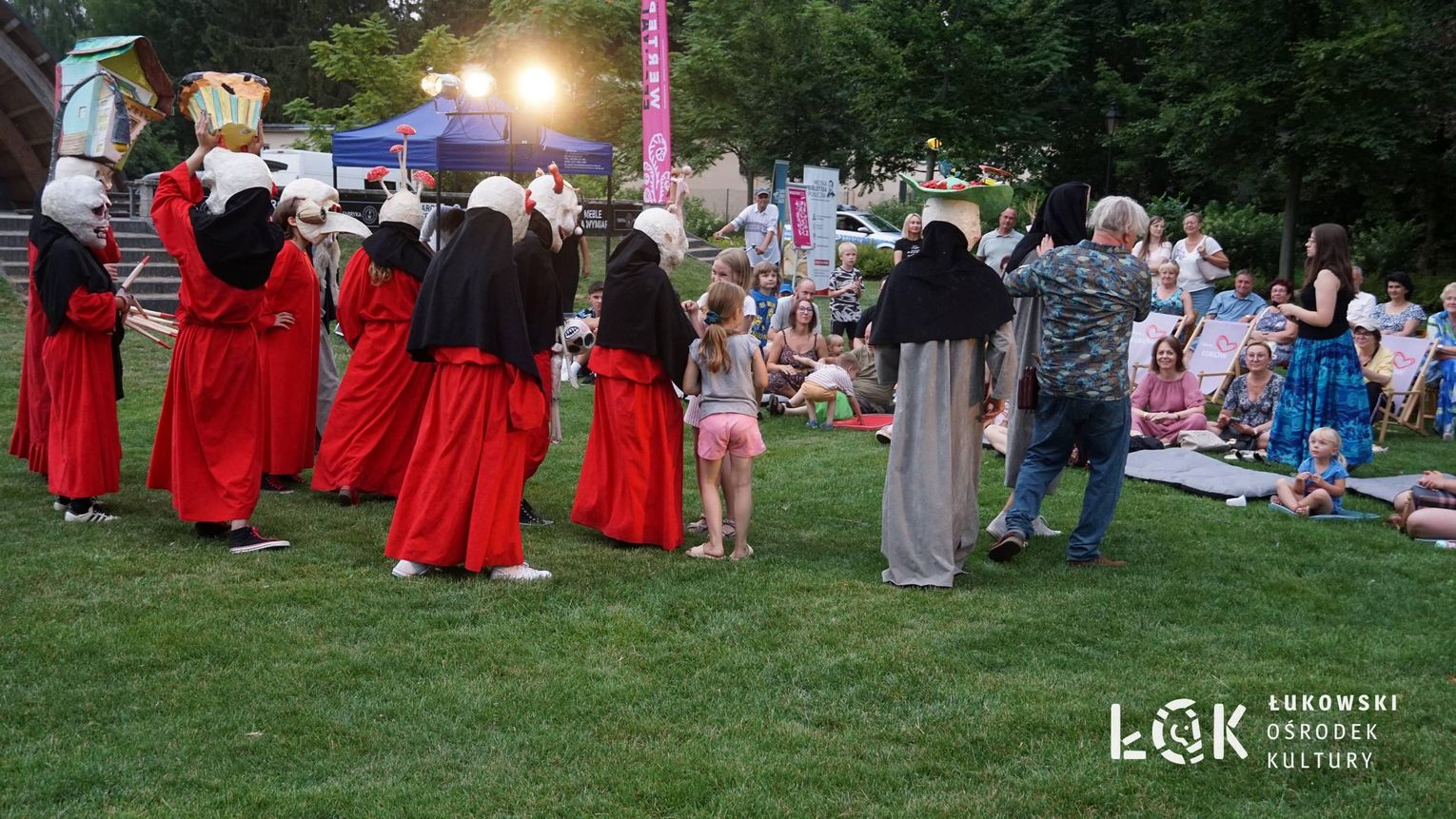 Mieszkańcy mogli uczestniczyć w niezwykłych spektaklach teatralnych, które rozgrywały się w plenerze w Parku Miejskim w Łukowie. Były to familijne przedstawienia trwające około 45 minut, spektakle skierowane zarówno do dzieci, jak i dorosłych. Sceny pełne emocji, magii i humoru przenosiły widzów w świat wyobraźni, tworząc niepowtarzalną atmosferę. Często pojawiały się elementy interakcji z publicznością, co dodatkowo zwiększało zaangażowanie widzów i sprawiało, że wydarzenie nabierało jeszcze bardziej magicznego charakteru.