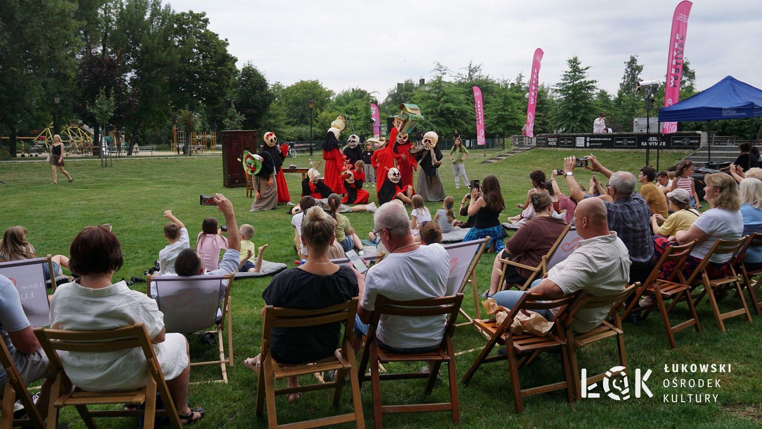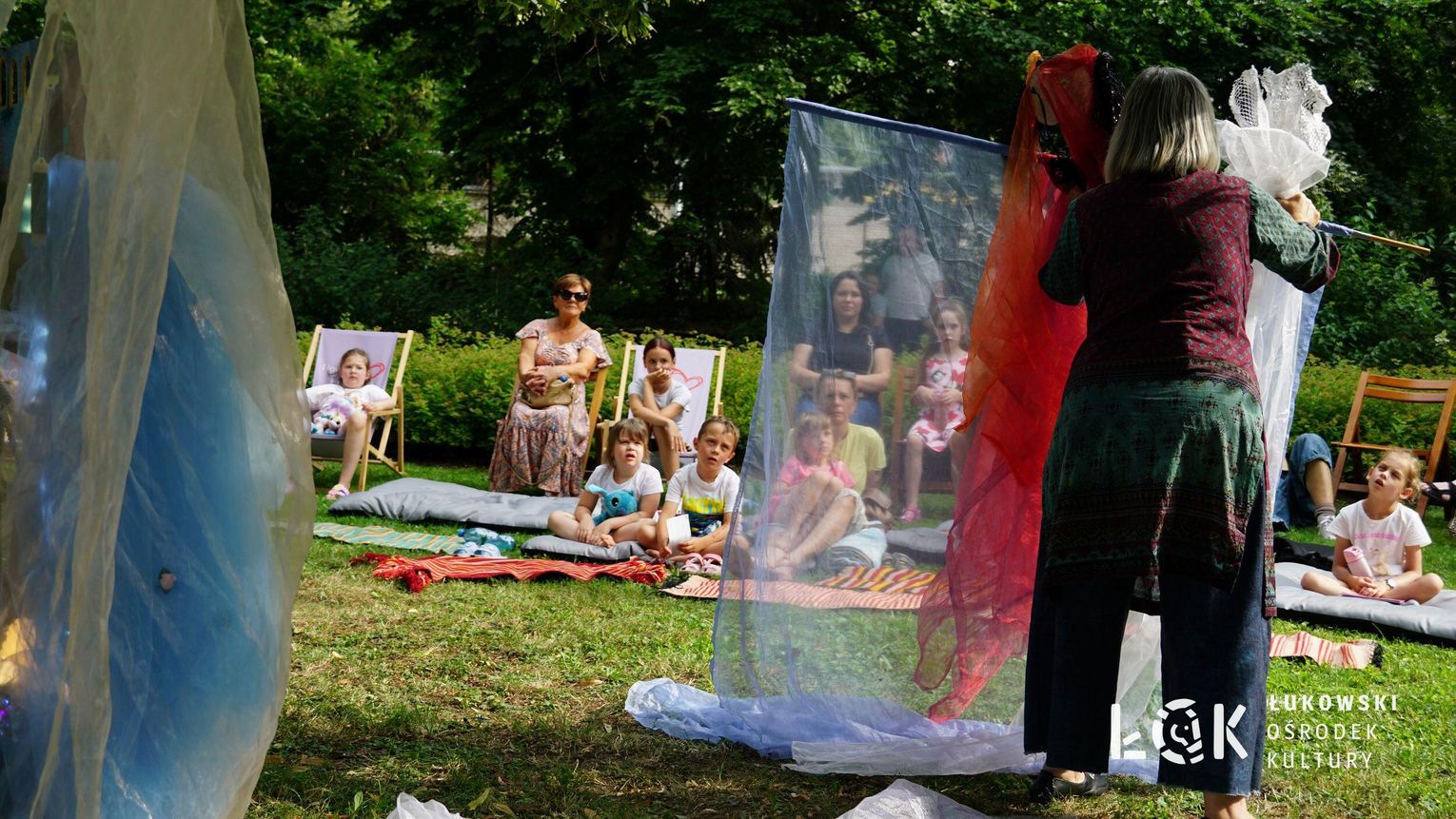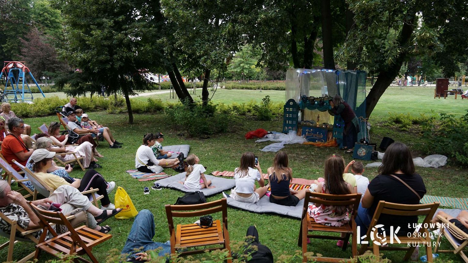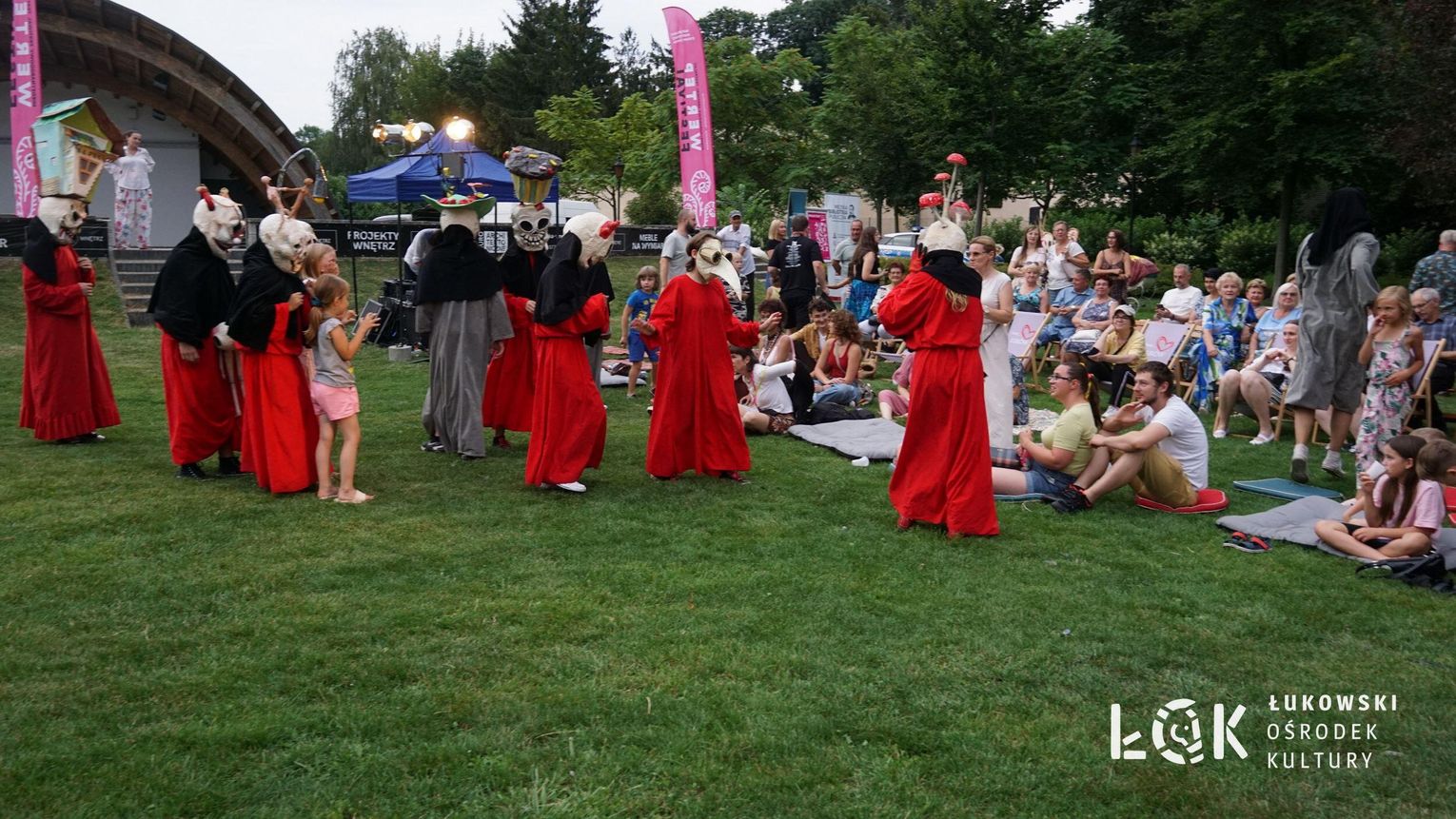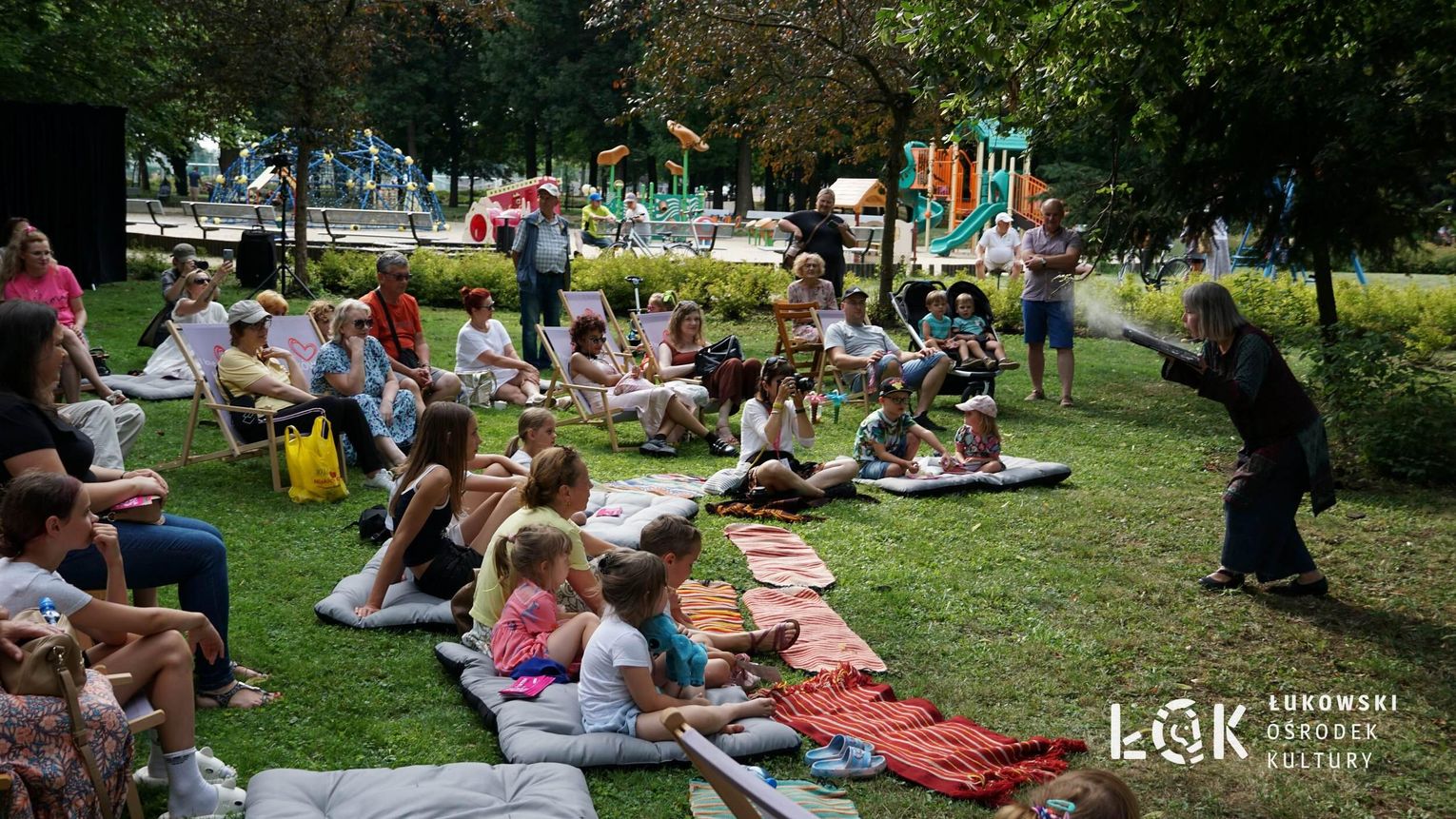 Mieszkańcy mogli uczestniczyć w niezwykłych spektaklach teatralnych, które rozgrywały się w plenerze w Parku Miejskim w Łukowie. Były to familijne przedstawienia trwające około 45 minut, spektakle skierowane zarówno do dzieci, jak i dorosłych. Sceny pełne emocji, magii i humoru przenosiły widzów w świat wyobraźni, tworząc niepowtarzalną atmosferę. Często pojawiały się elementy interakcji z publicznością, co dodatkowo zwiększało zaangażowanie widzów i sprawiało, że wydarzenie nabierało jeszcze bardziej magicznego charakteru.