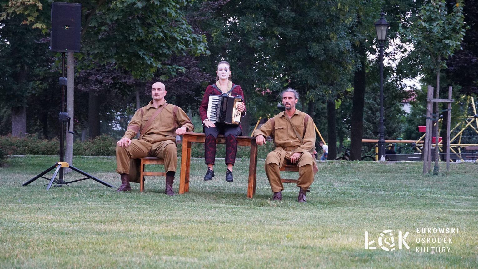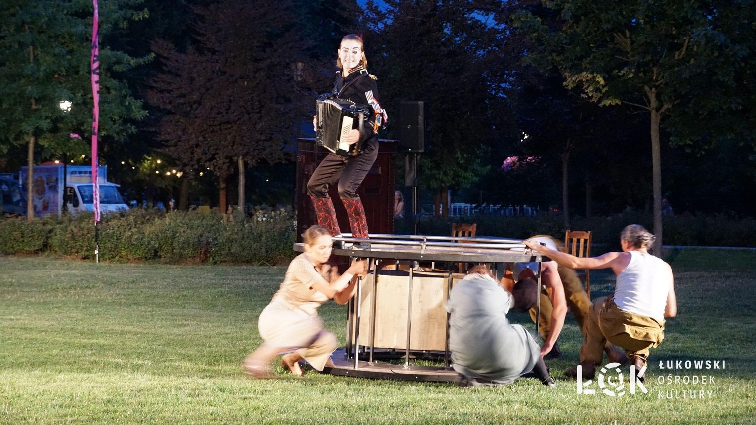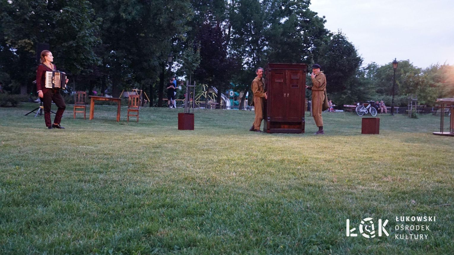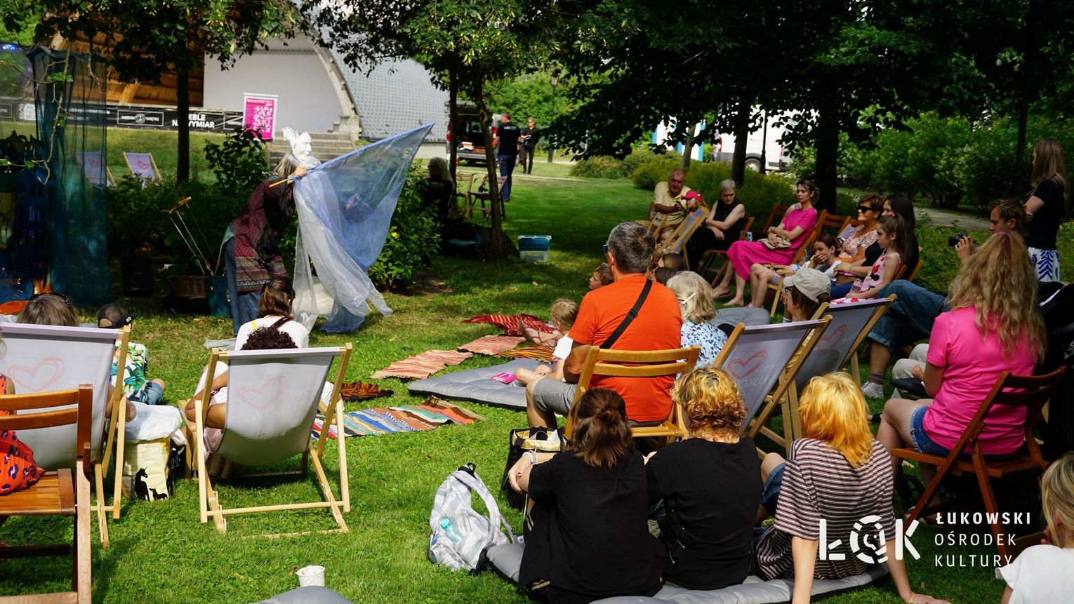 Mieszkańcy mogli uczestniczyć w niezwykłych spektaklach teatralnych, które rozgrywały się w plenerze w Parku Miejskim w Łukowie. Były to familijne przedstawienia trwające około 45 minut, spektakle skierowane zarówno do dzieci, jak i dorosłych. Sceny pełne emocji, magii i humoru przenosiły widzów w świat wyobraźni, tworząc niepowtarzalną atmosferę. Często pojawiały się elementy interakcji z publicznością, co dodatkowo zwiększało zaangażowanie widzów i sprawiało, że wydarzenie nabierało jeszcze bardziej magicznego charakteru.