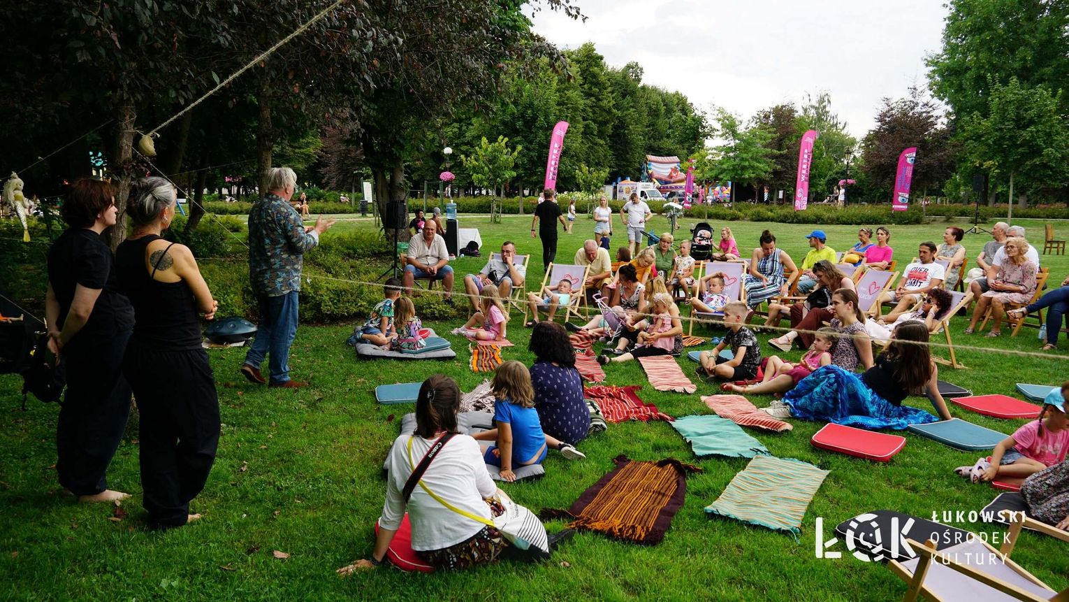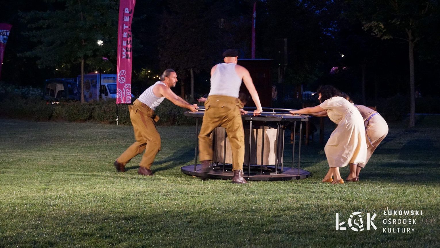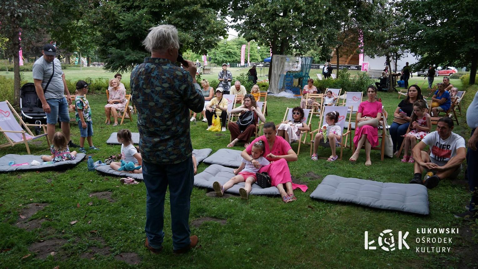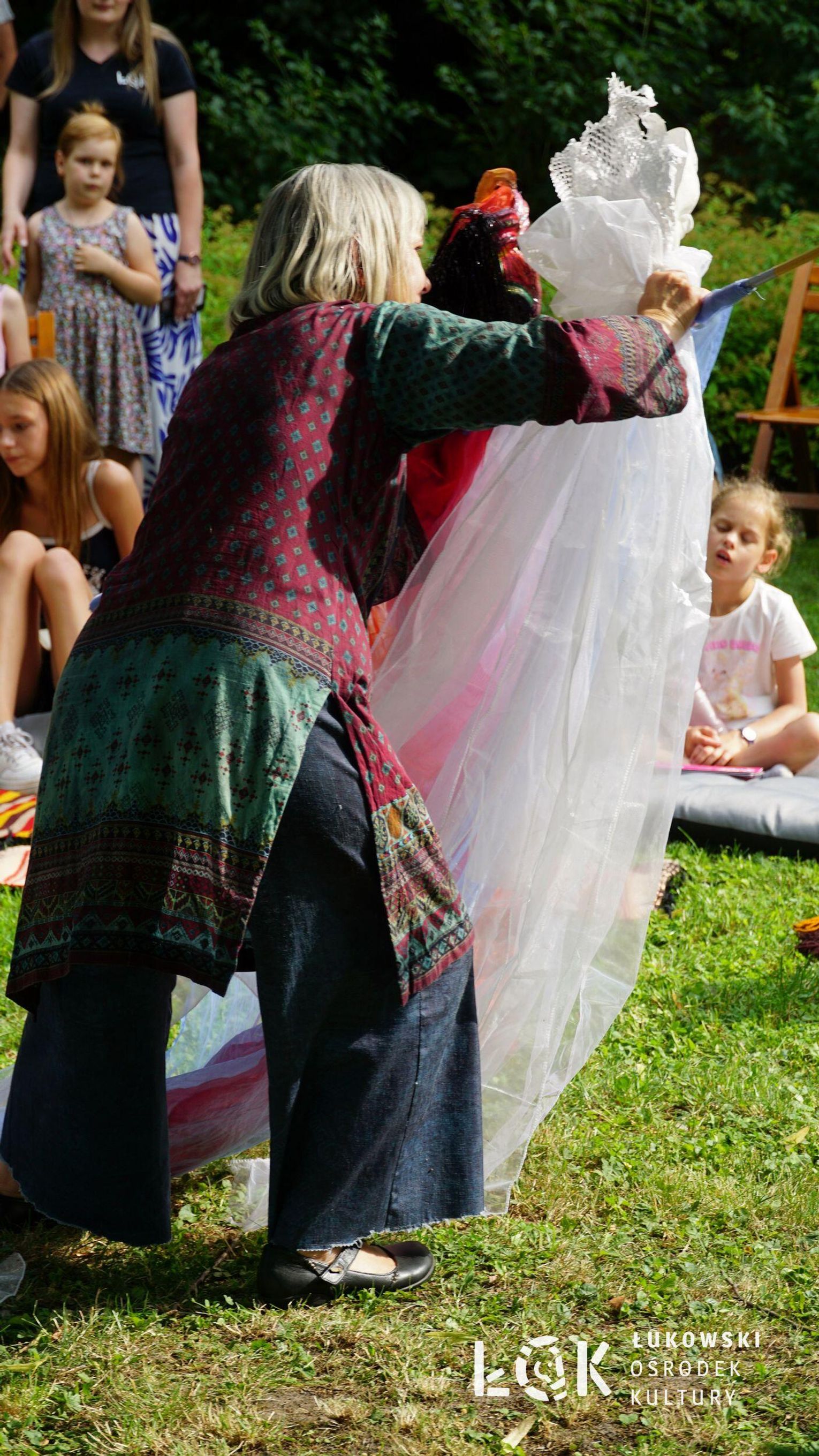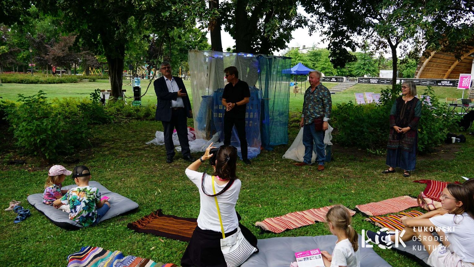 Mieszkańcy mogli uczestniczyć w niezwykłych spektaklach teatralnych, które rozgrywały się w plenerze w Parku Miejskim w Łukowie. Były to familijne przedstawienia trwające około 45 minut, spektakle skierowane zarówno do dzieci, jak i dorosłych. Sceny pełne emocji, magii i humoru przenosiły widzów w świat wyobraźni, tworząc niepowtarzalną atmosferę. Często pojawiały się elementy interakcji z publicznością, co dodatkowo zwiększało zaangażowanie widzów i sprawiało, że wydarzenie nabierało jeszcze bardziej magicznego charakteru.