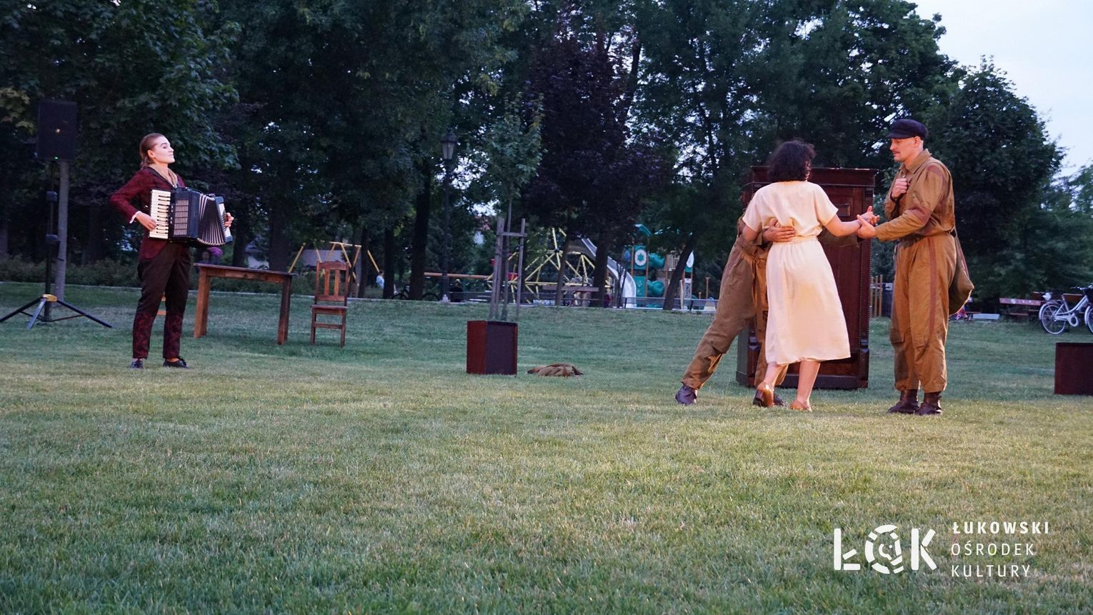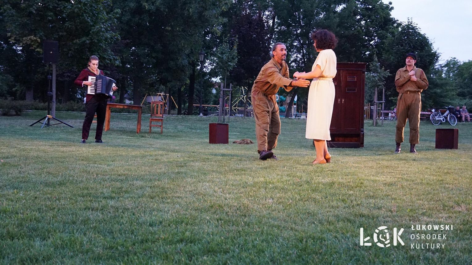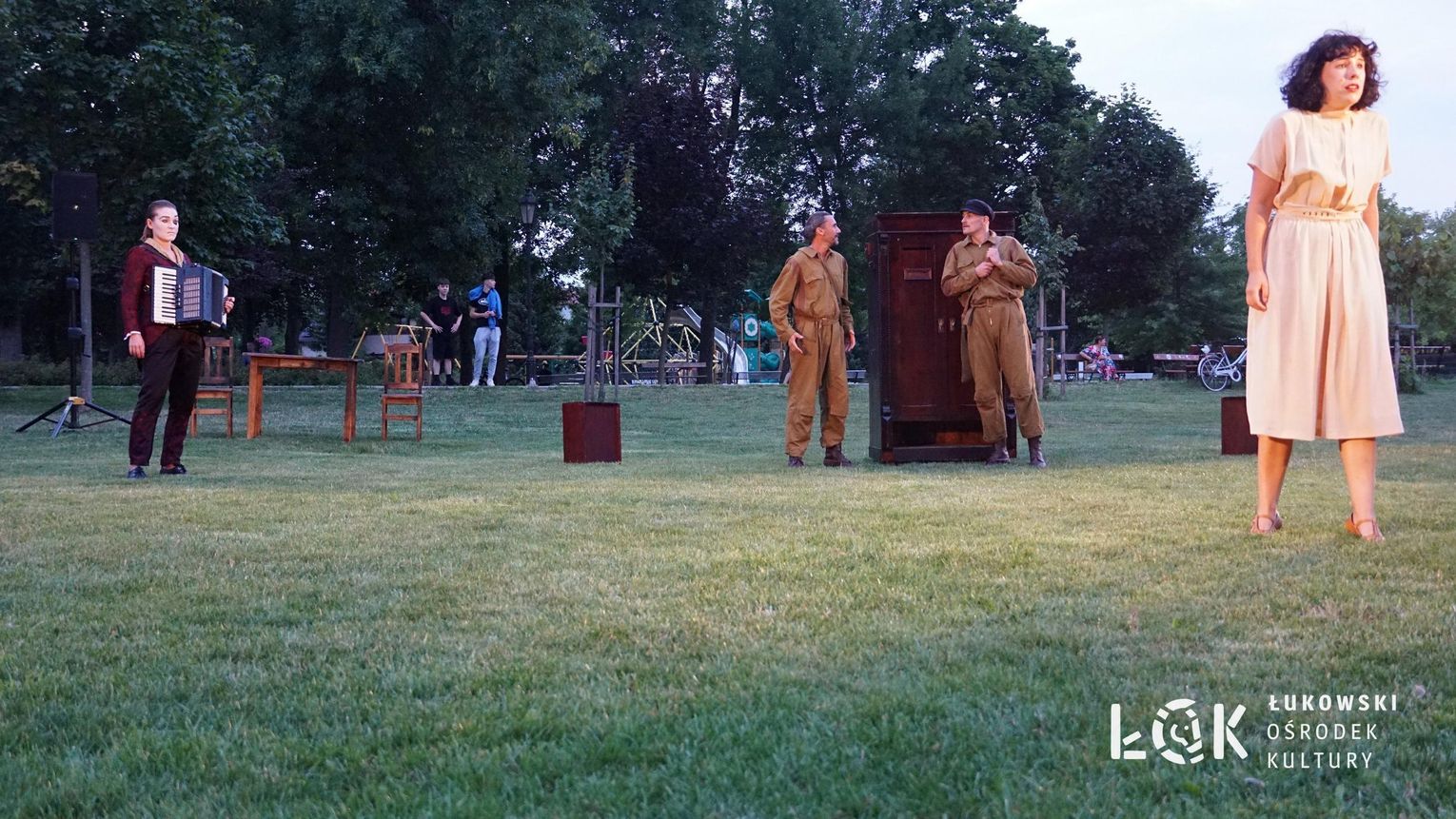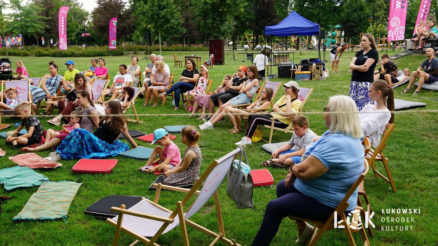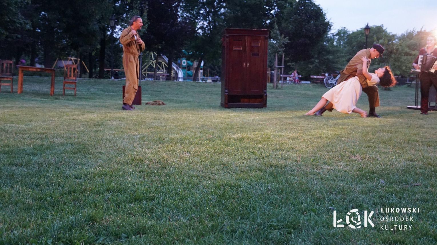 Mieszkańcy mogli uczestniczyć w niezwykłych spektaklach teatralnych, które rozgrywały się w plenerze w Parku Miejskim w Łukowie. Były to familijne przedstawienia trwające około 45 minut, spektakle skierowane zarówno do dzieci, jak i dorosłych. Sceny pełne emocji, magii i humoru przenosiły widzów w świat wyobraźni, tworząc niepowtarzalną atmosferę. Często pojawiały się elementy interakcji z publicznością, co dodatkowo zwiększało zaangażowanie widzów i sprawiało, że wydarzenie nabierało jeszcze bardziej magicznego charakteru.