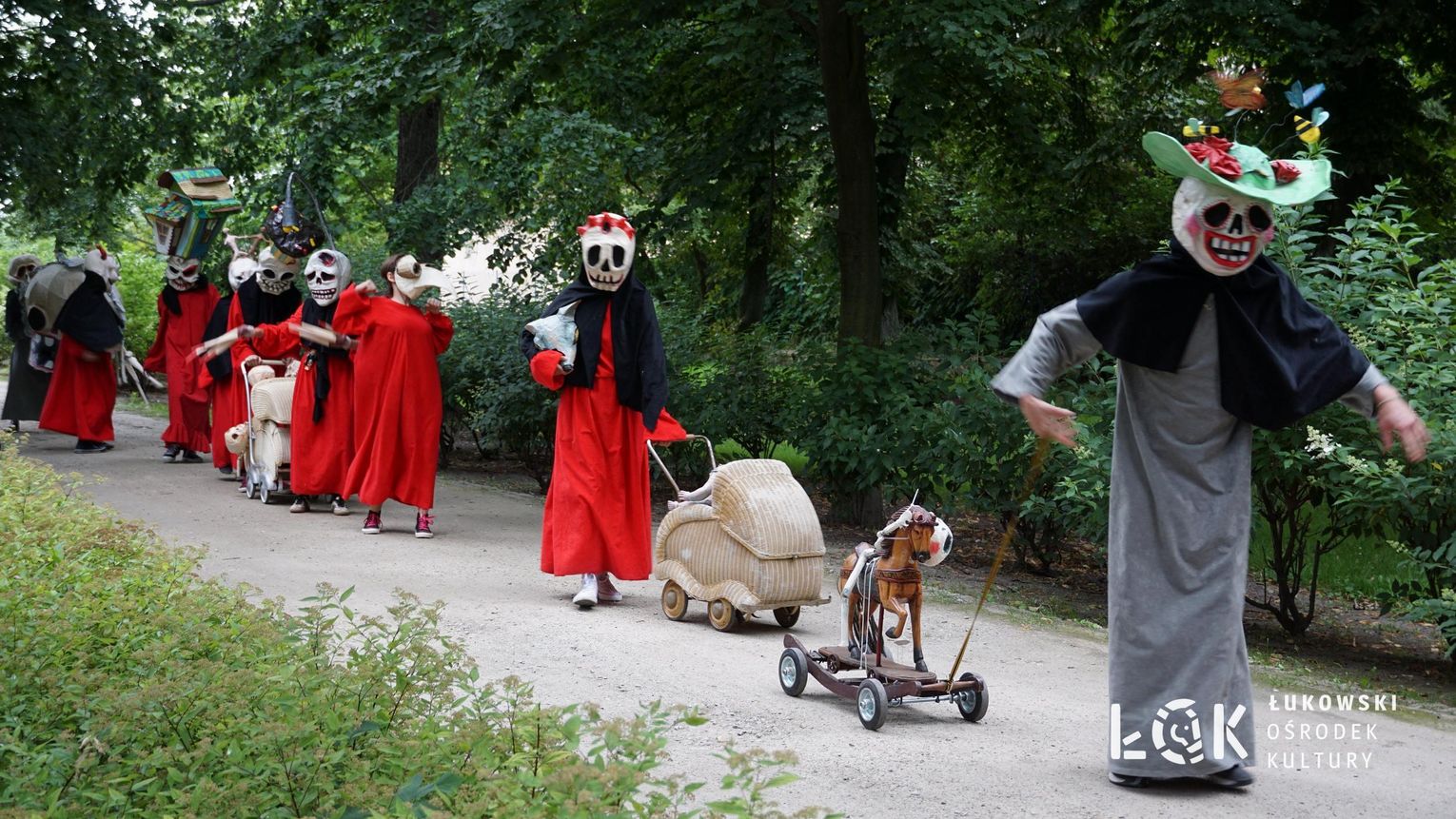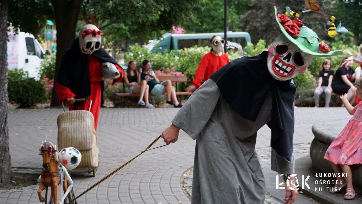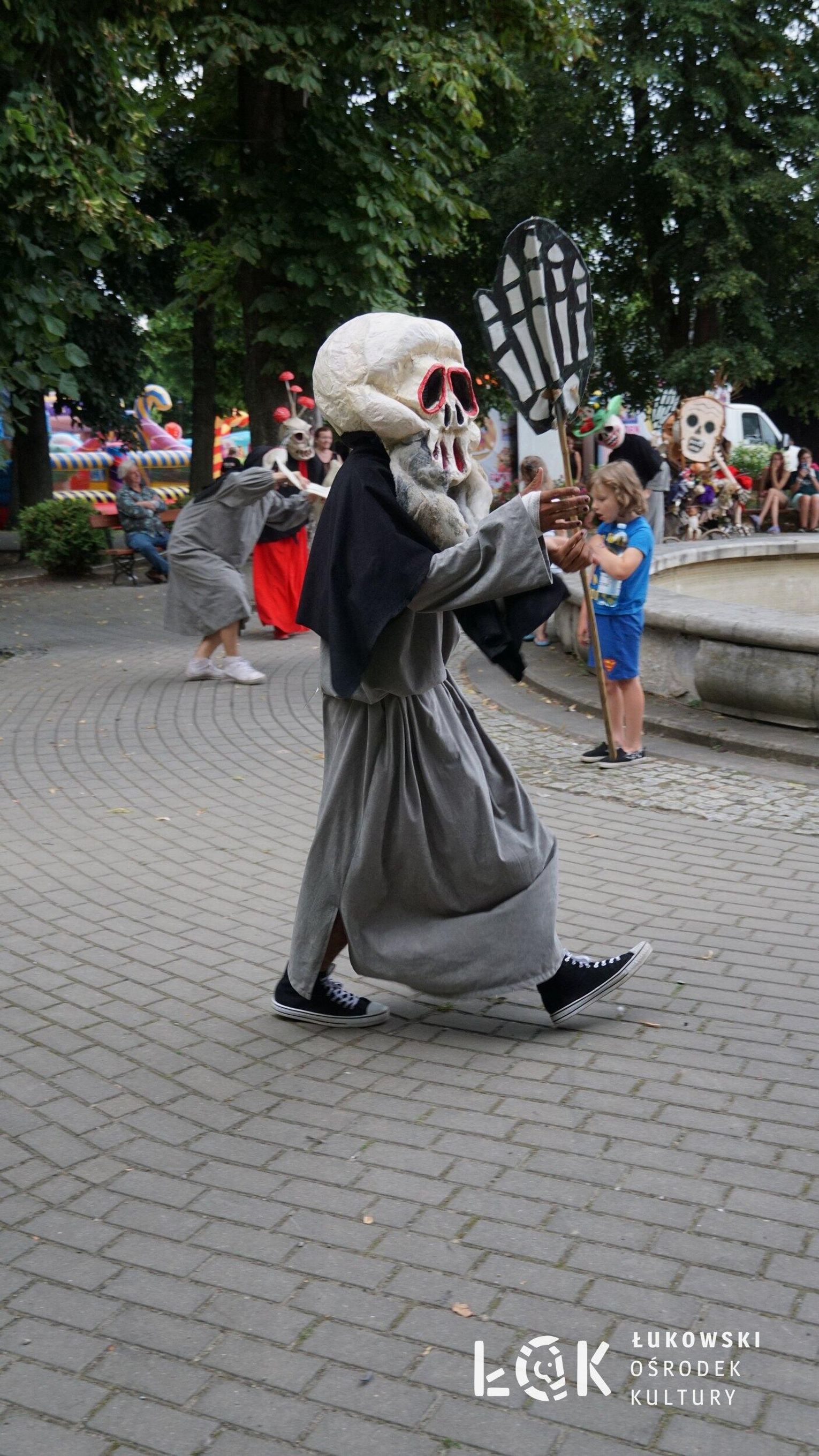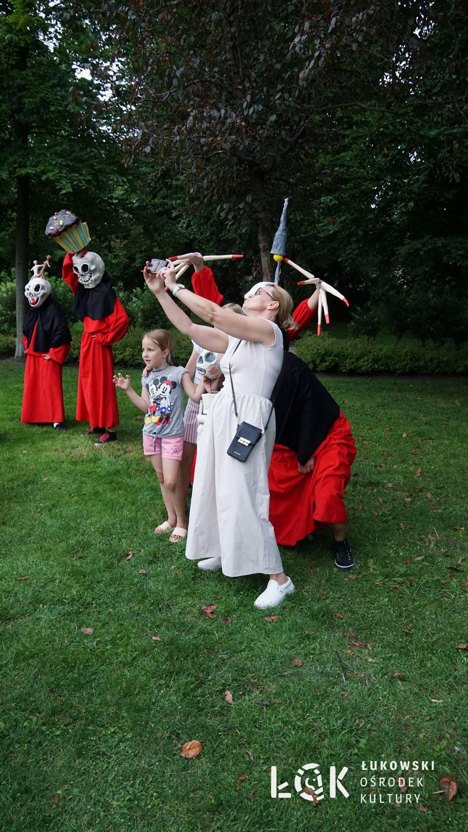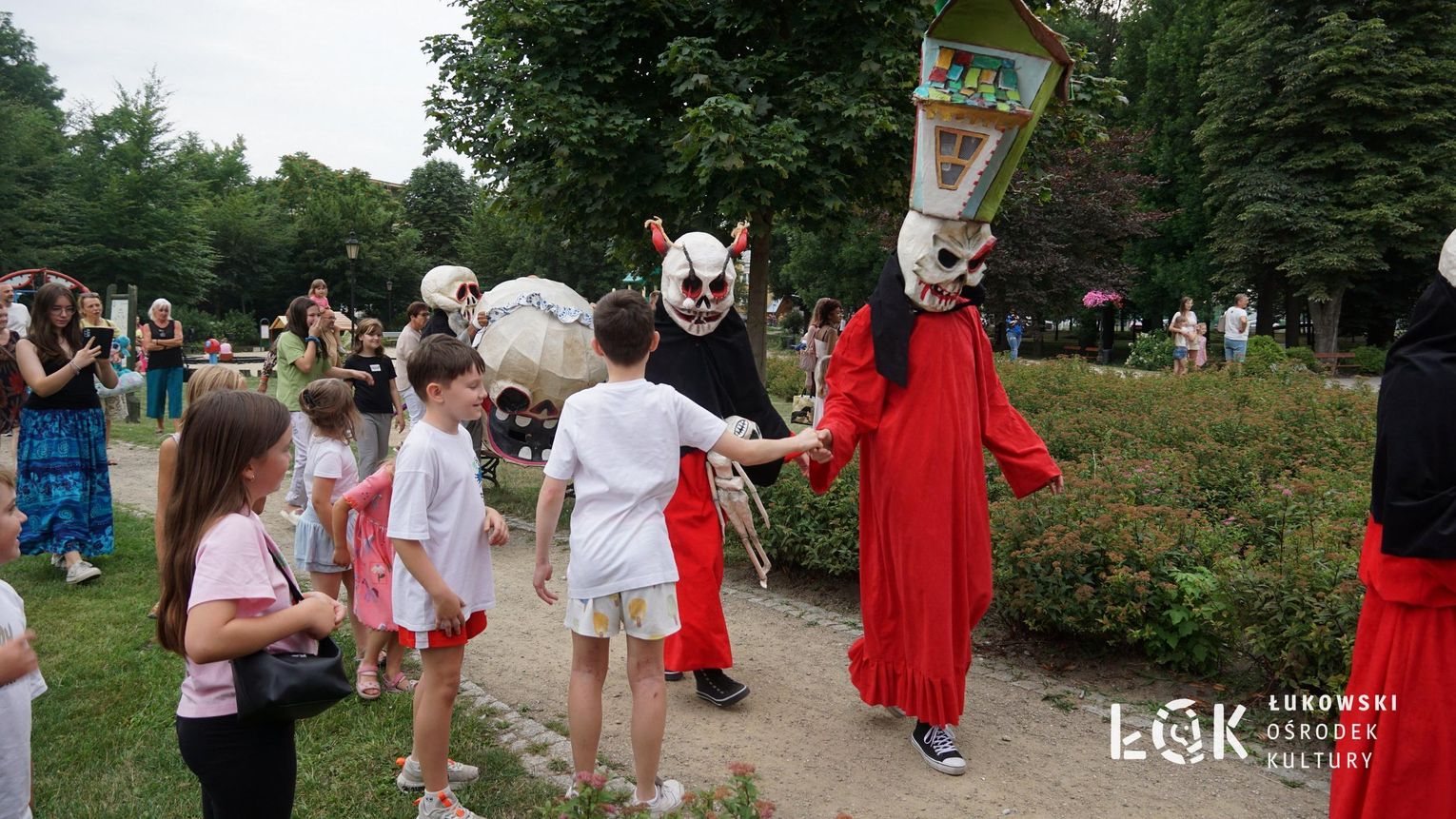To niezwykłe widowisko, które zamiast strachu i makabry wywołało uczucie radości, energii i tajemnicy, wciągnęło publiczność w świat kolorowych masek, kapeluszy, megamarionet i wielkich, zaskakujących dłoni. Korowód postaci, spacerujących powoli alejami w parku, z ciekawością spoglądał na zgromadzonych, zatrzymywał się, zapraszał do tańca i wspólnej zabawy.