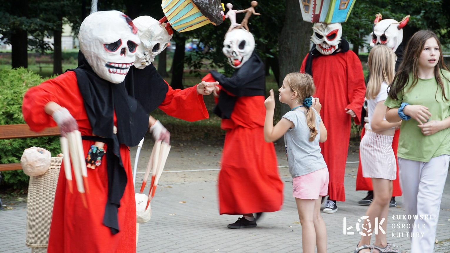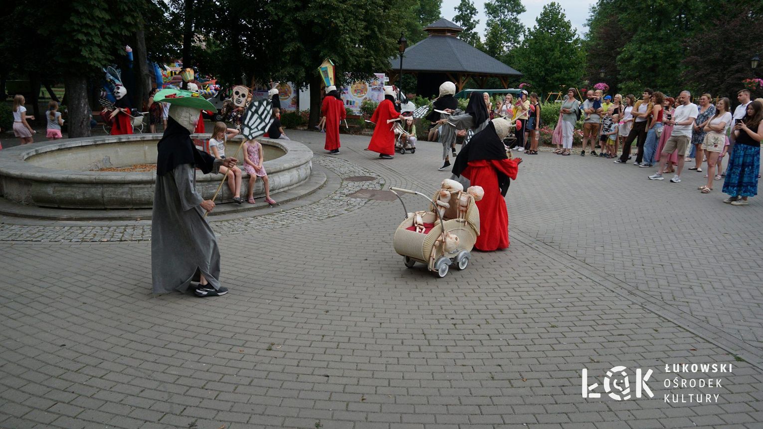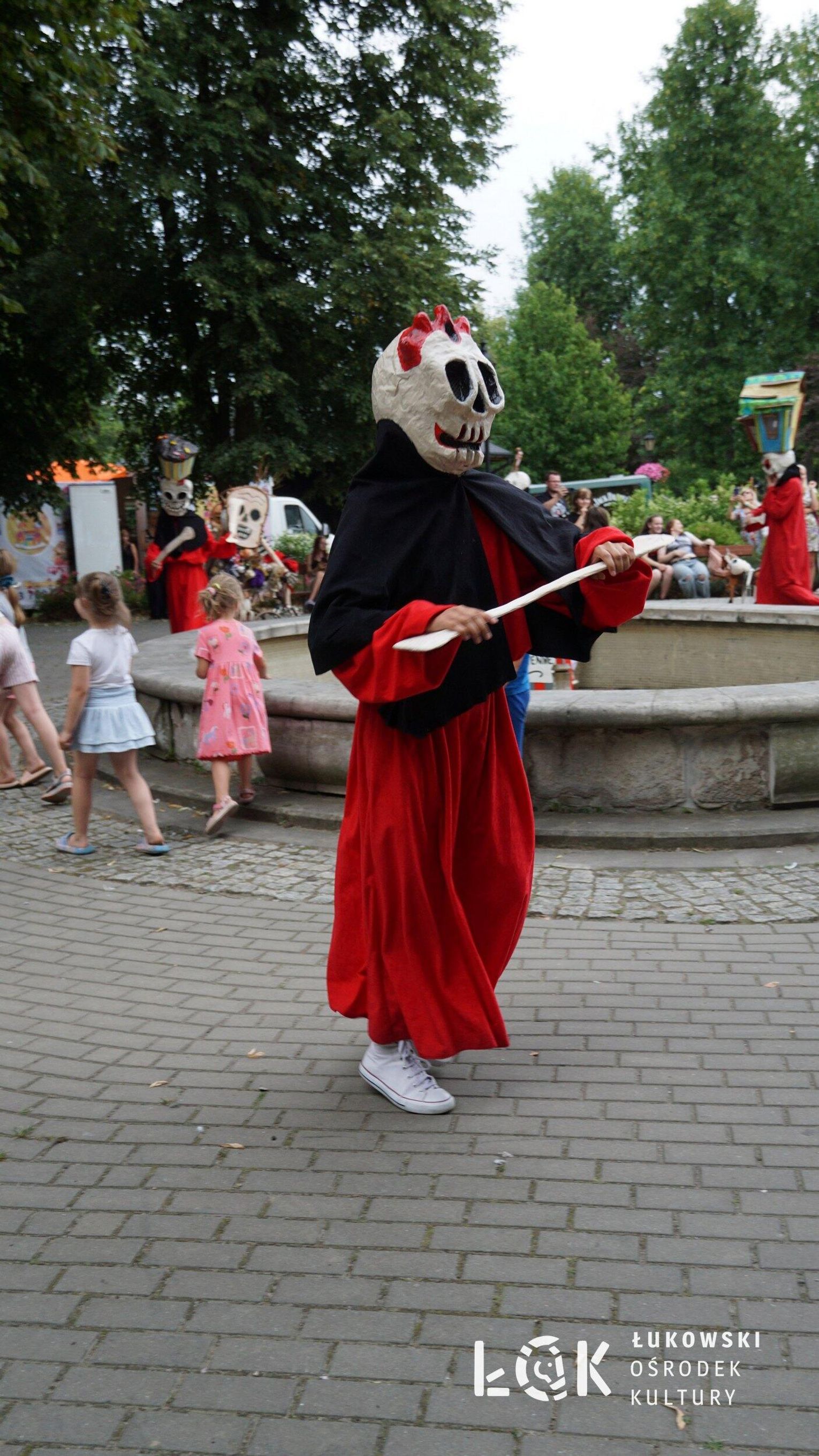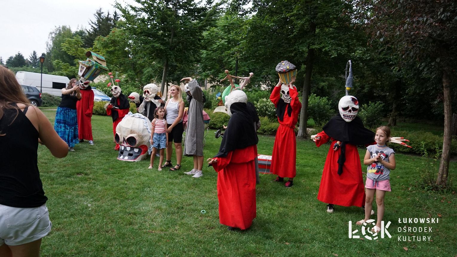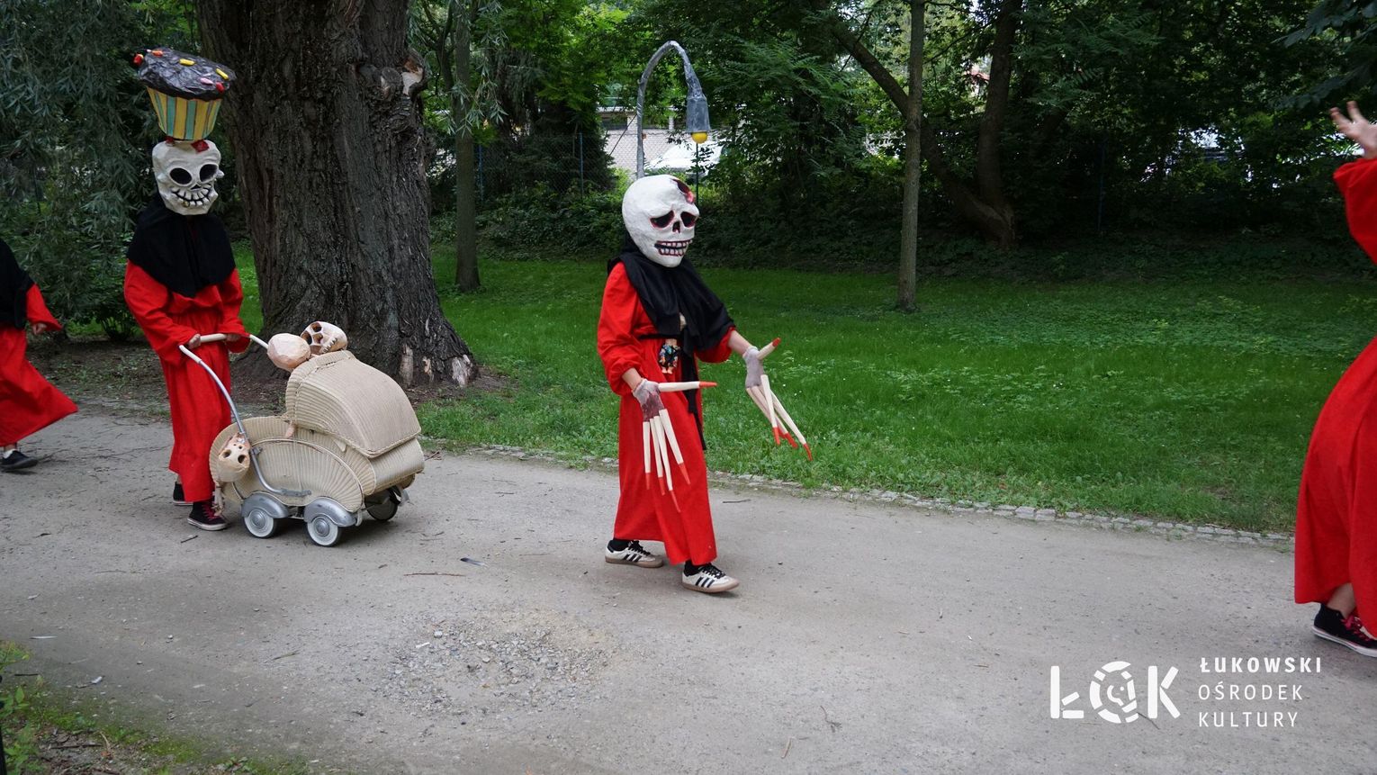 To niezwykłe widowisko, które zamiast strachu i makabry wywołało uczucie radości, energii i tajemnicy, wciągnęło publiczność w świat kolorowych masek, kapeluszy, megamarionet i wielkich, zaskakujących dłoni. Korowód postaci, spacerujących powoli alejami w parku, z ciekawością spoglądał na zgromadzonych, zatrzymywał się, zapraszał do tańca i wspólnej zabawy.