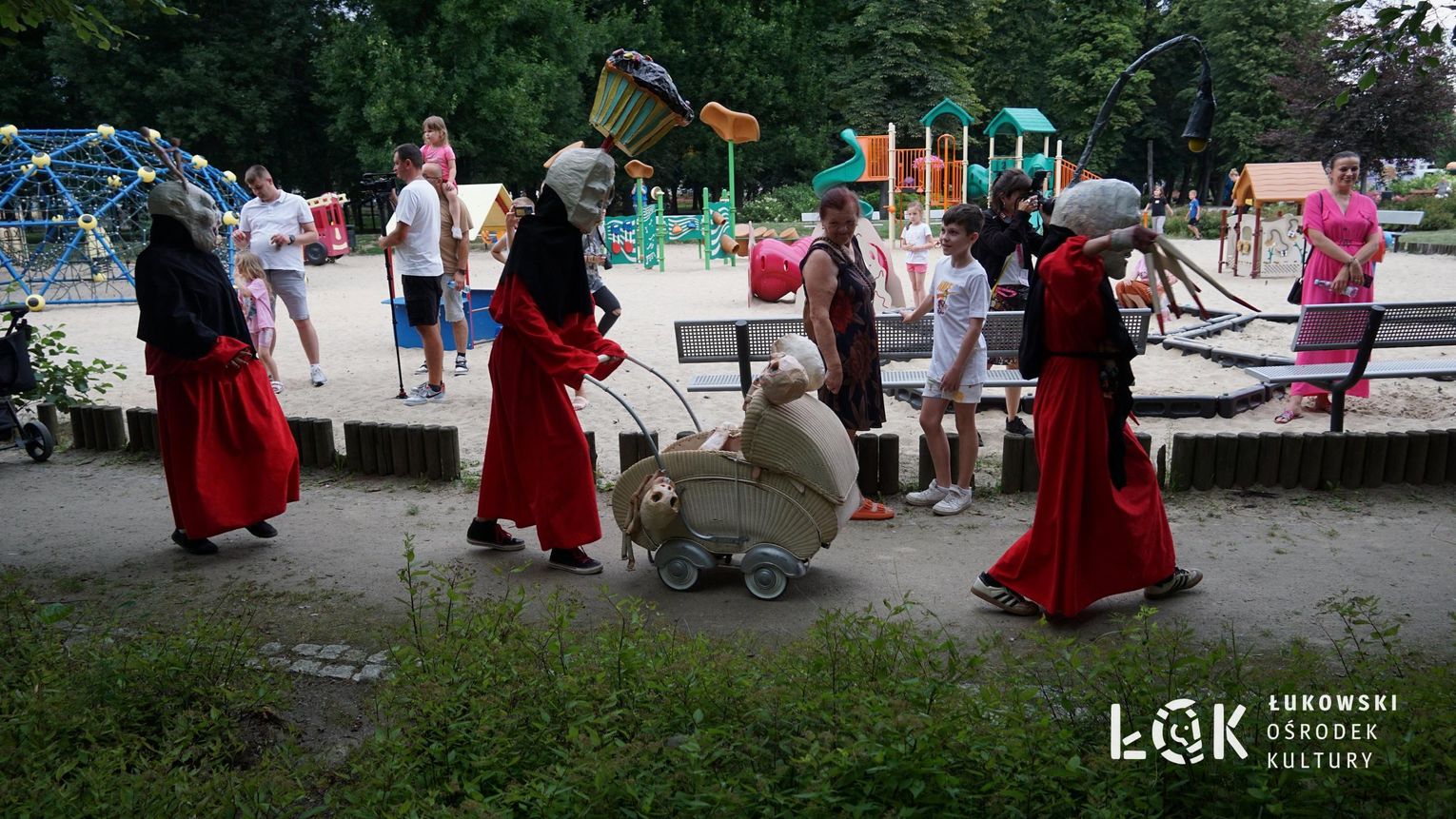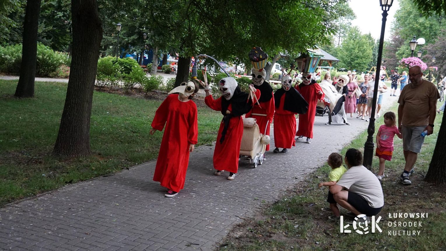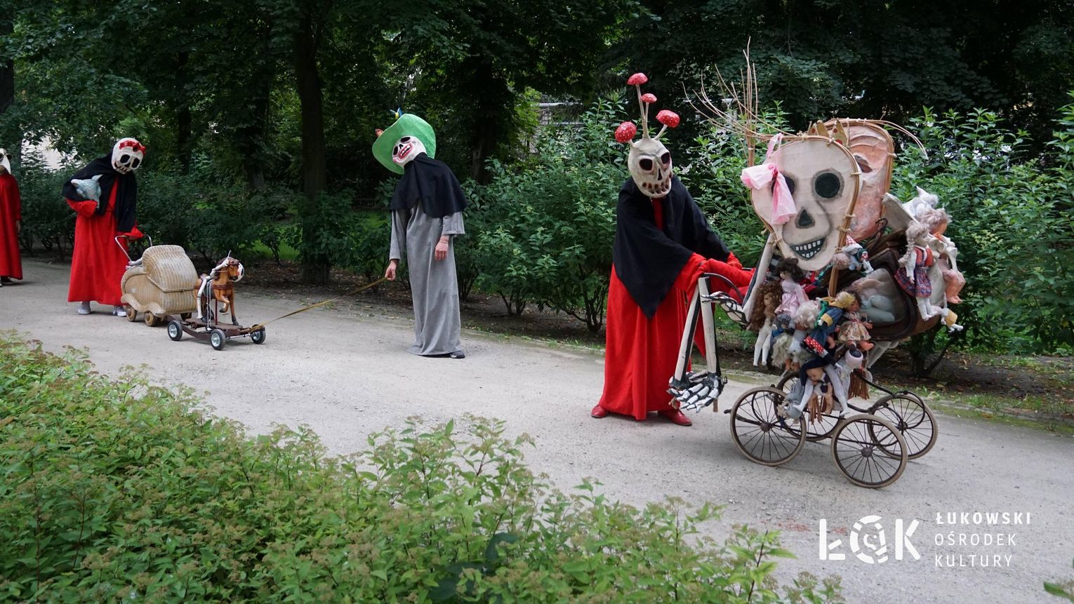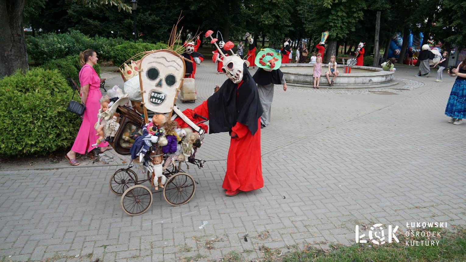 To niezwykłe widowisko, które zamiast strachu i makabry wywołało uczucie radości, energii i tajemnicy, wciągnęło publiczność w świat kolorowych masek, kapeluszy, megamarionet i wielkich, zaskakujących dłoni. Korowód postaci, spacerujących powoli alejami w parku, z ciekawością spoglądał na zgromadzonych, zatrzymywał się, zapraszał do tańca i wspólnej zabawy.