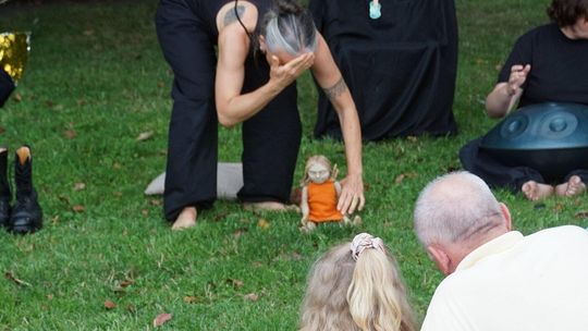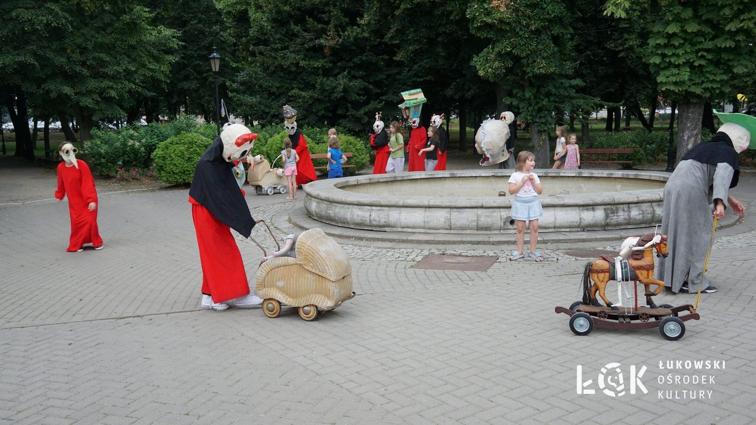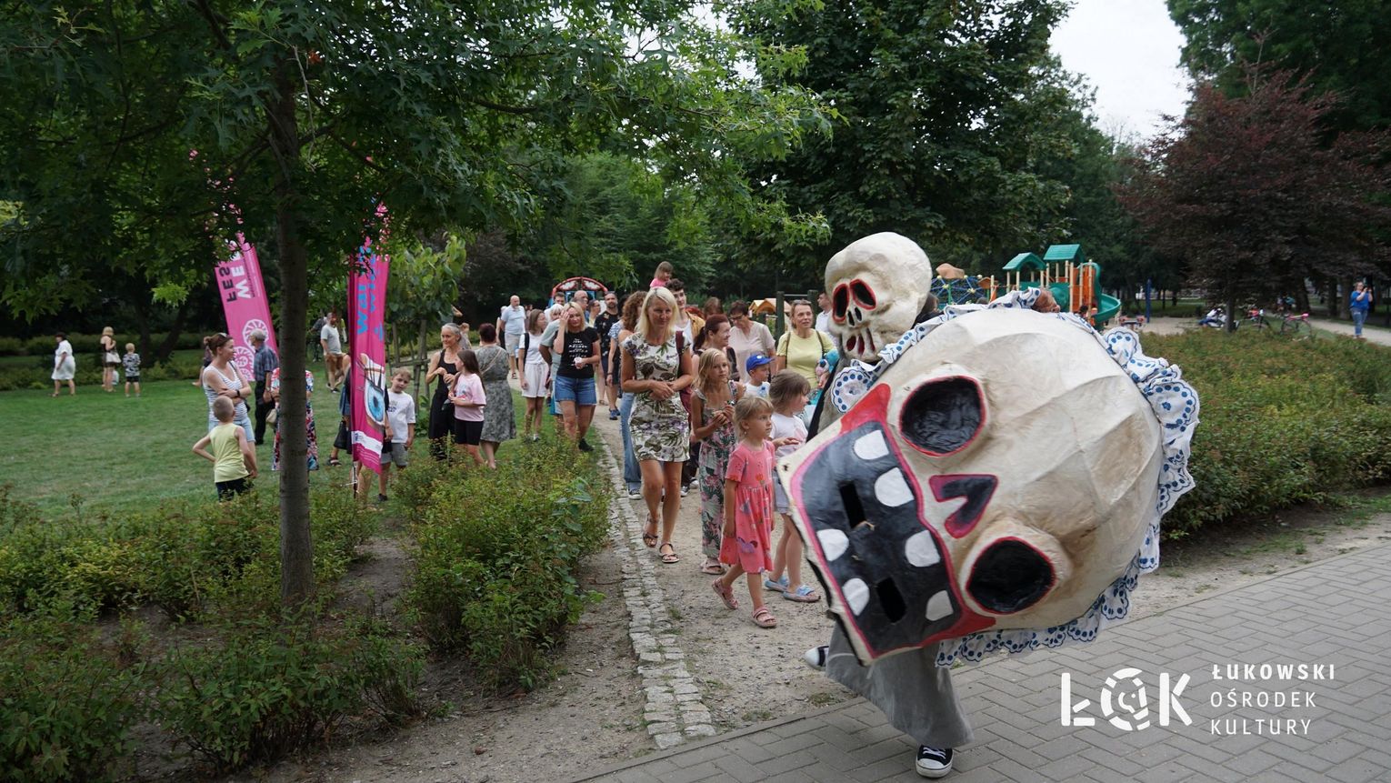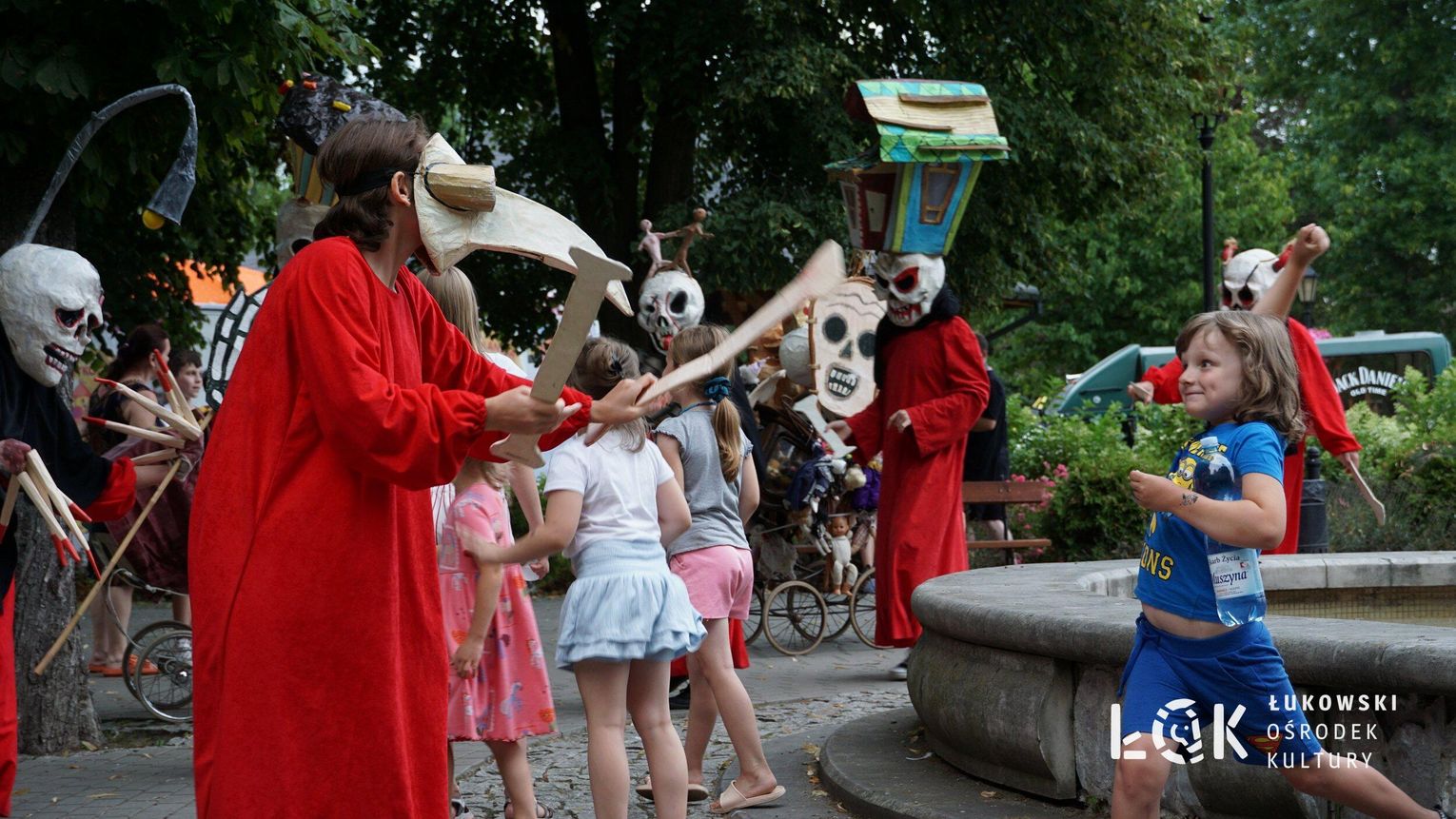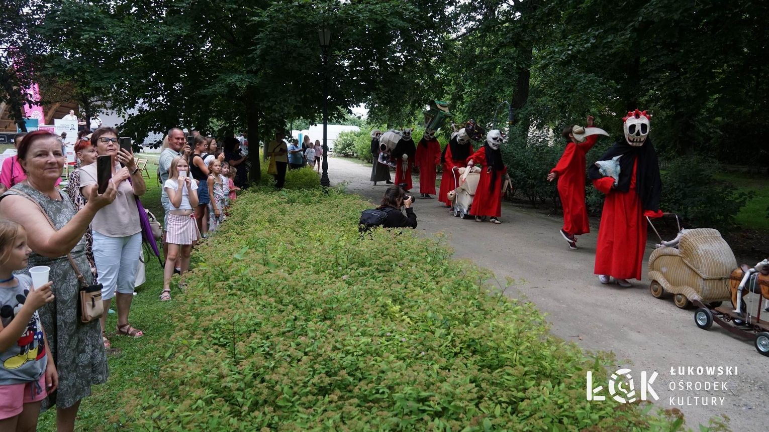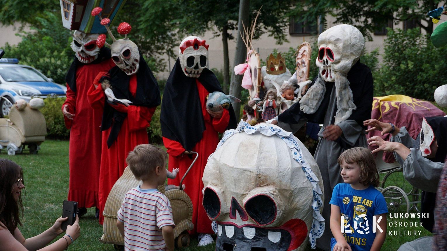 To niezwykłe widowisko, które zamiast strachu i makabry wywołało uczucie radości, energii i tajemnicy, wciągnęło publiczność w świat kolorowych masek, kapeluszy, megamarionet i wielkich, zaskakujących dłoni. Korowód postaci, spacerujących powoli alejami w parku, z ciekawością spoglądał na zgromadzonych, zatrzymywał się, zapraszał do tańca i wspólnej zabawy.