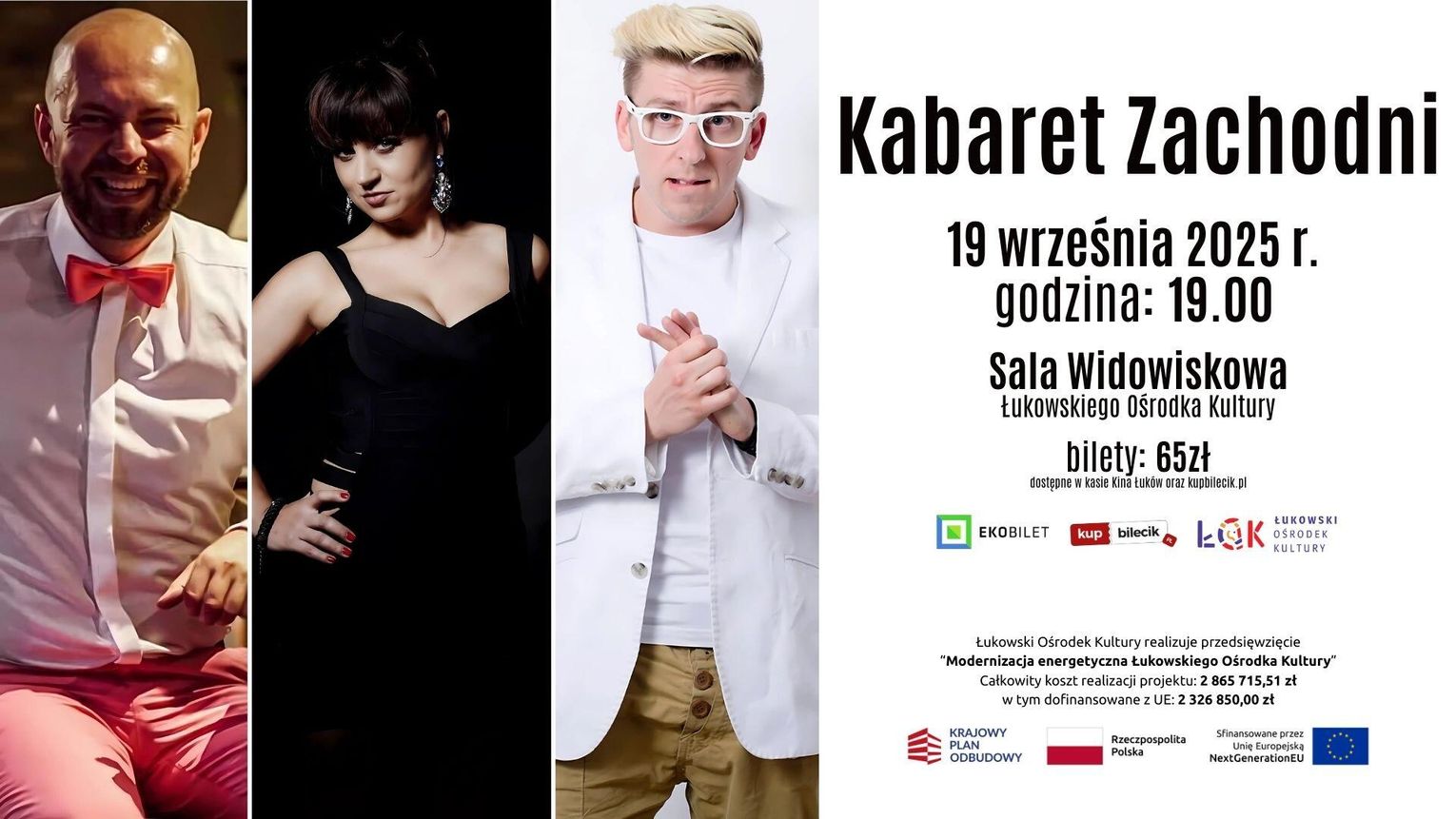 Wywodzą się i nieustannie działają w Zielonogórskim Zagłębiu Kabaretowym. Pojawiali się na wszystkich ważnych festiwalach kabaretowych i w wielu widowiskach telewizyjnych. Program kabaretu Zachodniego składa sięze skeczy i piosenek. Charakteryzuje go kreowanie zaskakujących sytuacji: podryw na wózek z dzieckiem czy też niespodziewana wizyta Zygmunta Hajzera. Doświadczenie, talent aktorski i umiejętność wejścia w bezpośredni kontakt z widzem sprawiają, że Zachodni zajdzie Wam w głowy. Nowa energia, nowy skład – nowa jakość!