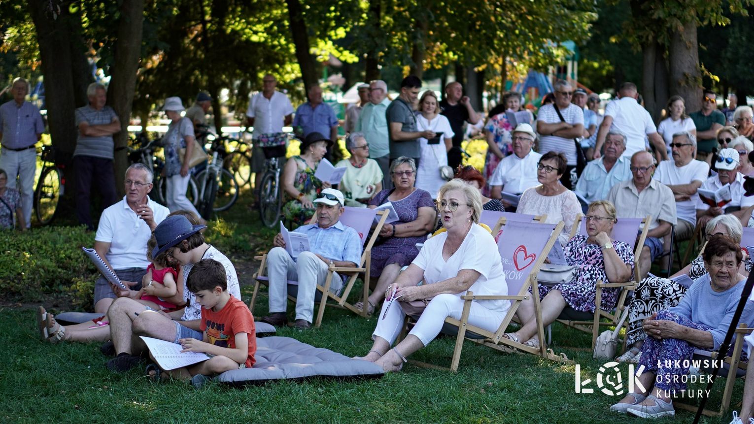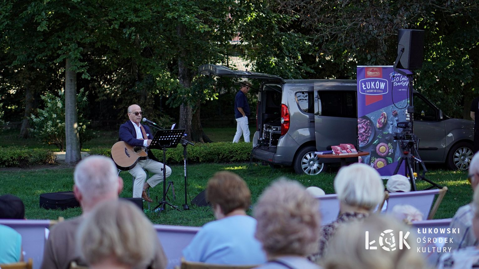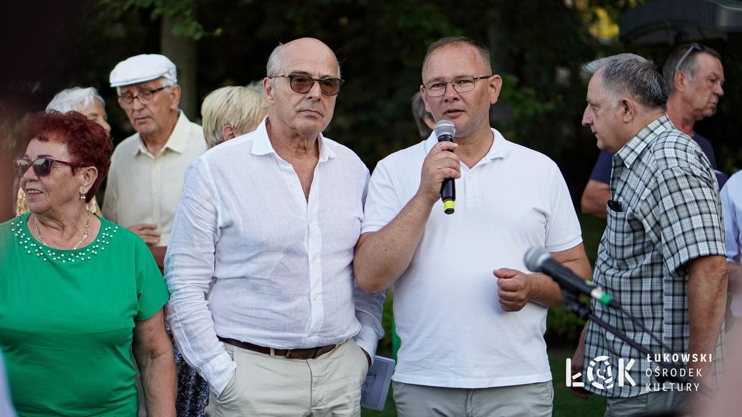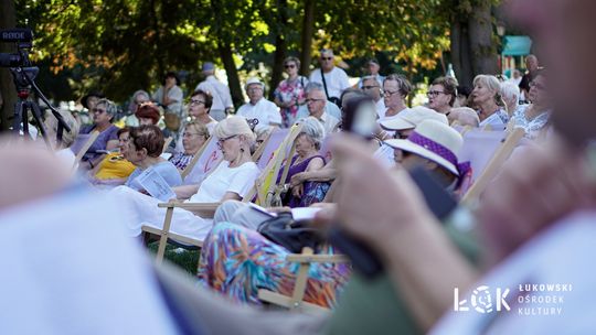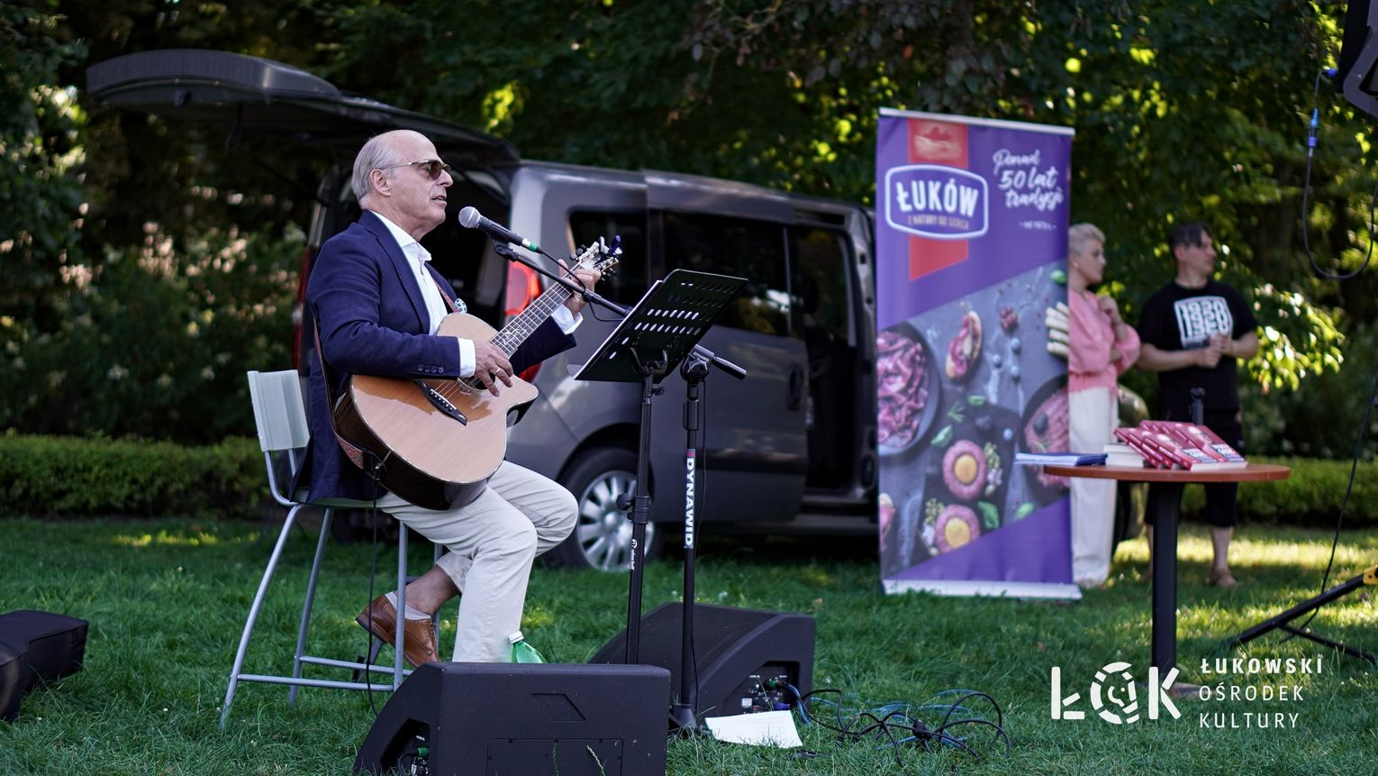 Jan Pospieszalski to ikona telewizji i estrady, której nie trzeba nikomu przestawiać. Artysta przyjechał specjalnie na nasze spotkanie, aby pośpiewać z licznym i rozentuzjazmowanym tłumem łukowian. Nasze wydarzenie odbyło się w parku miejskim, w kojącym tego upalnego dnia, cieniem drzew. Przy okazji zgromadzili się też wierni fani Pospieszalskiego, którzy wręcz nie chcieli wypuścić go do domu.