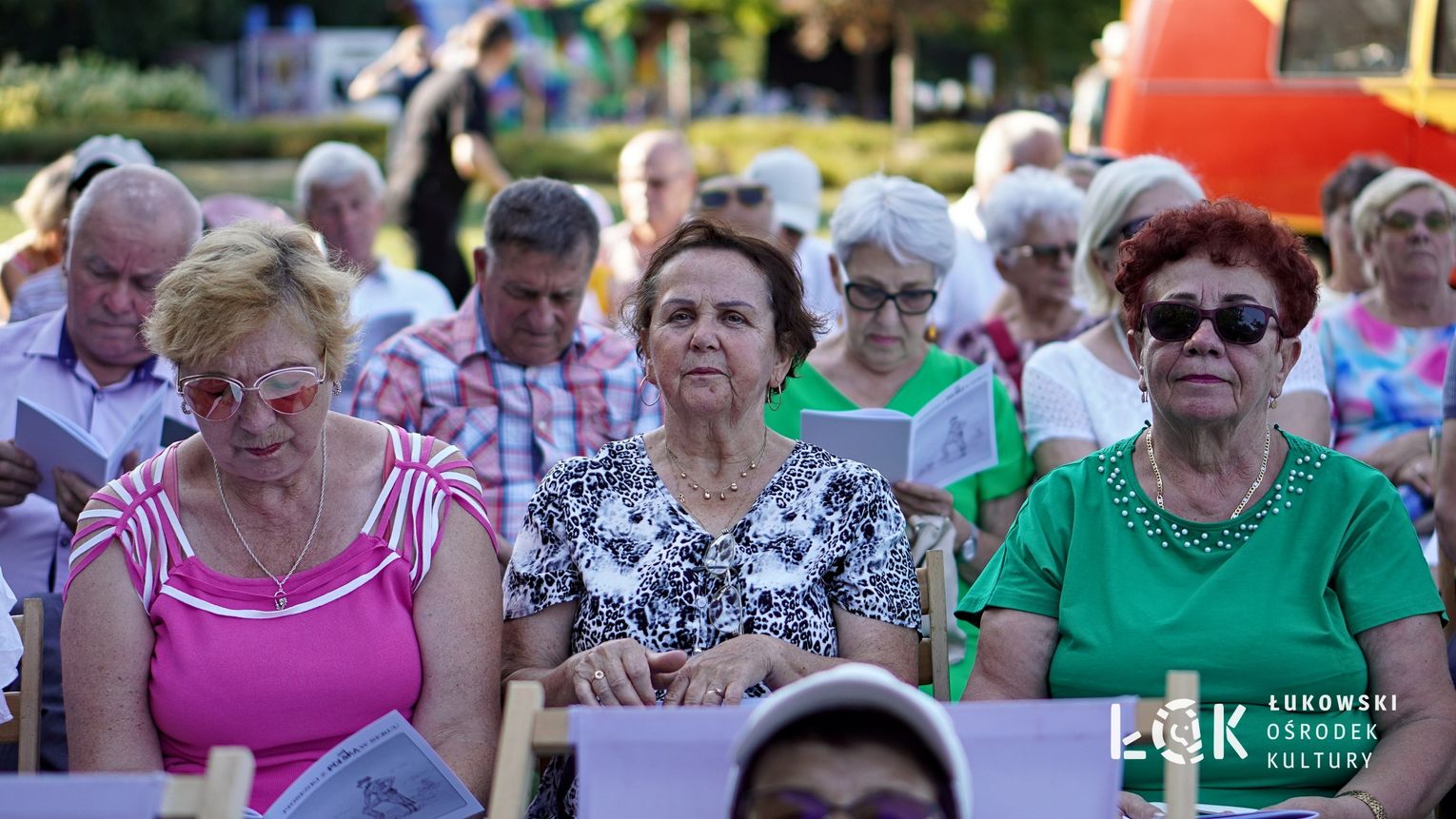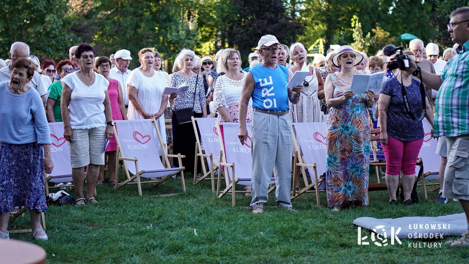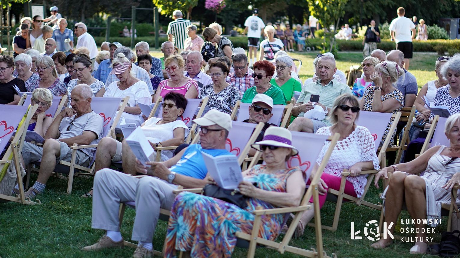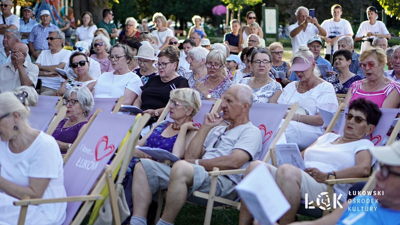 Jan Pospieszalski to ikona telewizji i estrady, której nie trzeba nikomu przestawiać. Artysta przyjechał specjalnie na nasze spotkanie, aby pośpiewać z licznym i rozentuzjazmowanym tłumem łukowian. Nasze wydarzenie odbyło się w parku miejskim, w kojącym tego upalnego dnia, cieniem drzew. Przy okazji zgromadzili się też wierni fani Pospieszalskiego, którzy wręcz nie chcieli wypuścić go do domu.